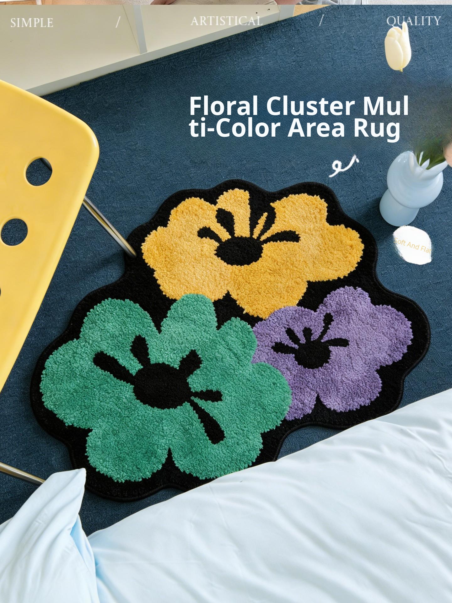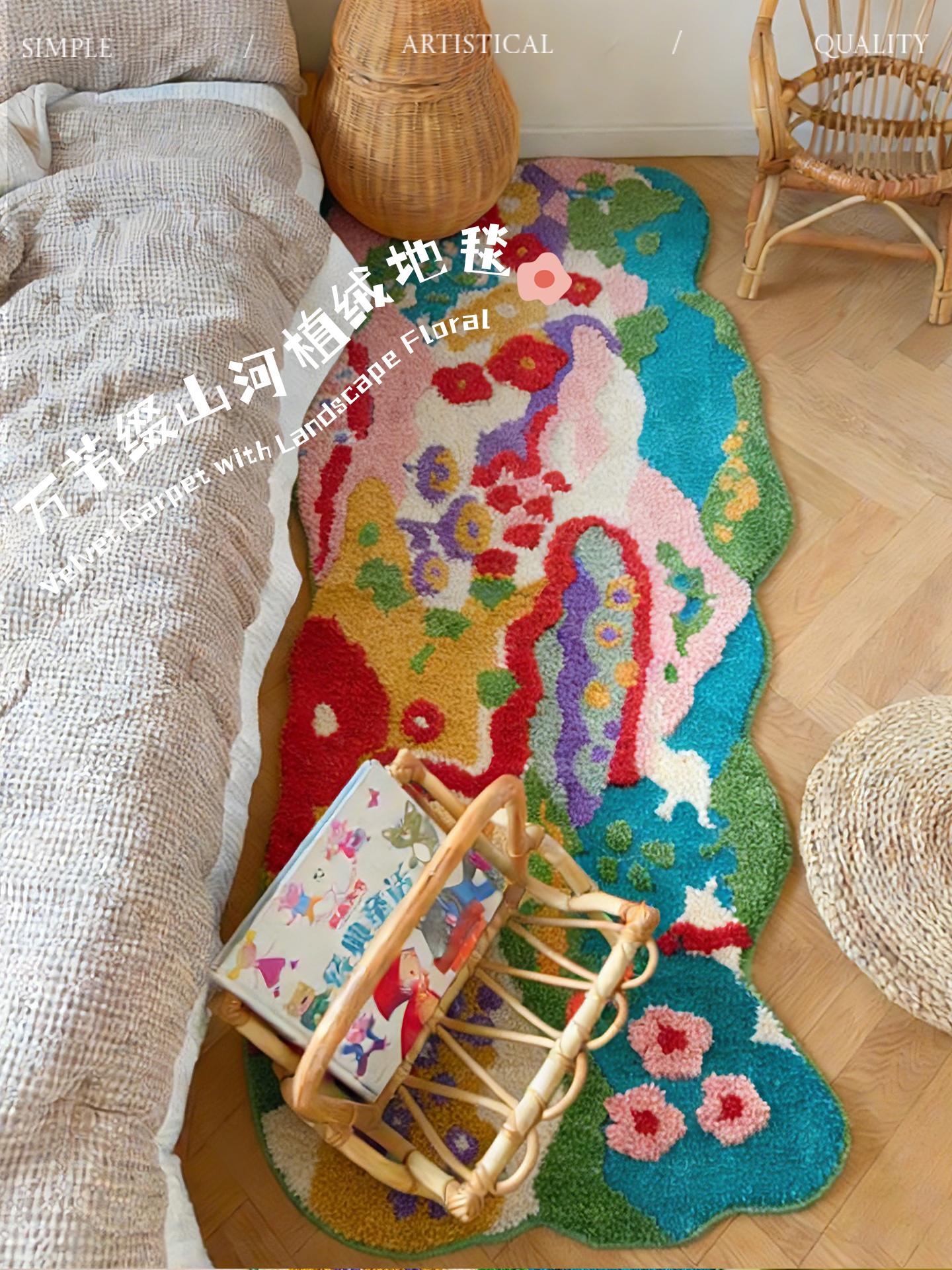 Caviosen Creative Irregular Shaped Floral Area Rug - Unique Dopamine Carpet for Bedroom and Living Room, Perfect for Adding a Touch of Whimsy and Style to Your Space