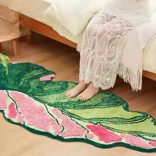 Luxury Velvet Bedside Rug - Non-Slip Irregular Shaped Mat with Fresh Leaf Design for Bedroom & Living Room - Perfect for Adding Elegance and Comfort!