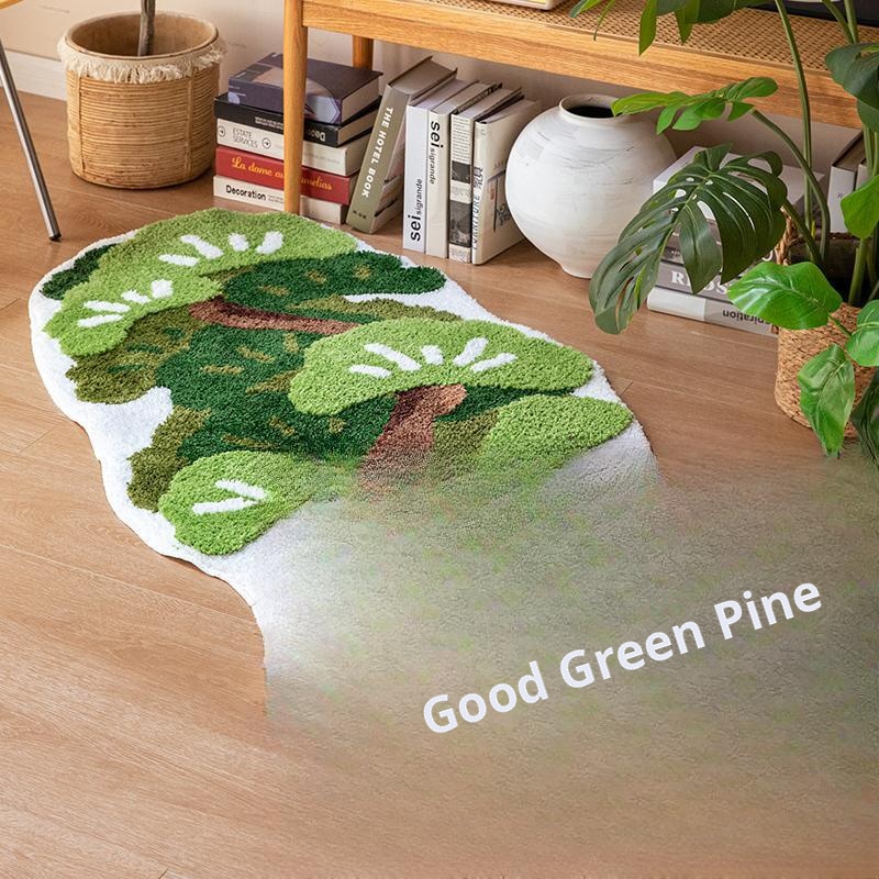 Caviosen Green Area Rug - Luxurious, Machine-Washable Bedroom Carpet for Bedside - Unique Shaped Floor Mat and Doormat