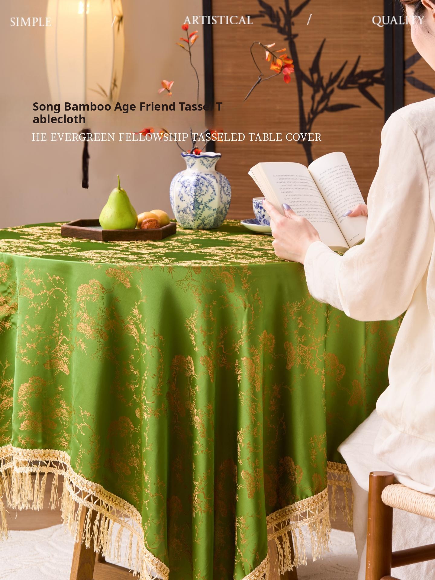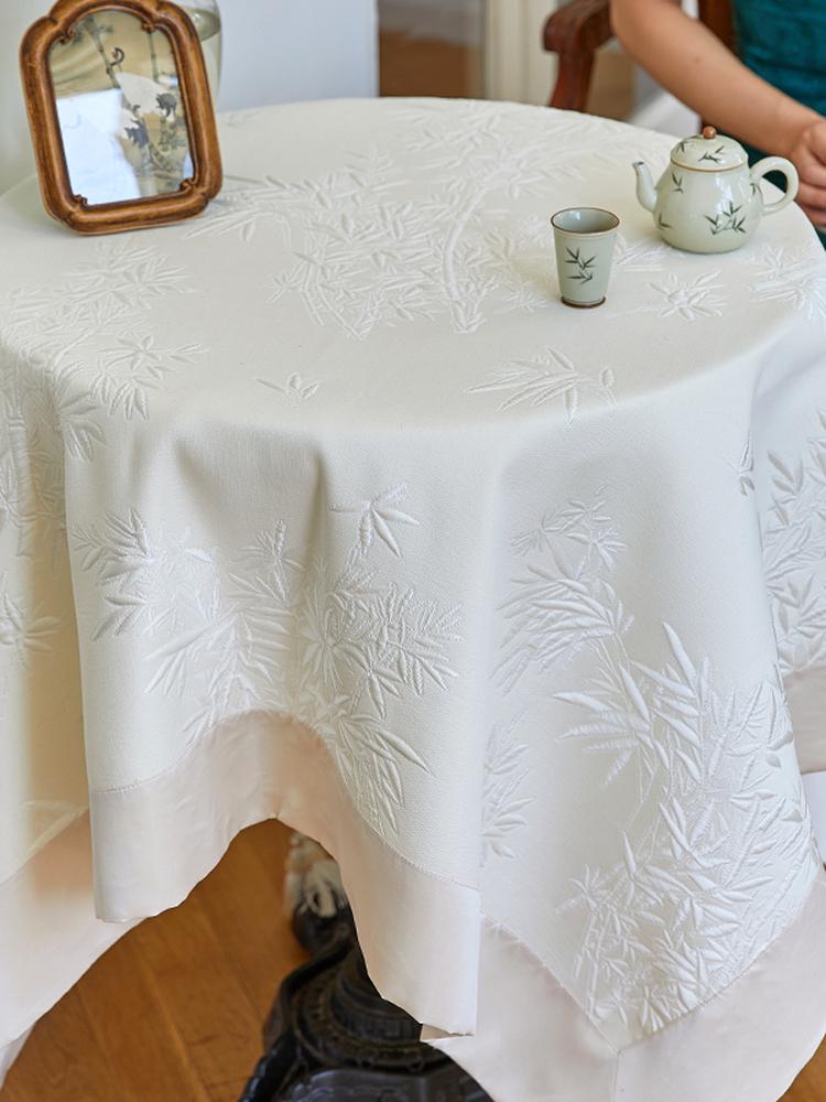 Elegant Chinese Style Solid Color Bamboo Tablecloth - Luxurious High-End Rectangular Fabric Cover for Dining Table and Coffee Table