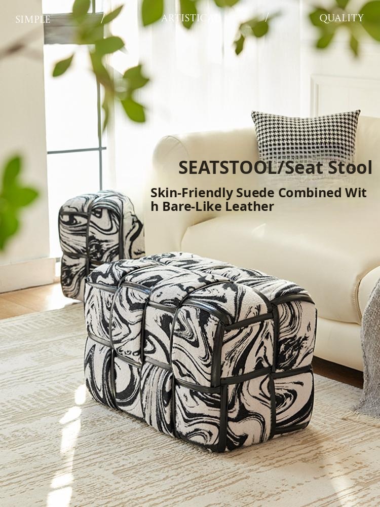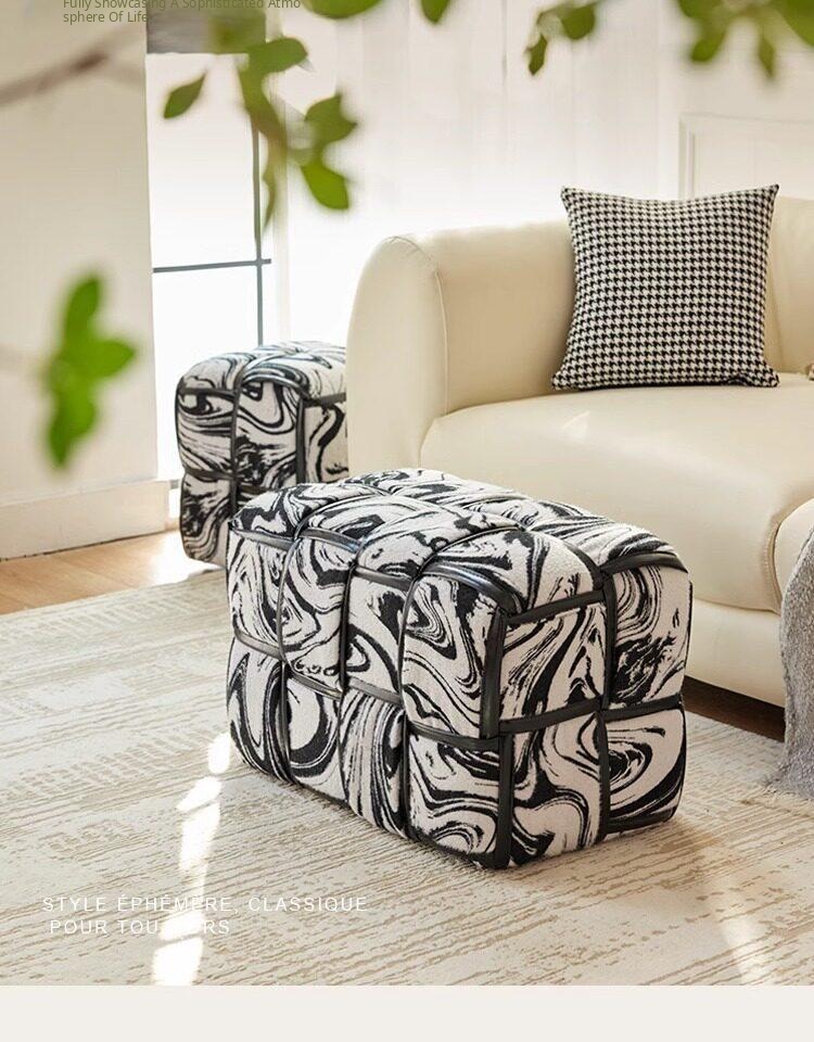 2026 New Creative Black & White Ottoman – Stylish Home Footrest for Living Room, Entryway Shoe Changing Stool, and Versatile Low Bench