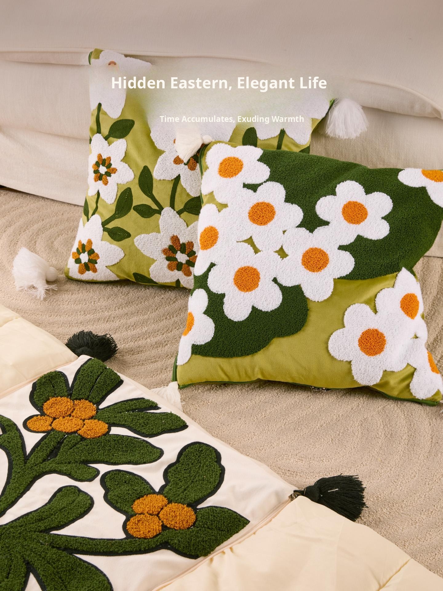 Dark Green Flower Shadow Pillow Quilt
