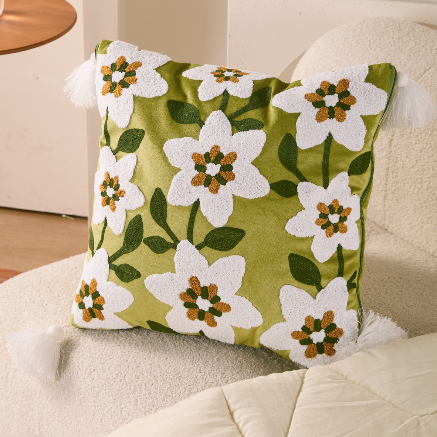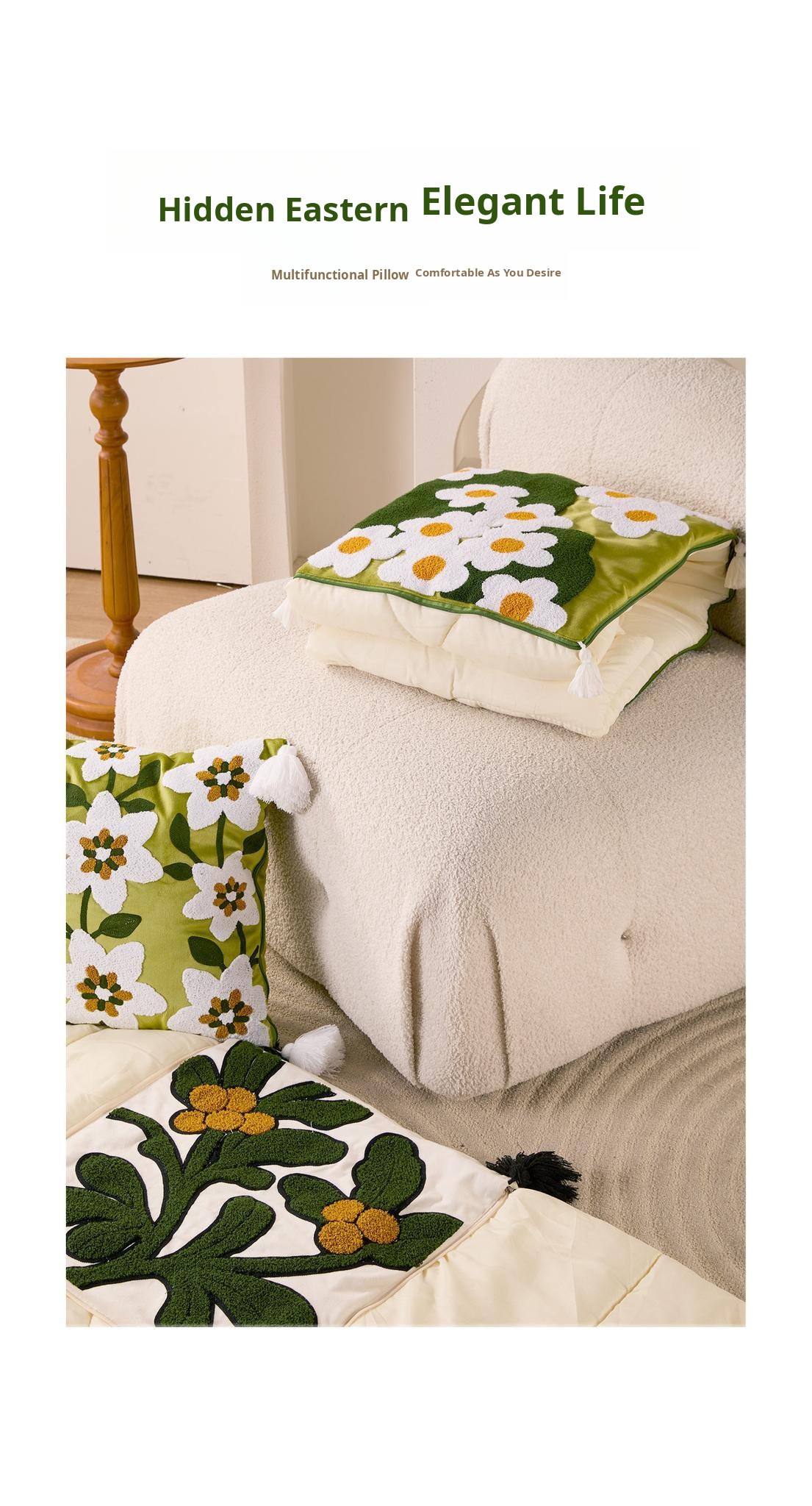 Plain White Floral Pillow Quilt