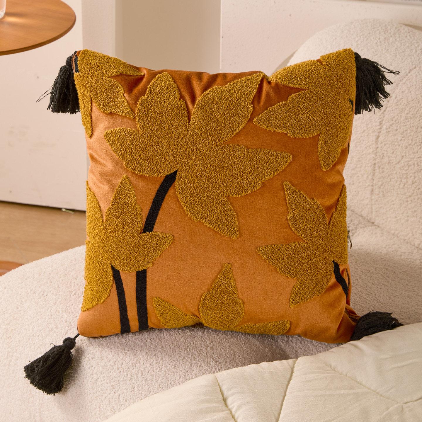 Warm Orange Leaf Pillow Quilt