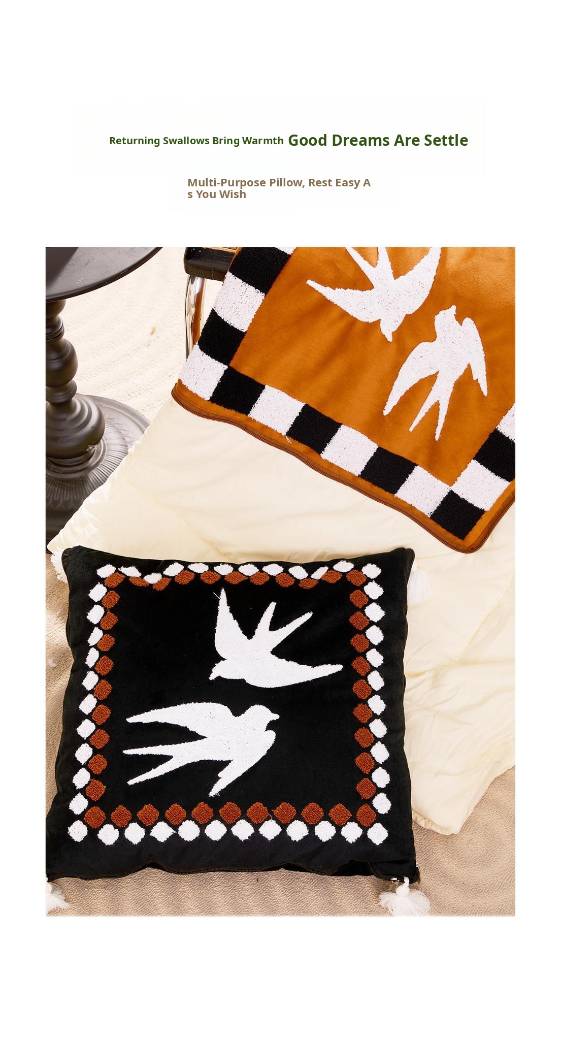 Night Swallow Pillow Quilt