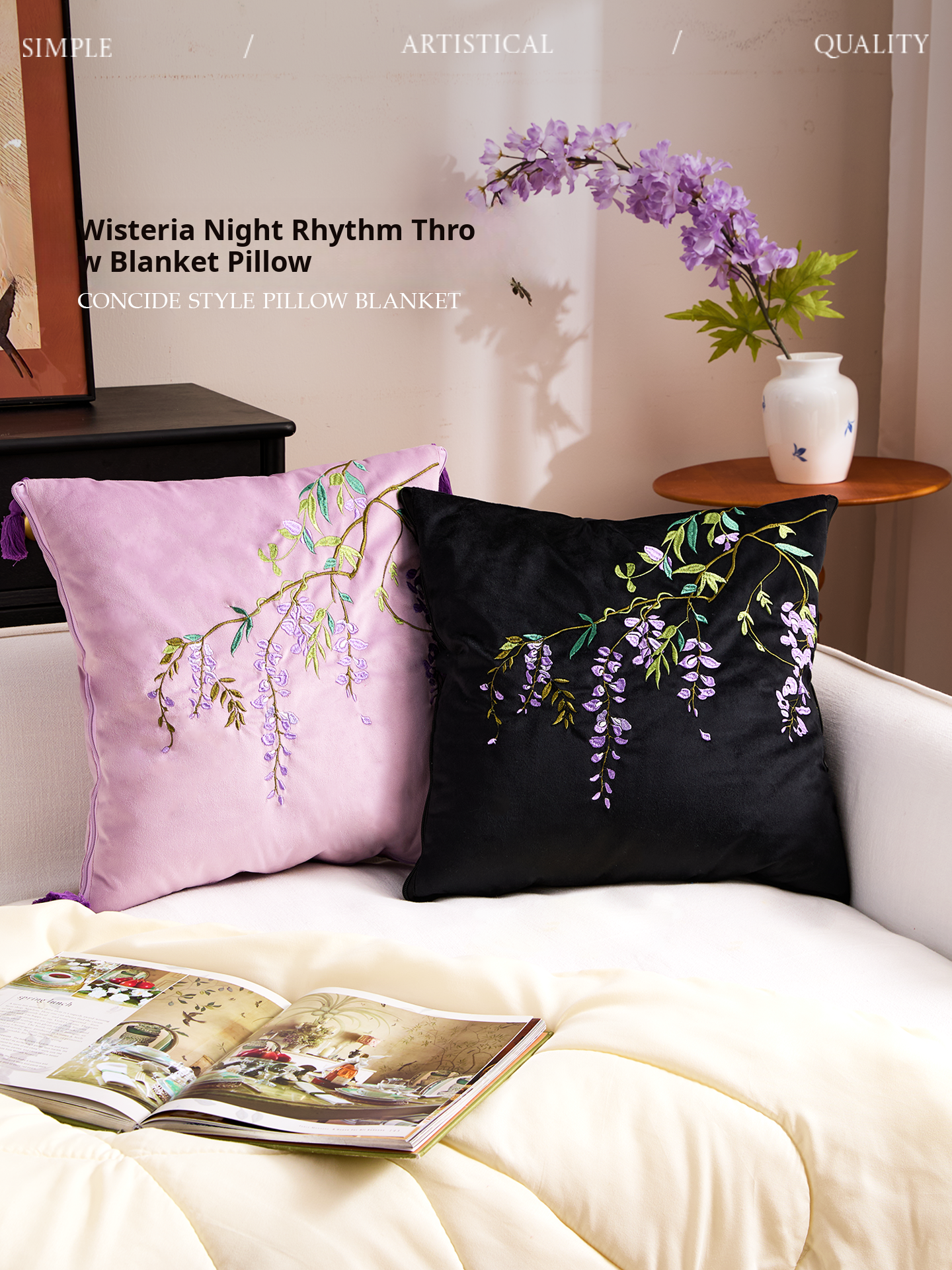 Wisteria Serenity Throw Pillow Blanket