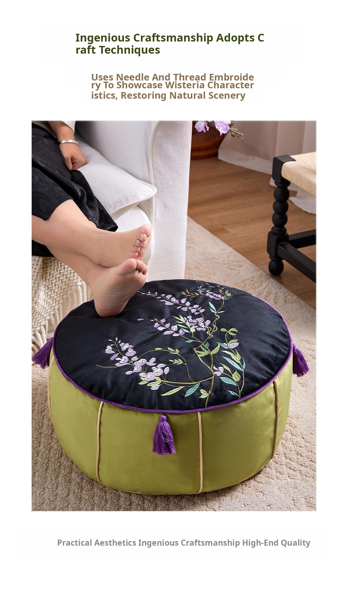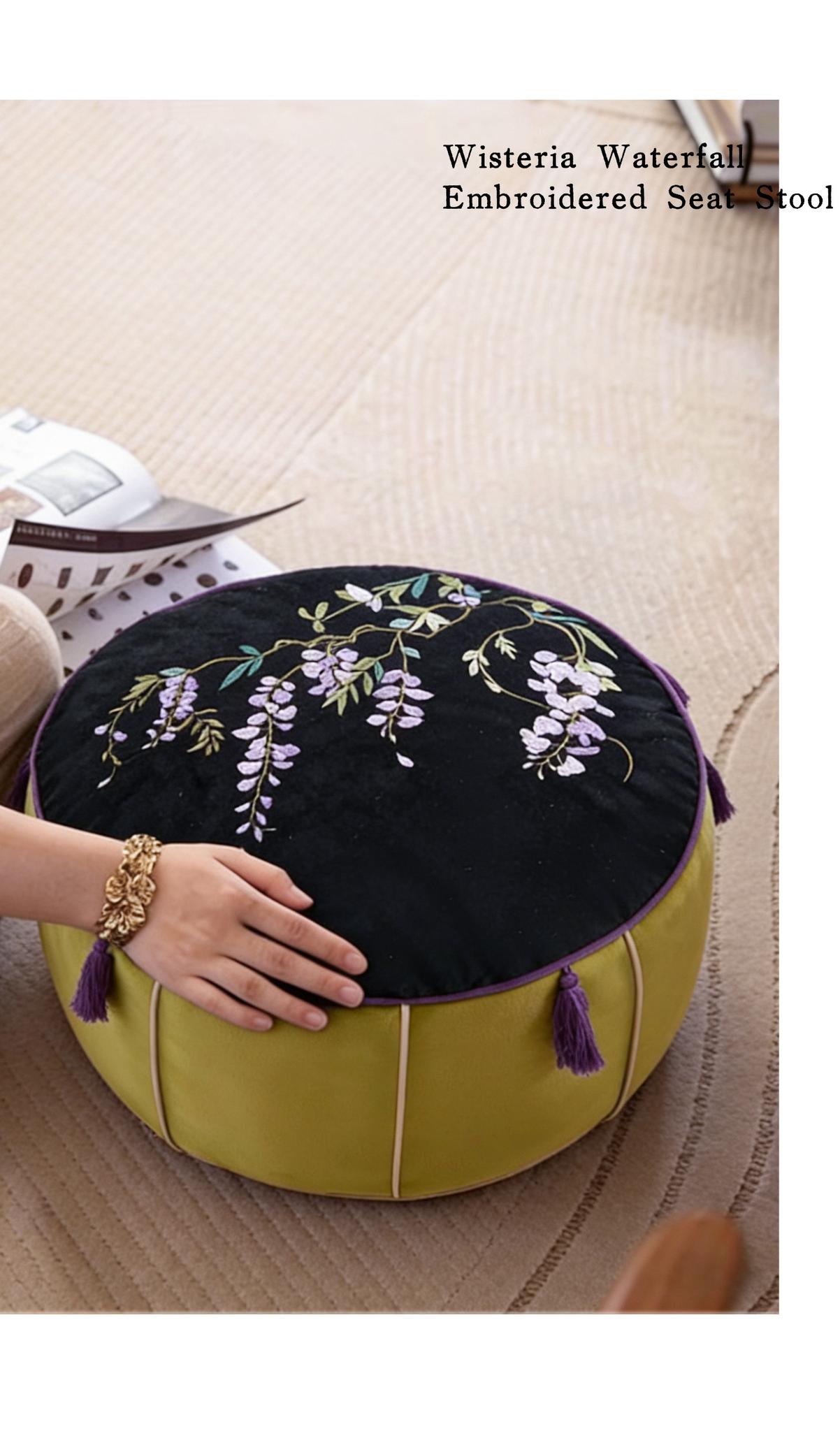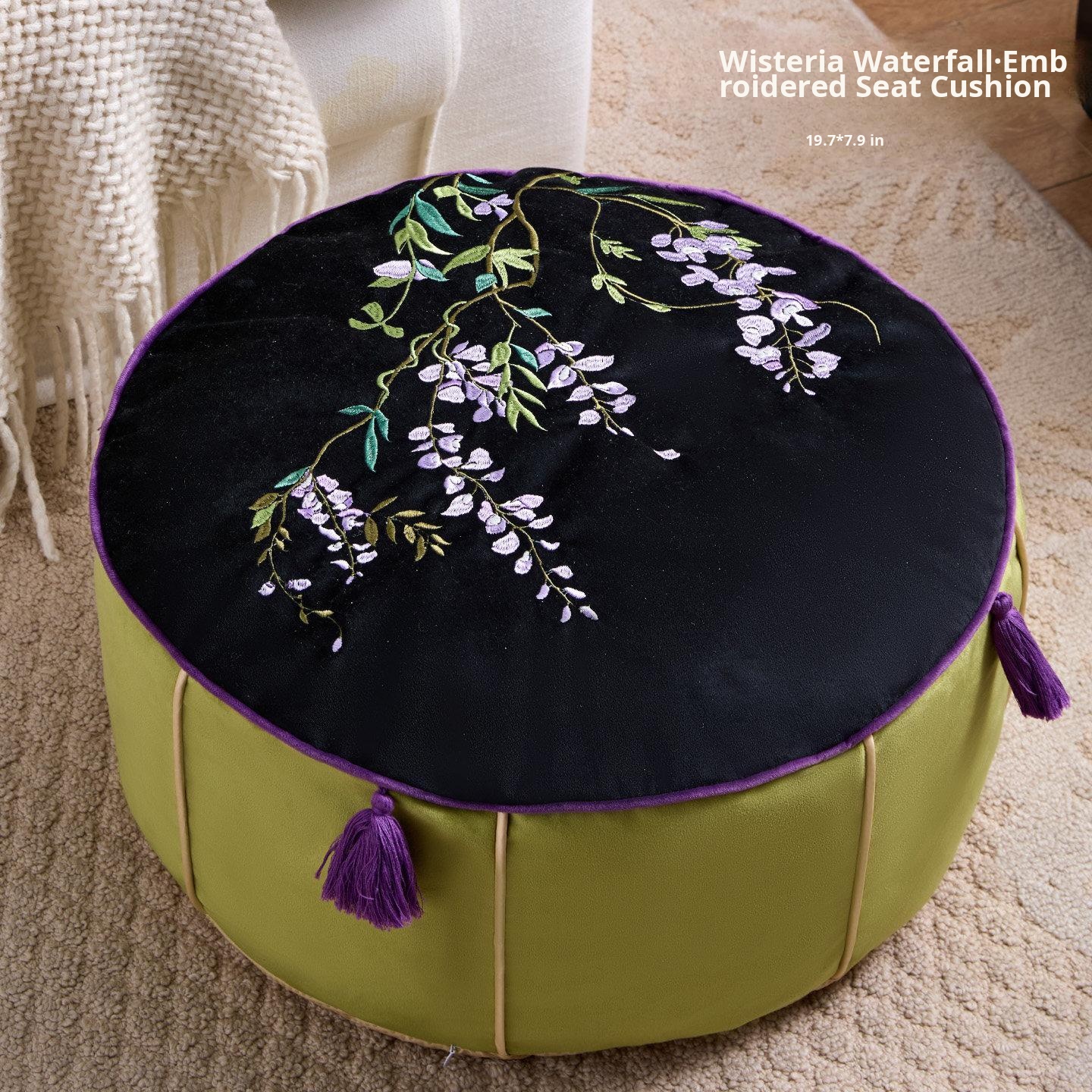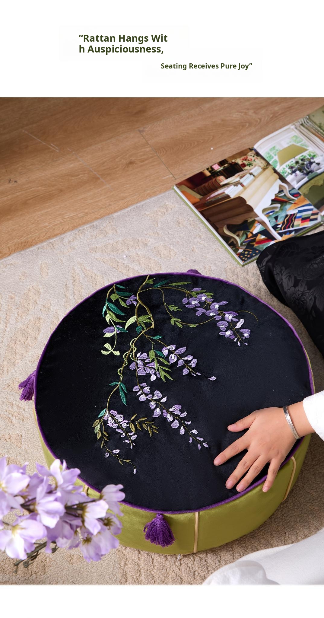 Caviosen Chinese Style Embroidered Floor Cushion - Tatami Window Seat Pouf for Living Room, Tea Table Stool, and Area Rug Accent. Perfect for Cozy Home Decor!