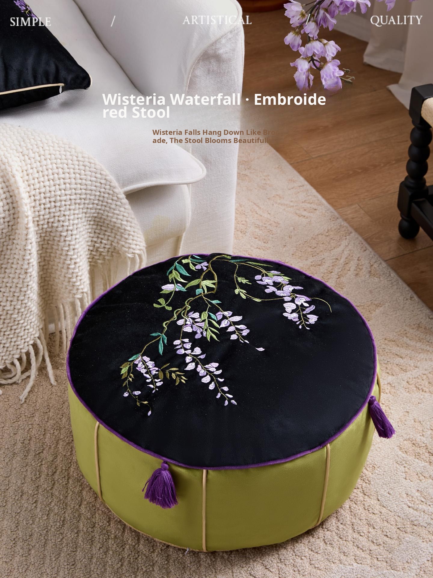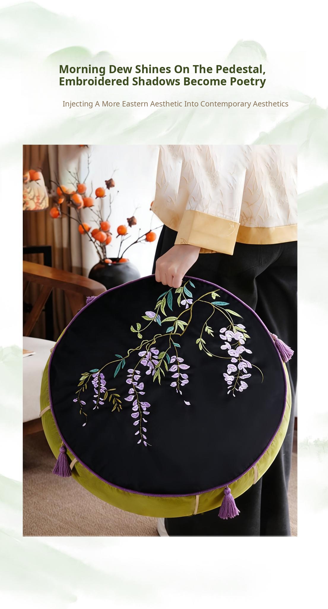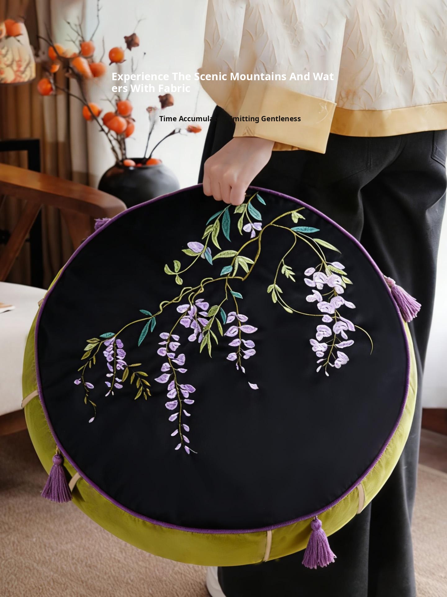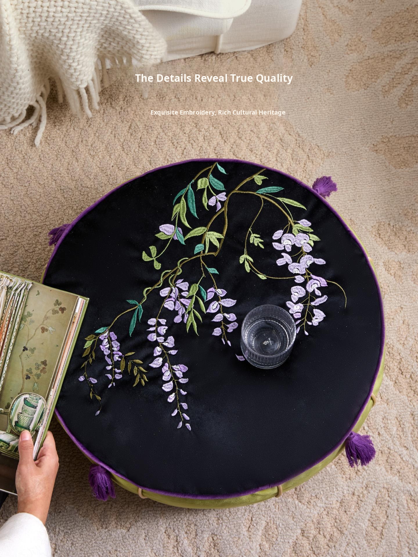 Caviosen Chinese Style Embroidered Floor Cushion - Tatami Window Seat Pouf for Living Room, Tea Table Stool, and Area Rug Accent. Perfect for Cozy Home Decor!
