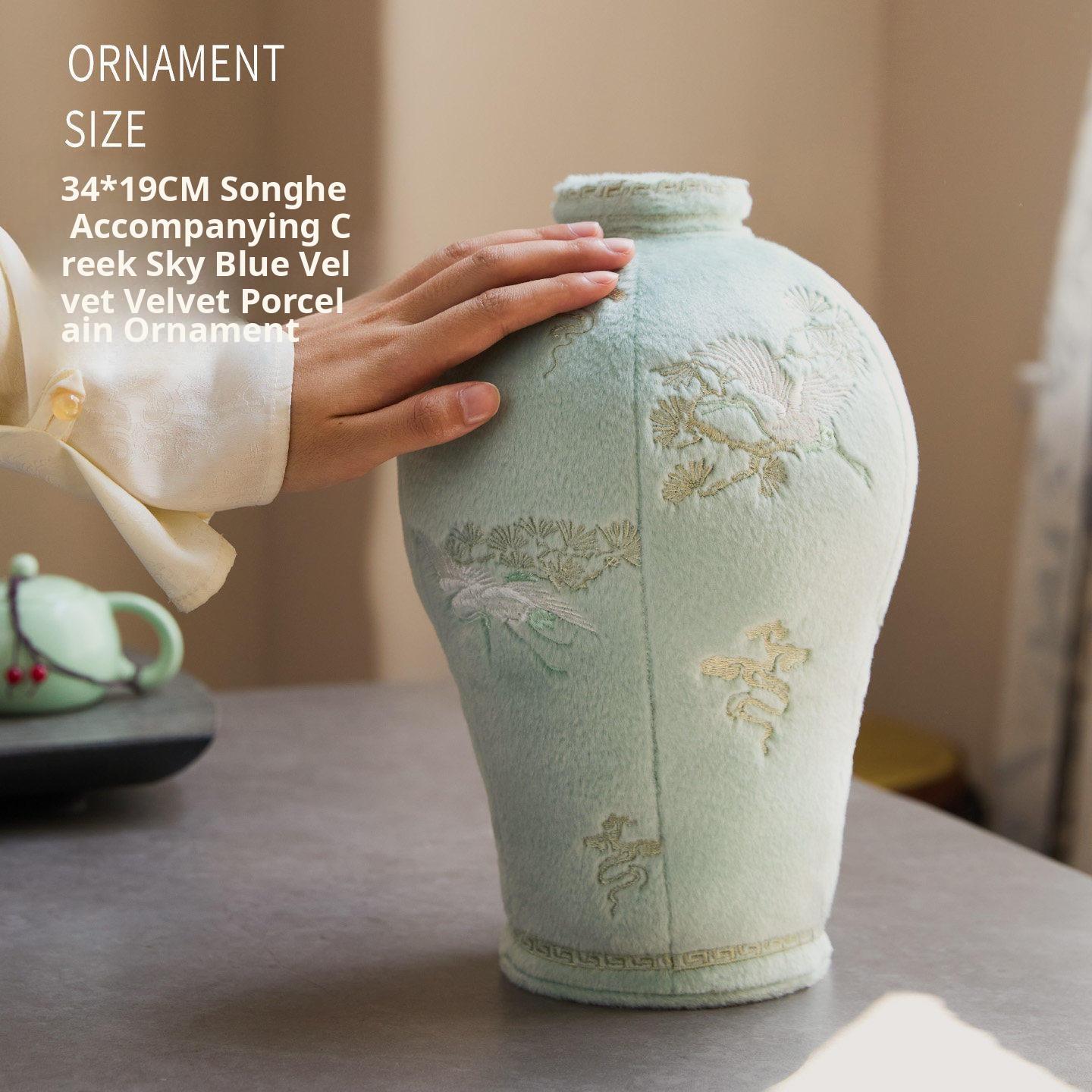 Songhe Banxi Sky Blue Velvet·Velvet Porcelain Ornaments