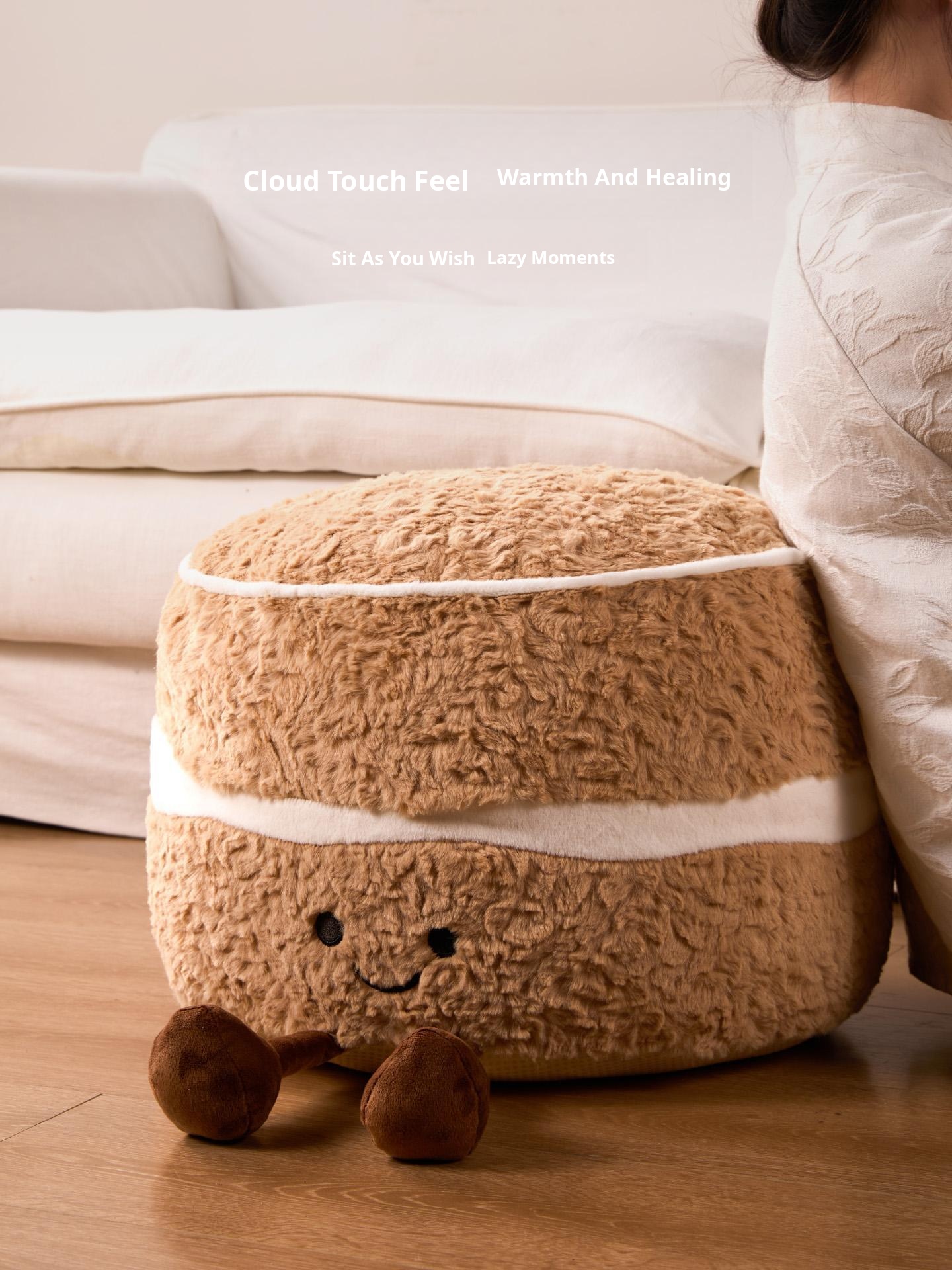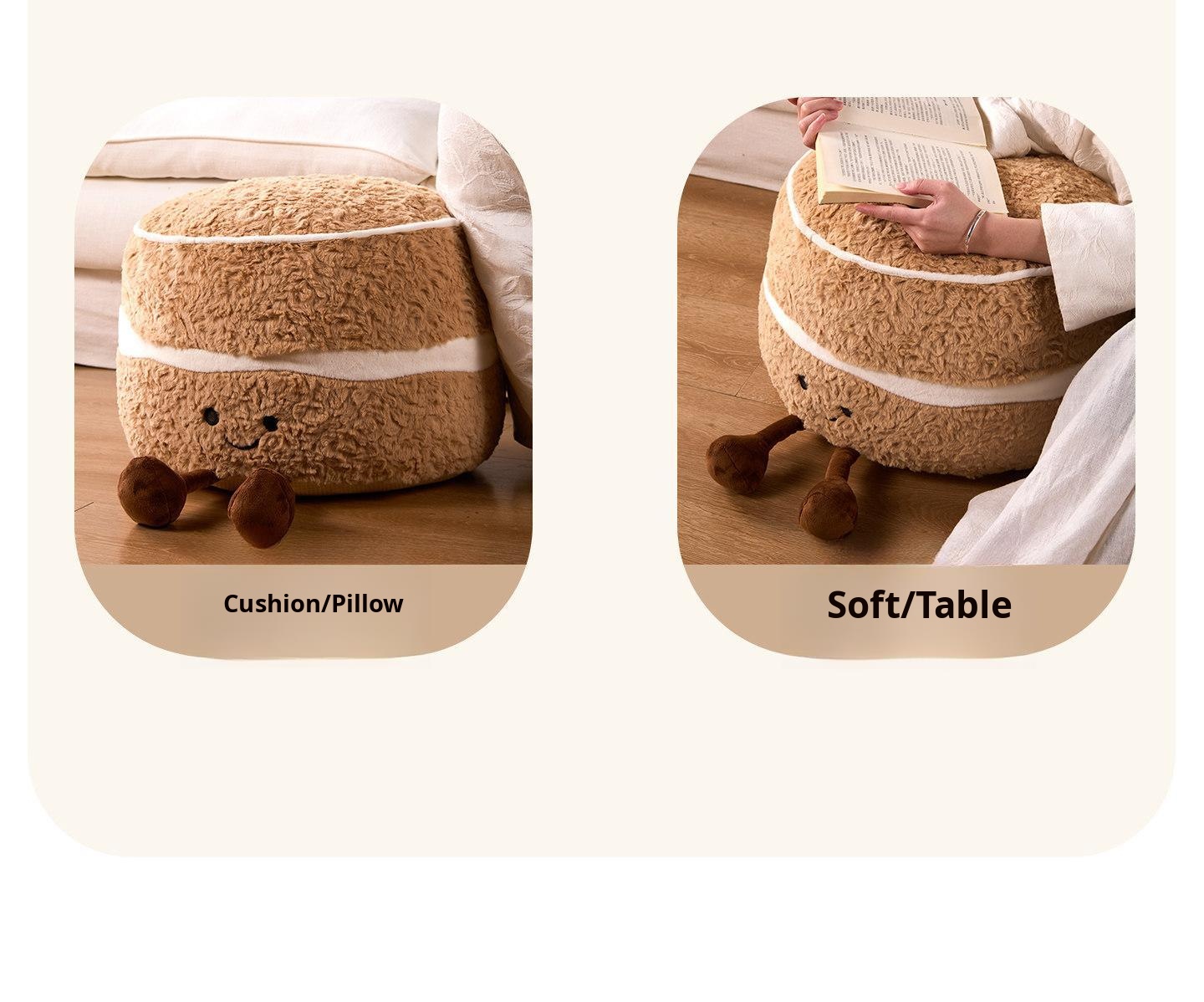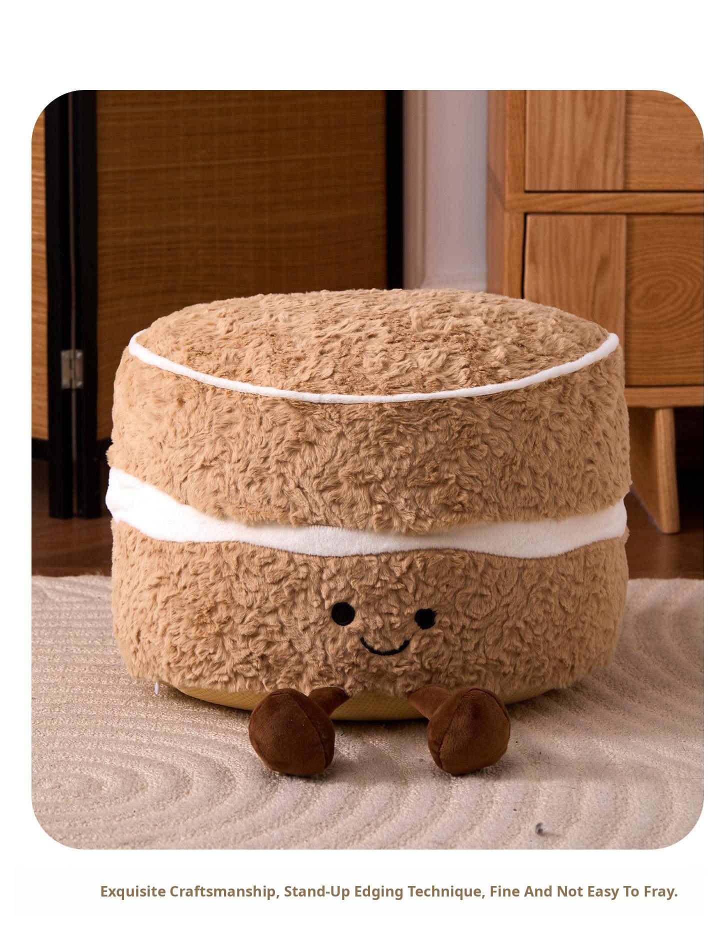 Caviosen Cute Creamy Cake Plush Ottoman – Adorable Decorative Footstool for Living Room, Ideal for Airbnb and Home Decor