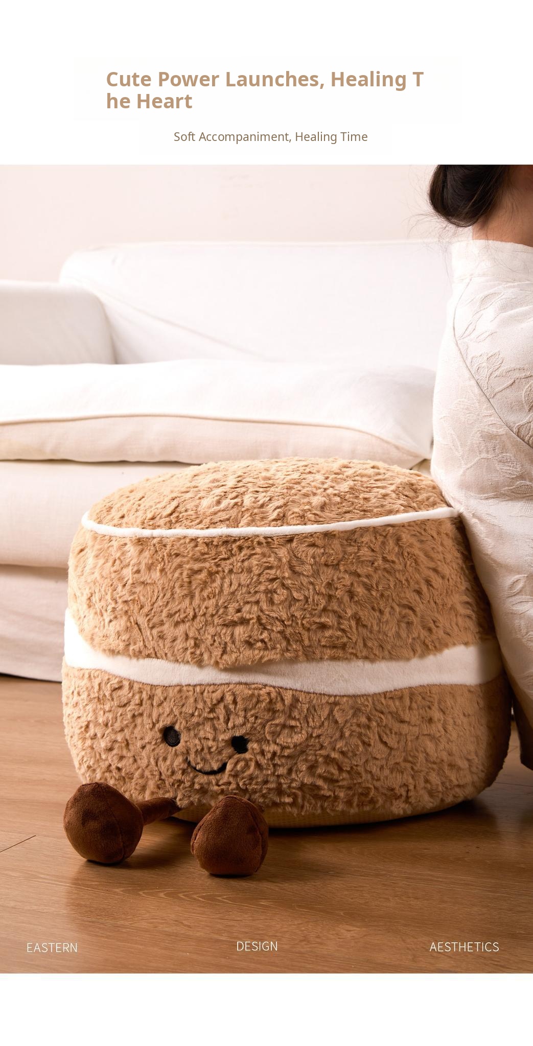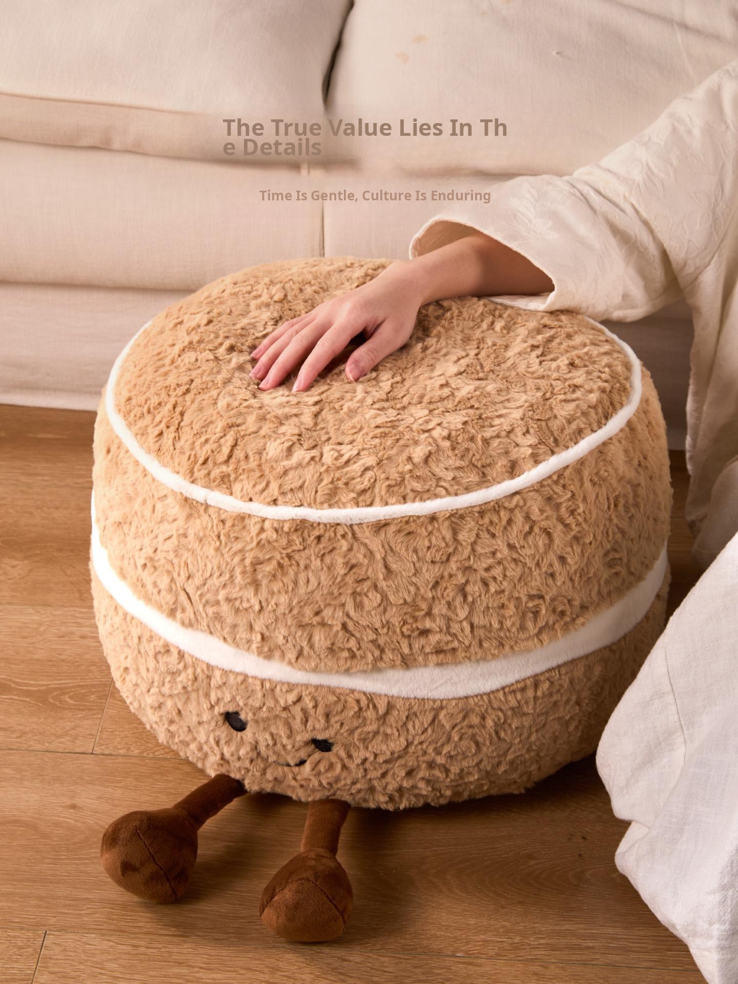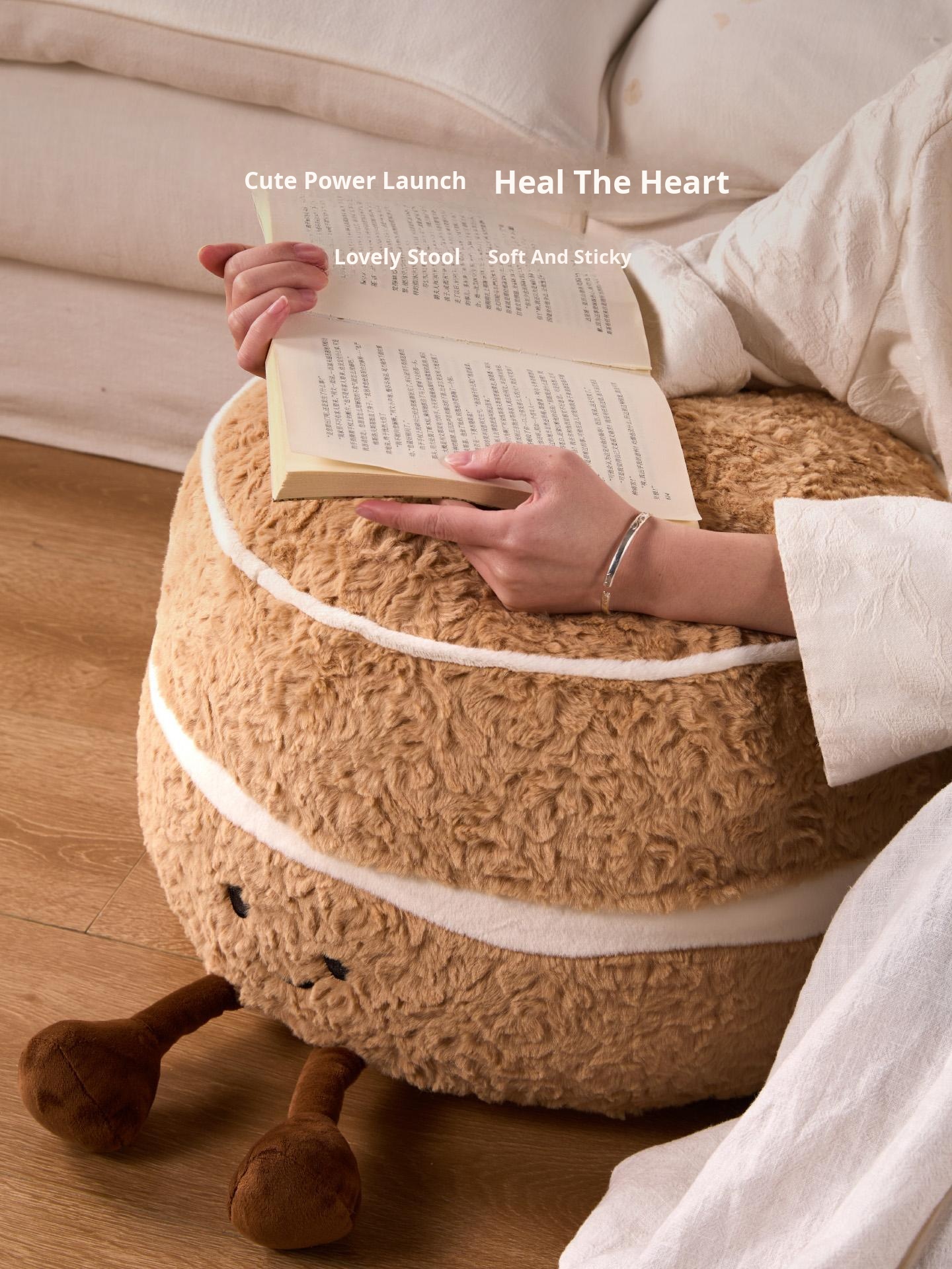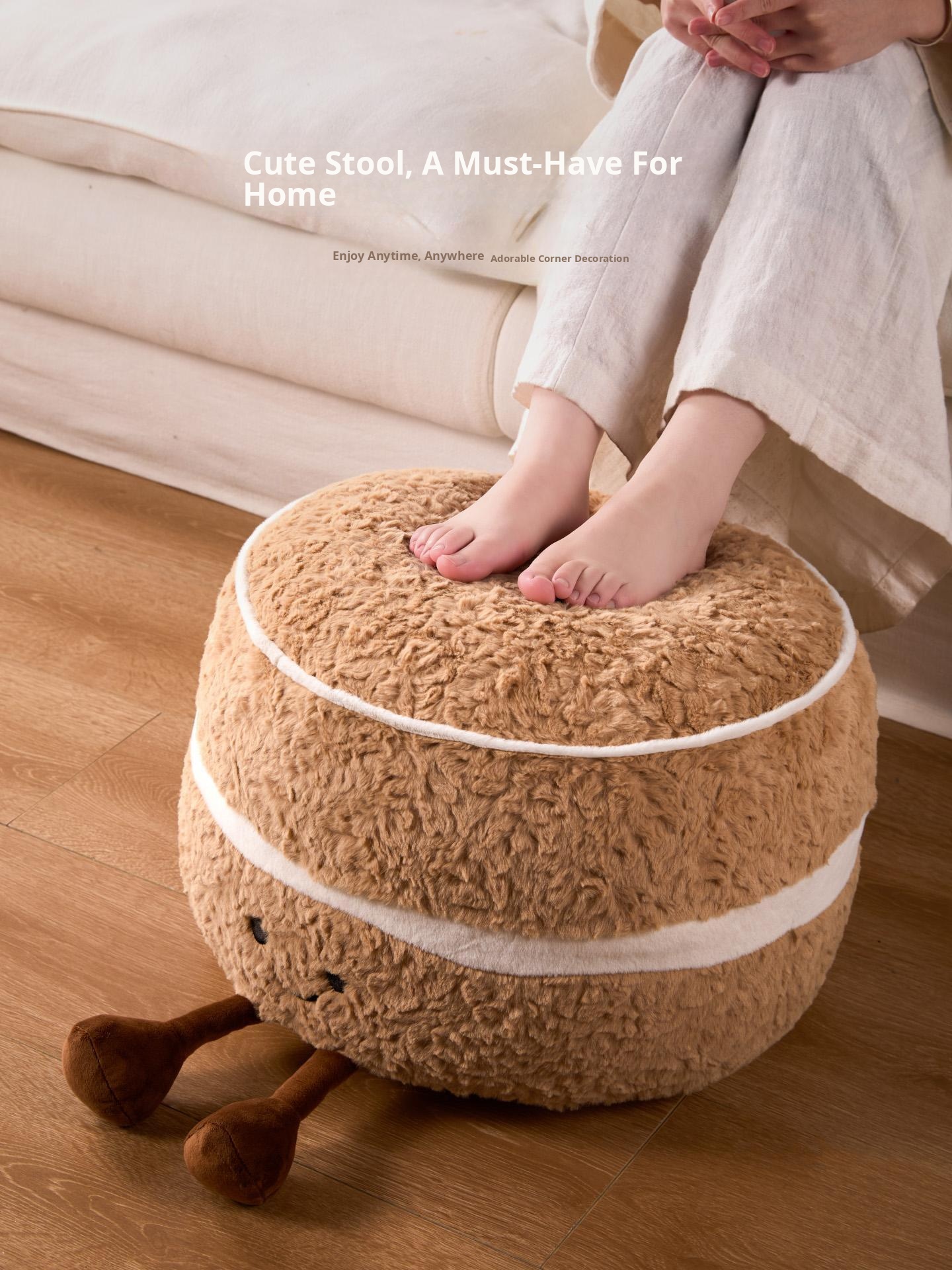 Caviosen Cute Creamy Cake Plush Ottoman – Adorable Decorative Footstool for Living Room, Ideal for Airbnb and Home Decor