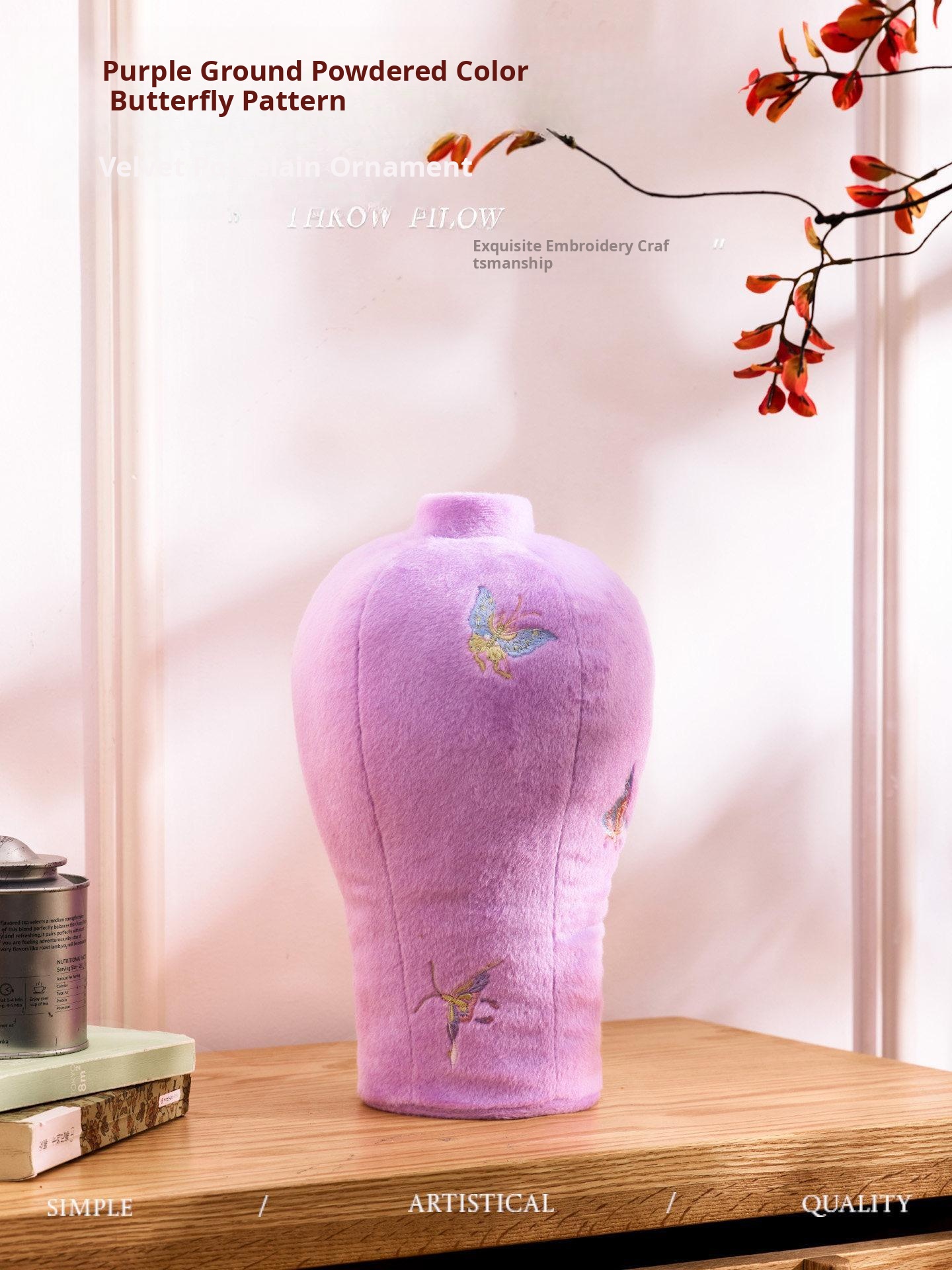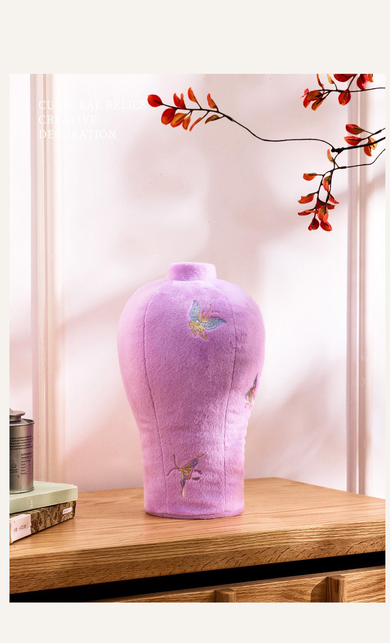 Caviosen Embroidered Floral Vase Pillow - Elegant Purple Butterfly Cushion for Living Room Decor, Perfect for Traditional Chinese Flower Arrangements