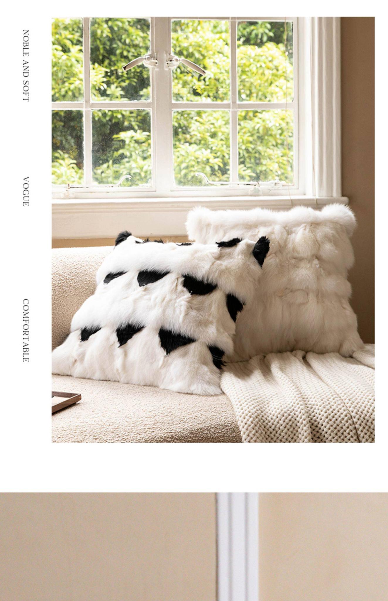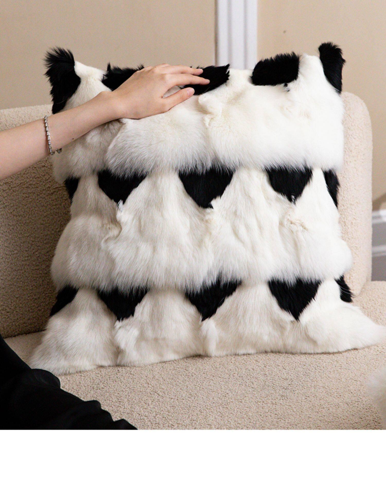 Caviosen Genuine Leather Fur Throw Pillow - High-End Luxury Modern Design for Living Room Sofa, Bedside, and Bay Window - Stylish Support Cushion for Ultimate Comfort and Elegance