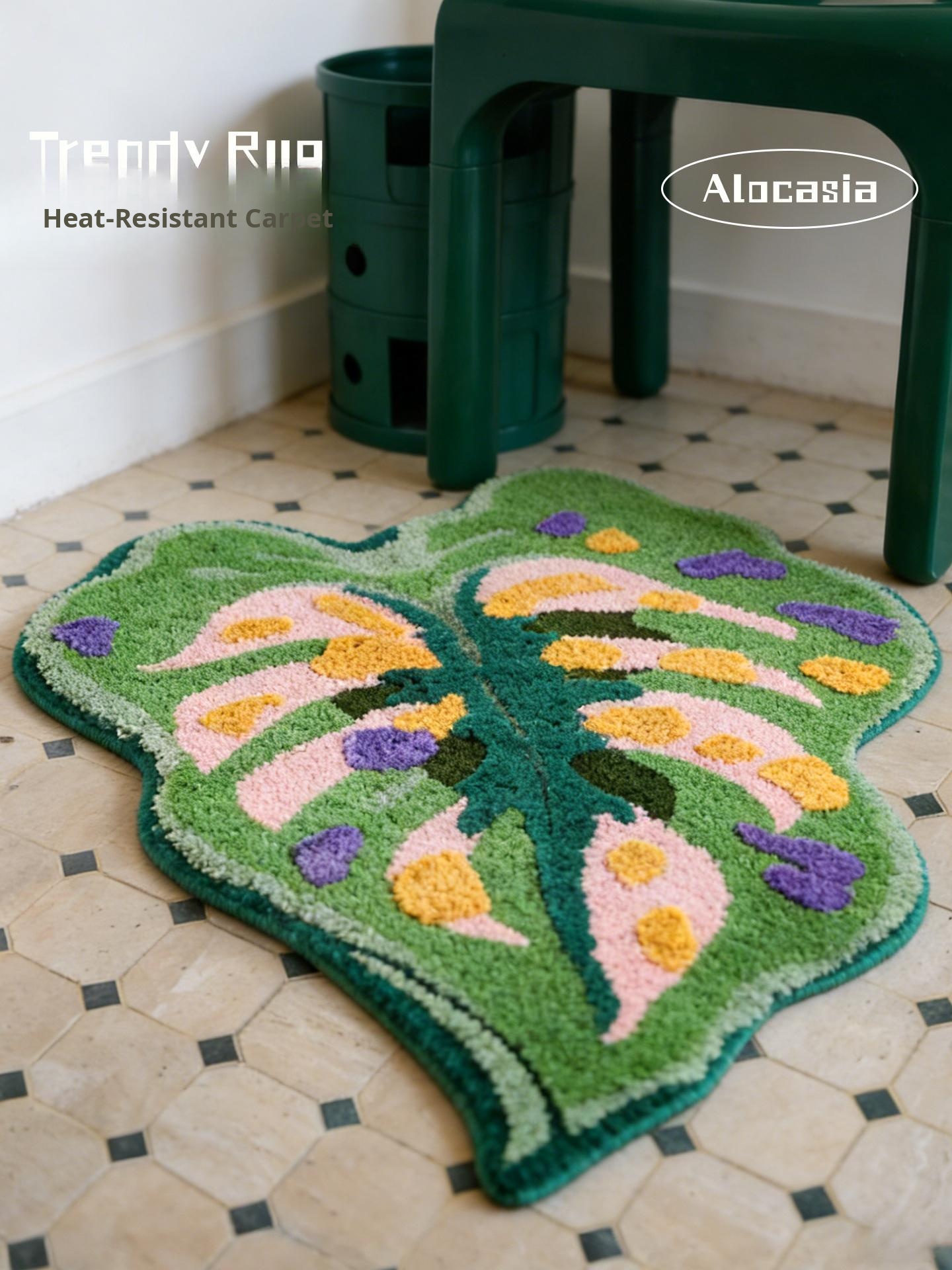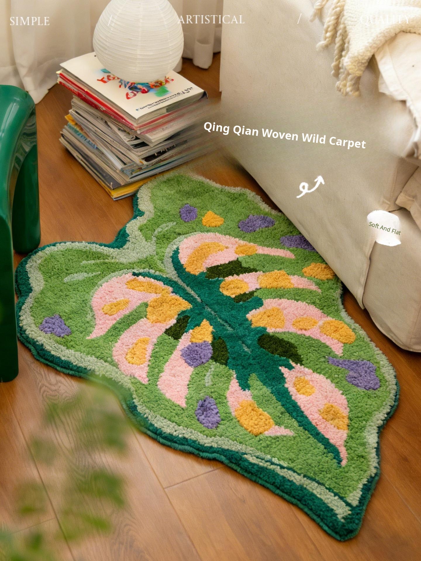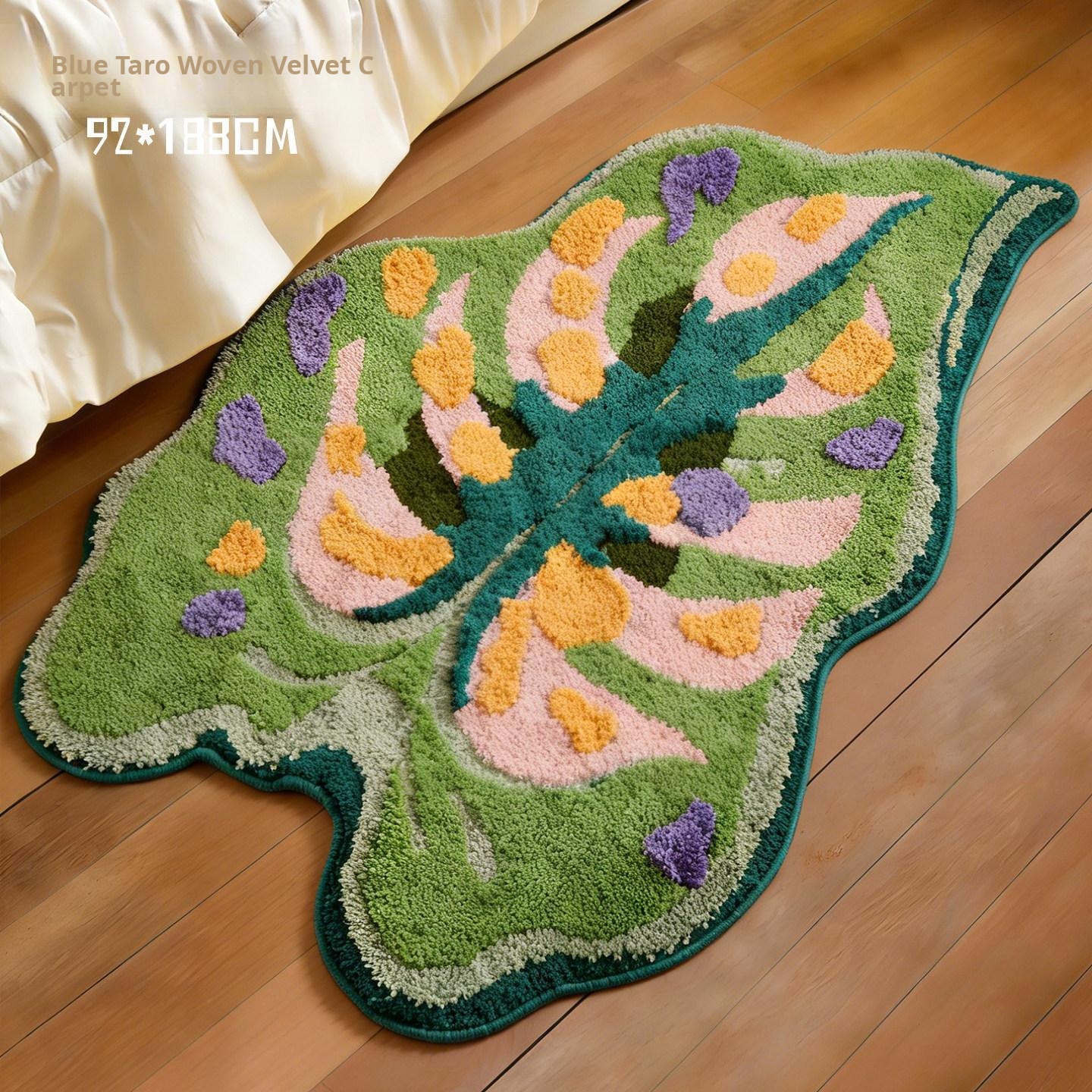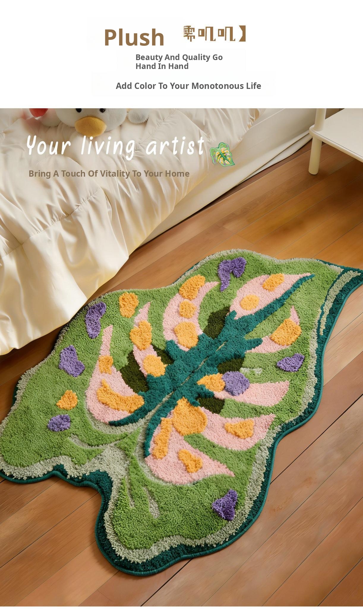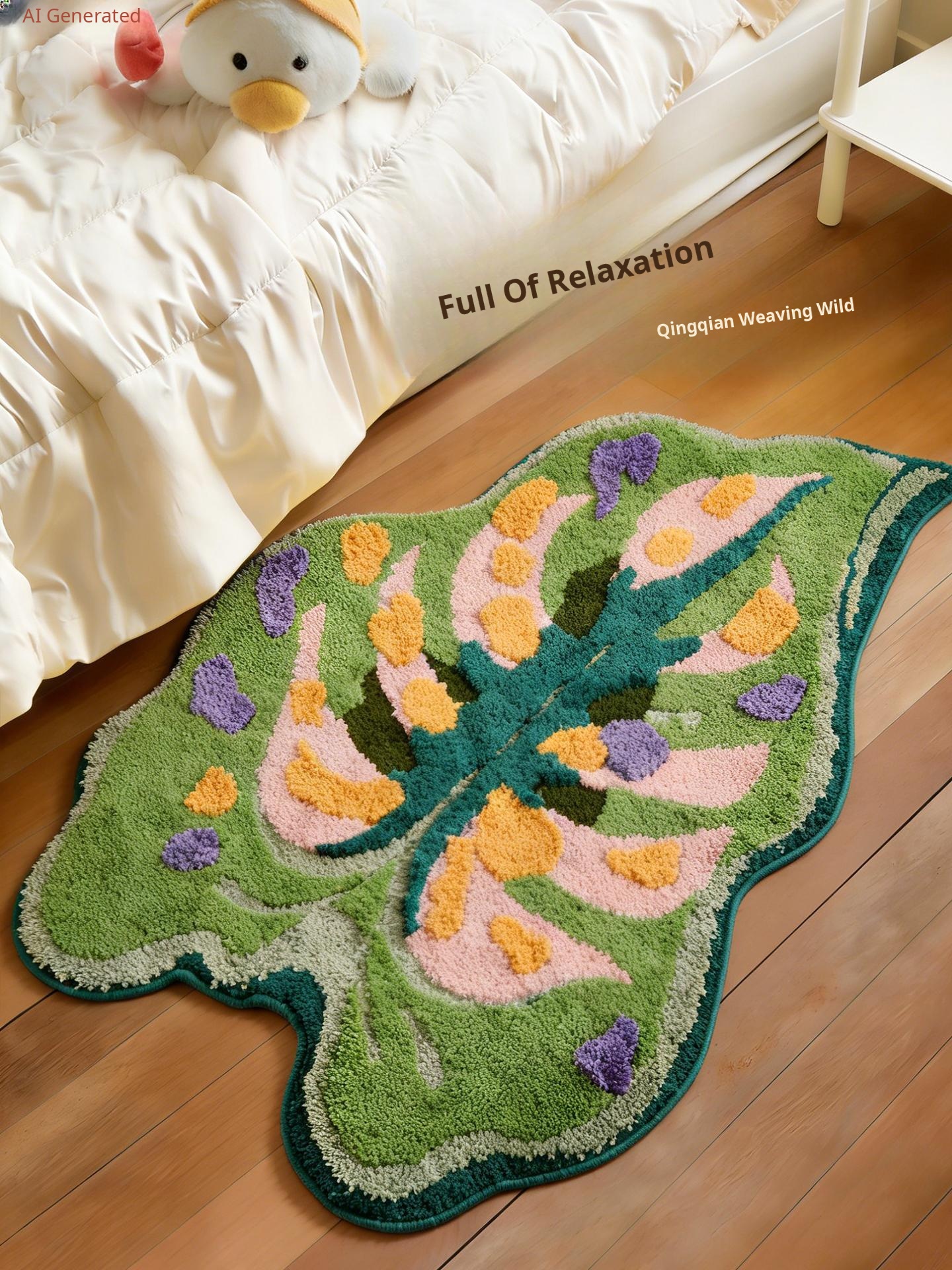 Caviosen Green Area Rug - Luxurious, Machine-Washable Bedroom Carpet for Bedside - Unique Shaped Floor Mat and Doormat