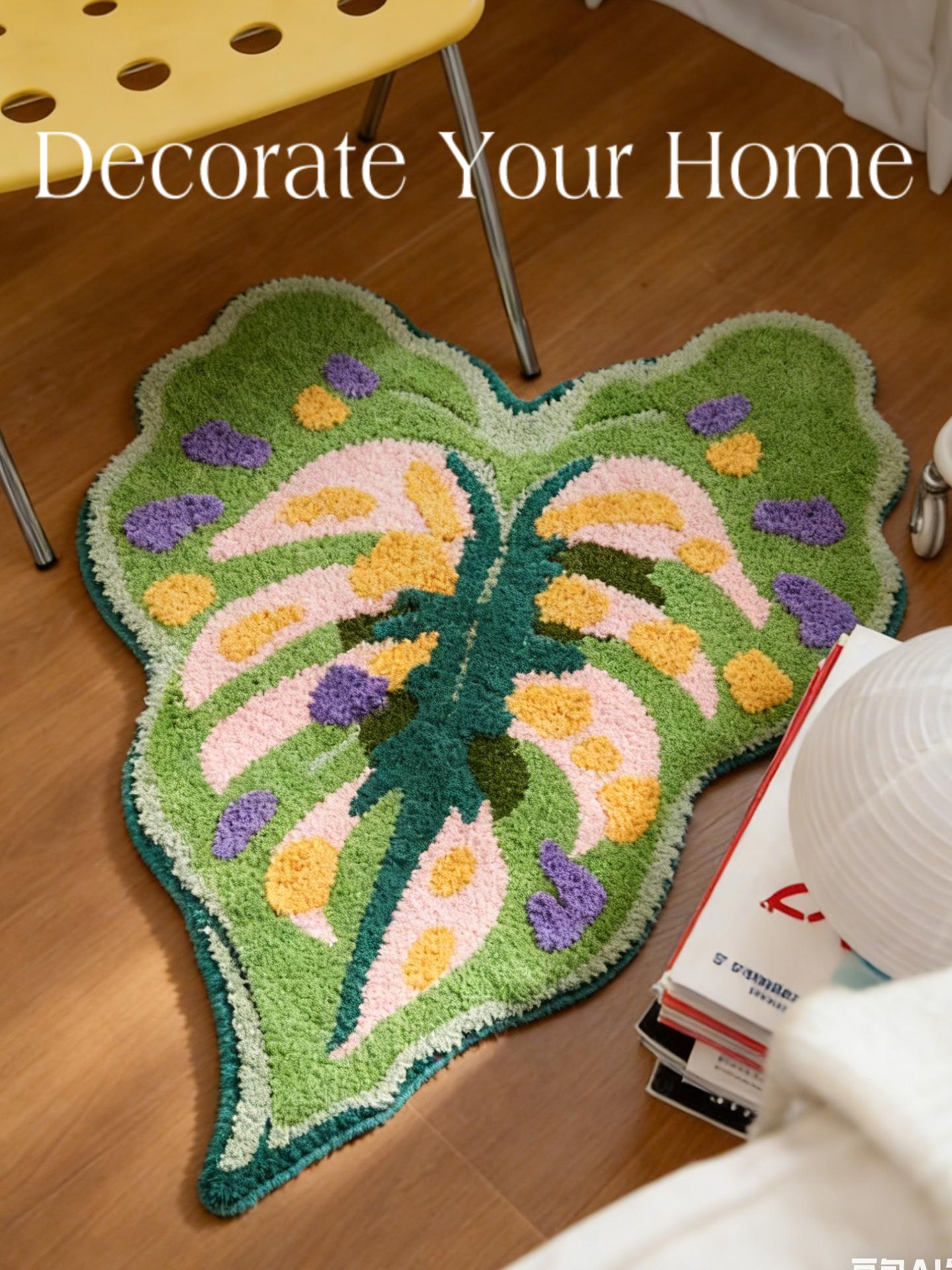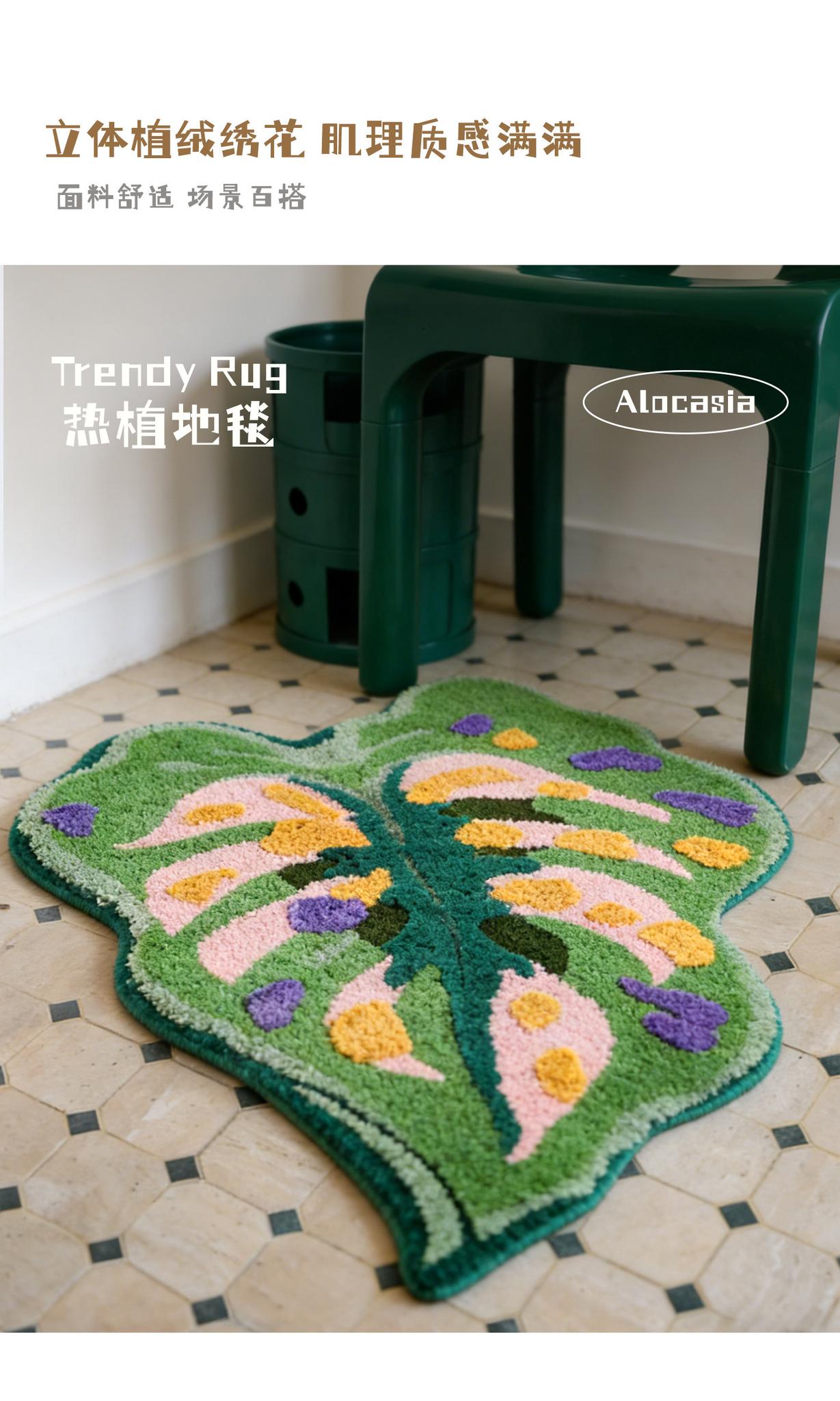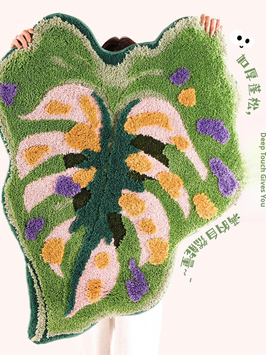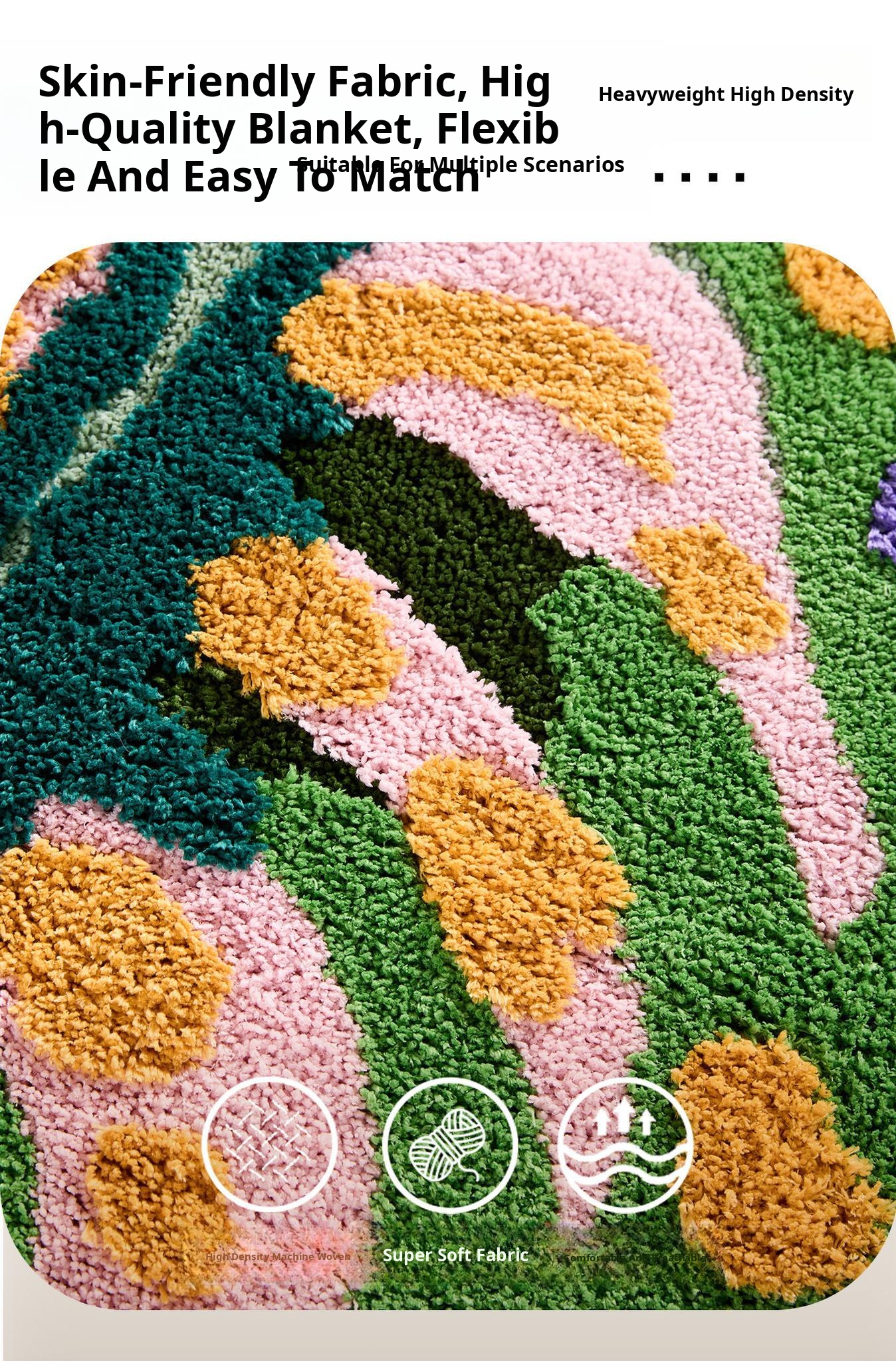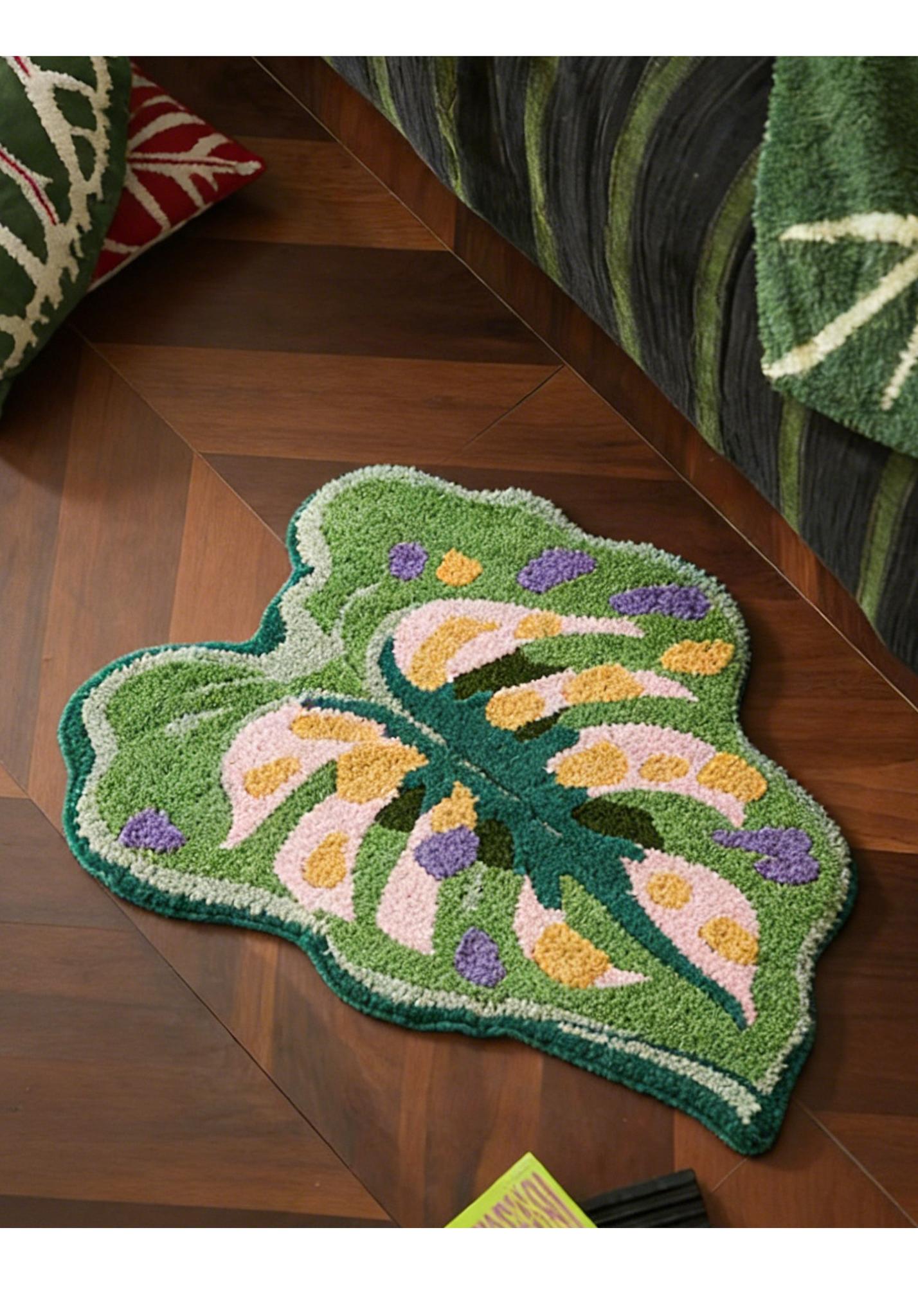 Caviosen Green Area Rug - Luxurious, Machine-Washable Bedroom Carpet for Bedside - Unique Shaped Floor Mat and Doormat