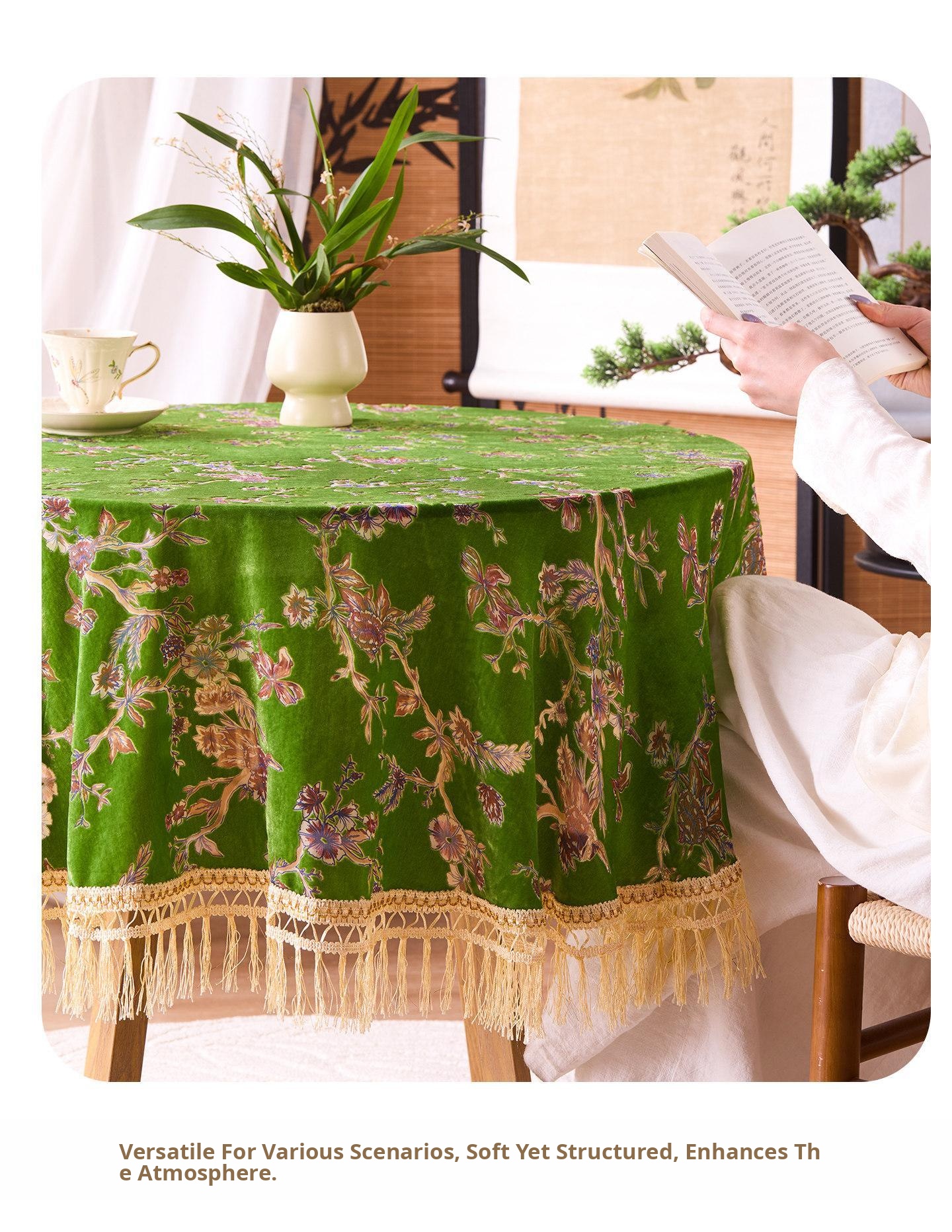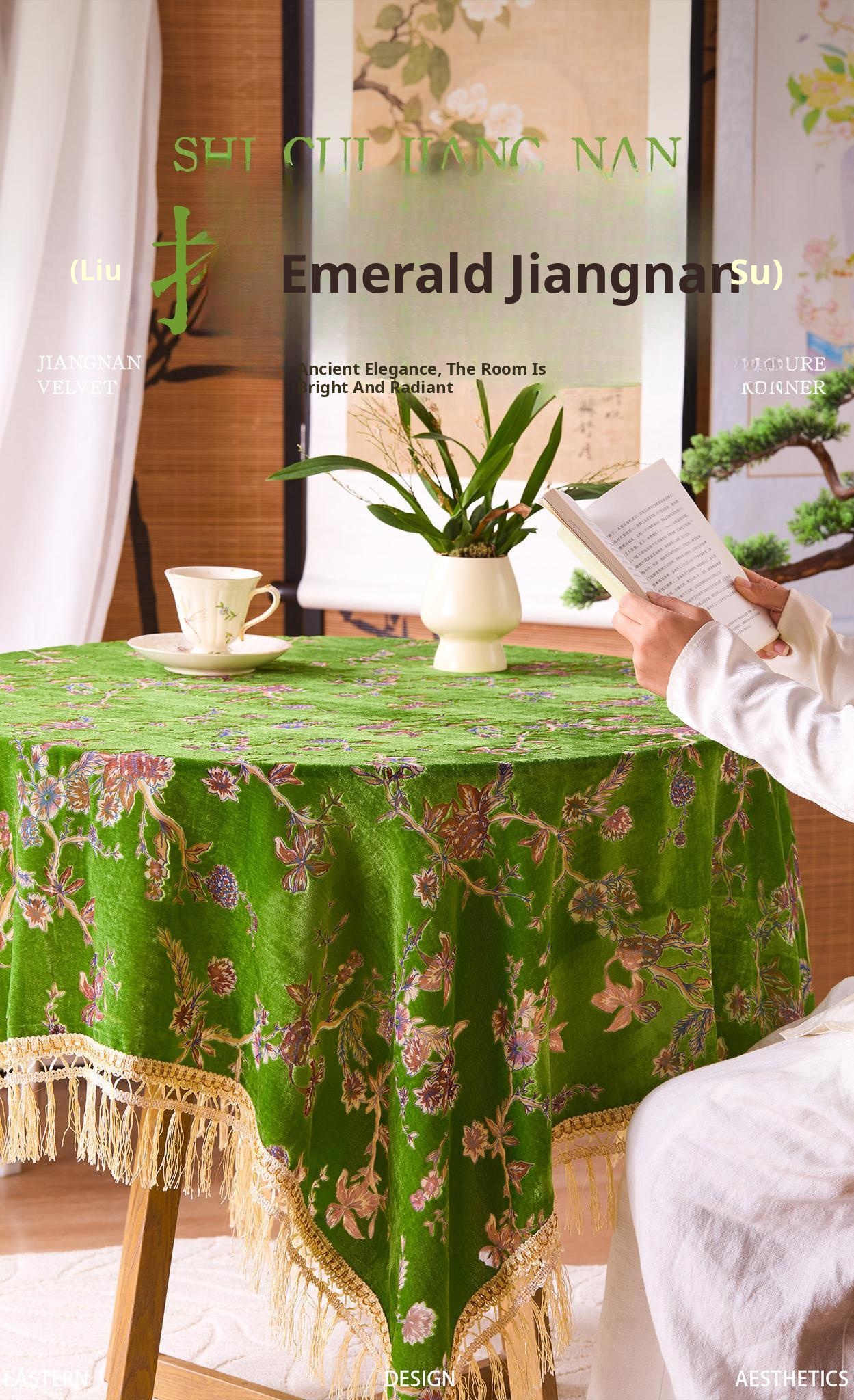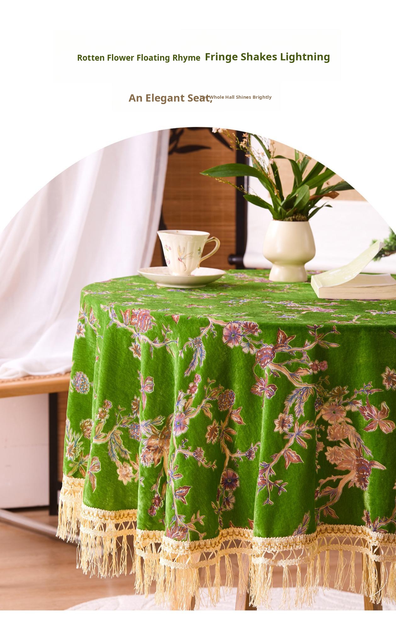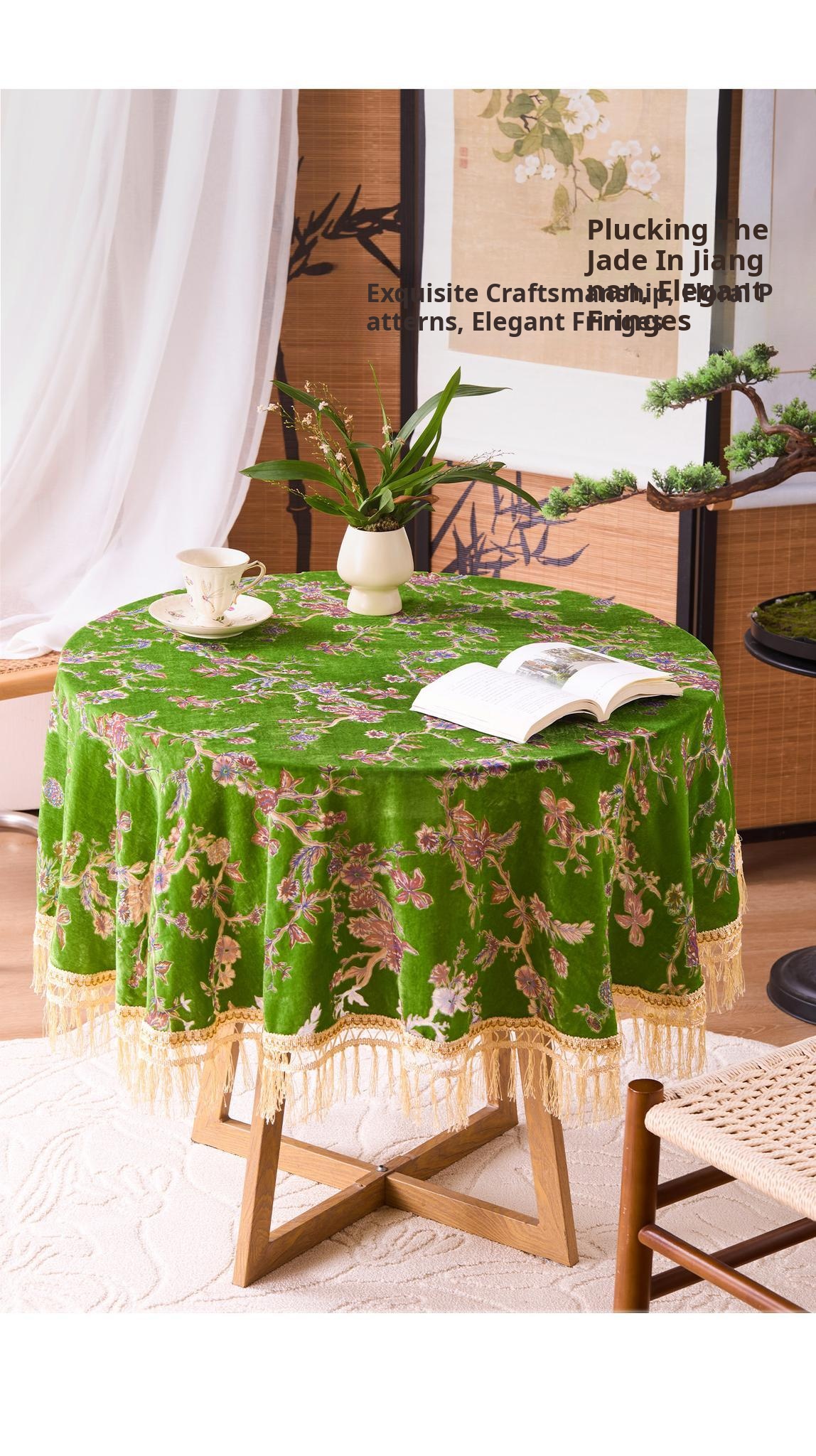 Pick up the Green Jiangnan Tassel Tablecloth-Round