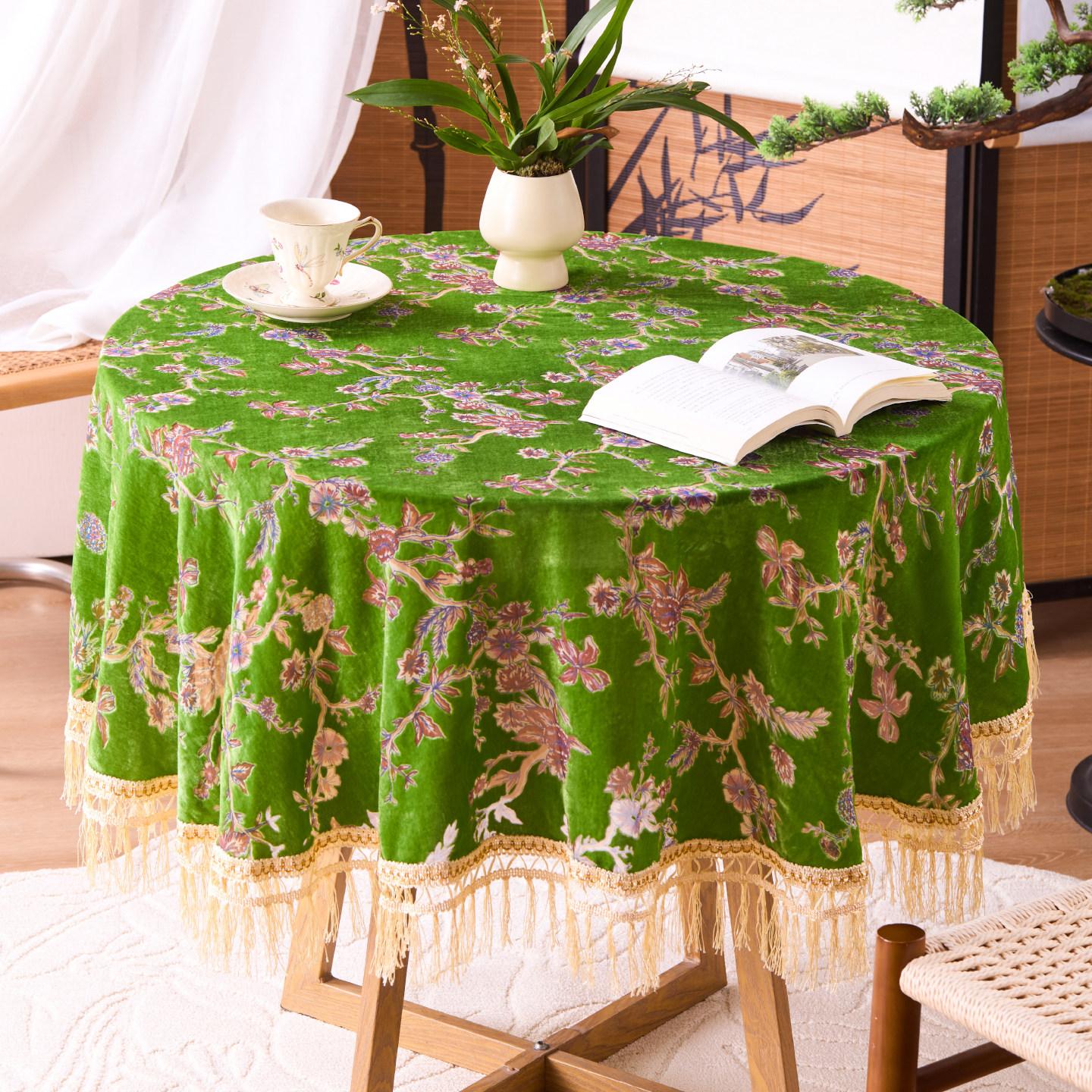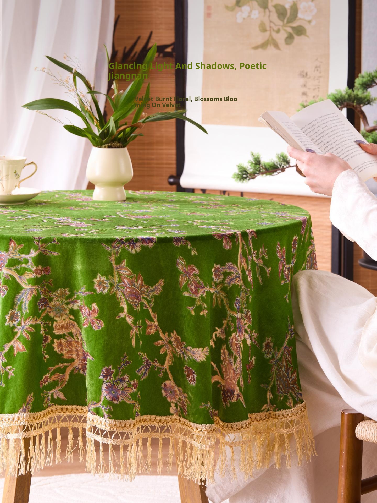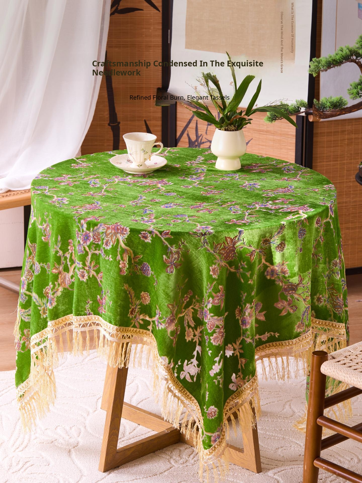 Pick up the Green Jiangnan Tassel Tablecloth-Round