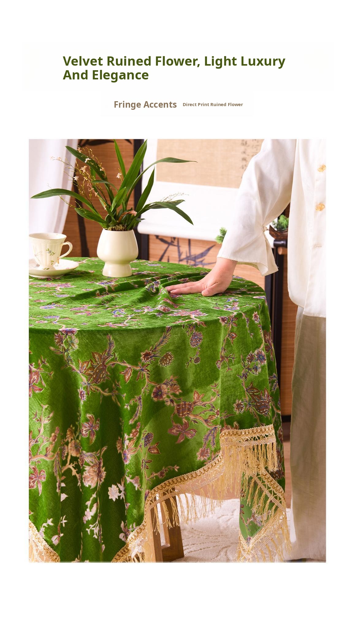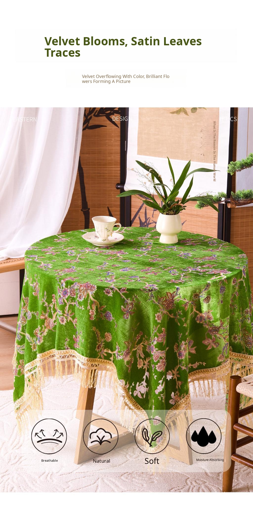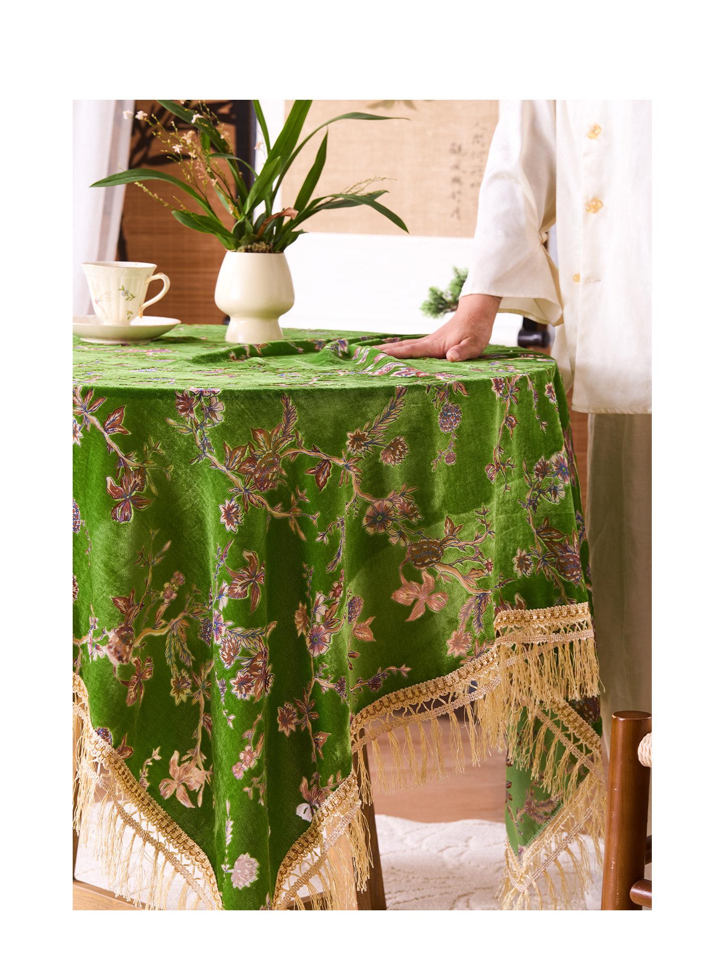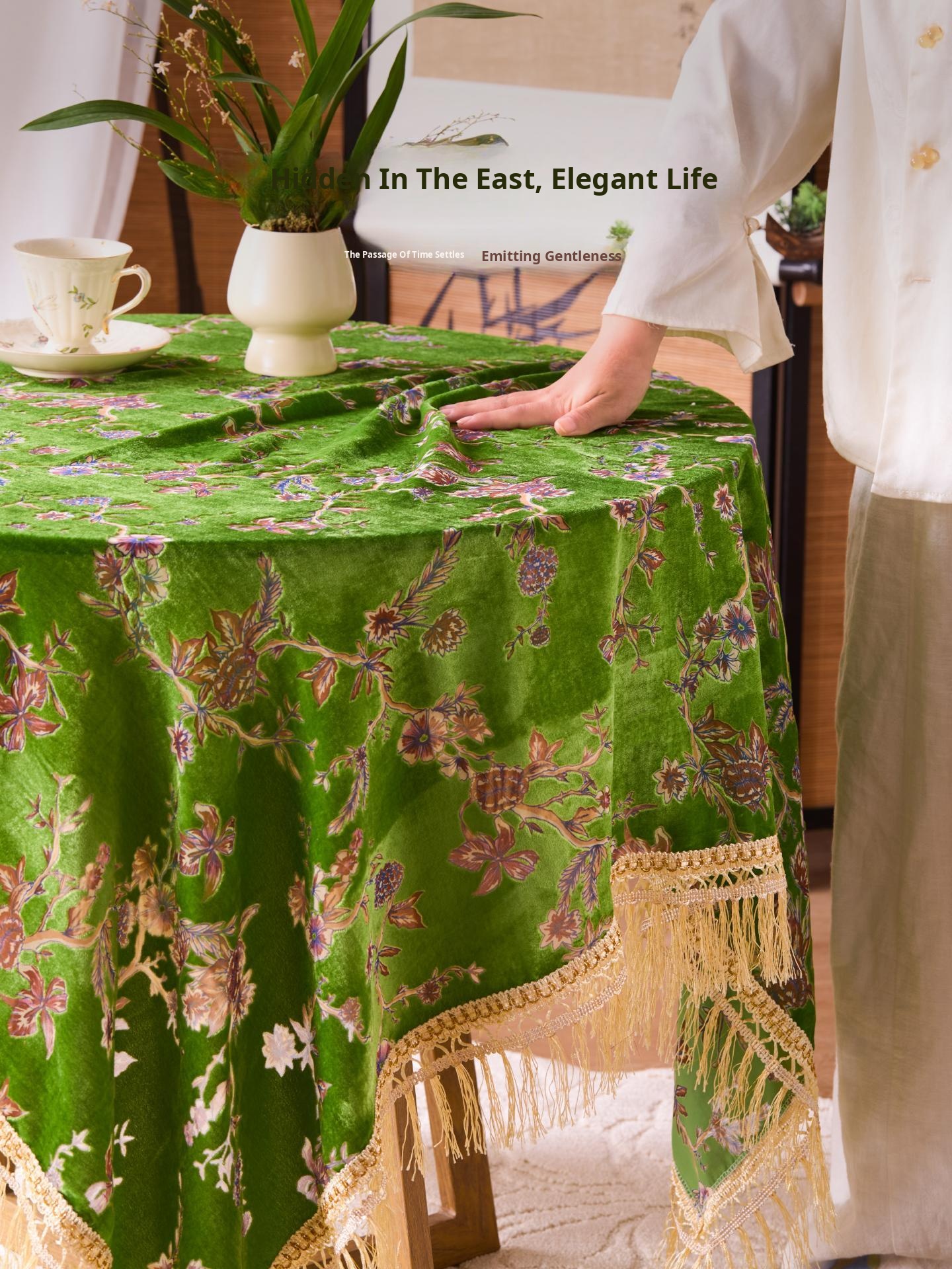 Pick up the Green Jiangnan Tassel Tablecloth-Round