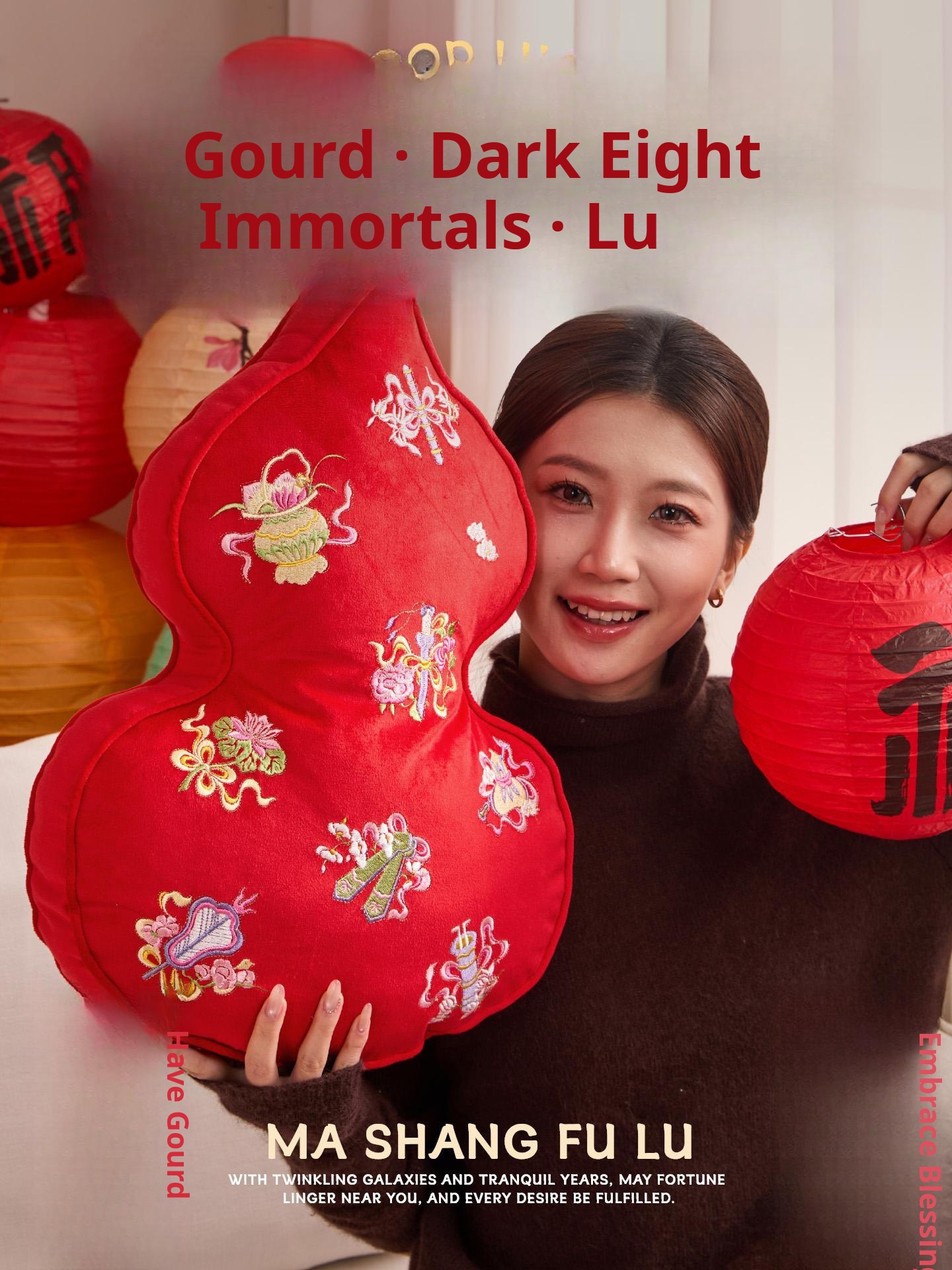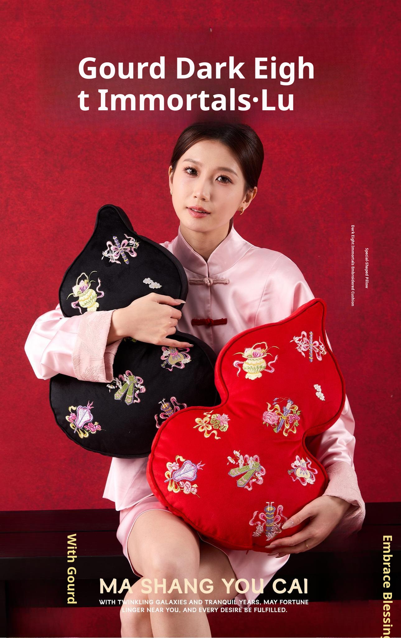 Embroidered Eight Iinortals Gourd Pillow - Red