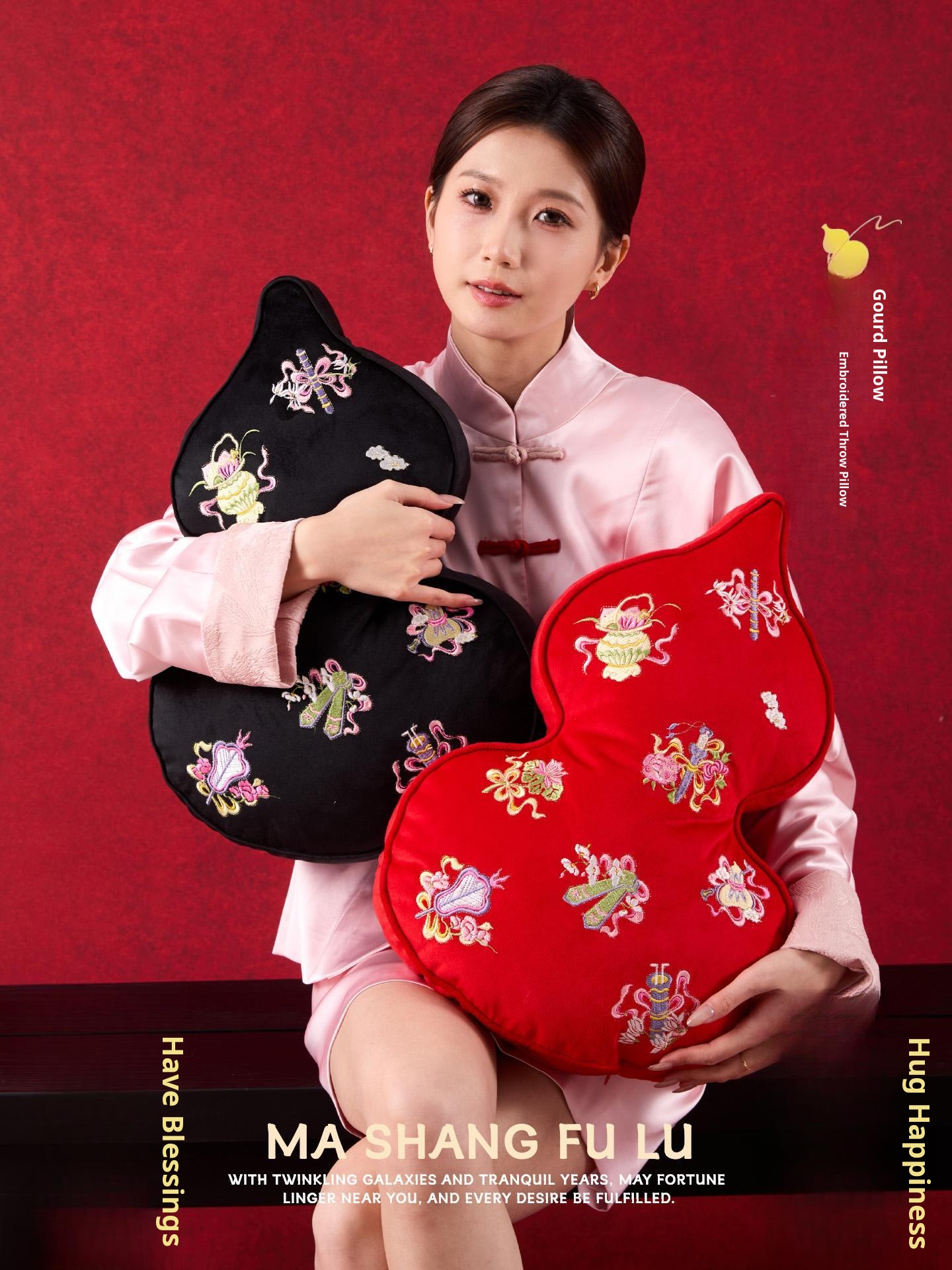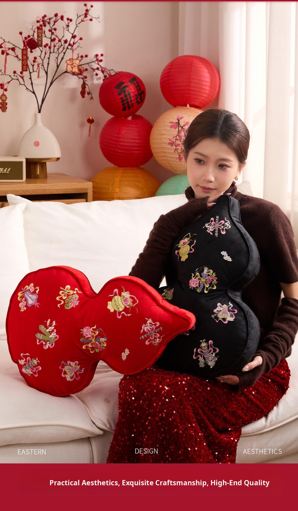 Caviosen Luxury Chinese-Style Gourd Pillow - Elegant Sofa Cushion for Living Room Decor and Supportive Backrest