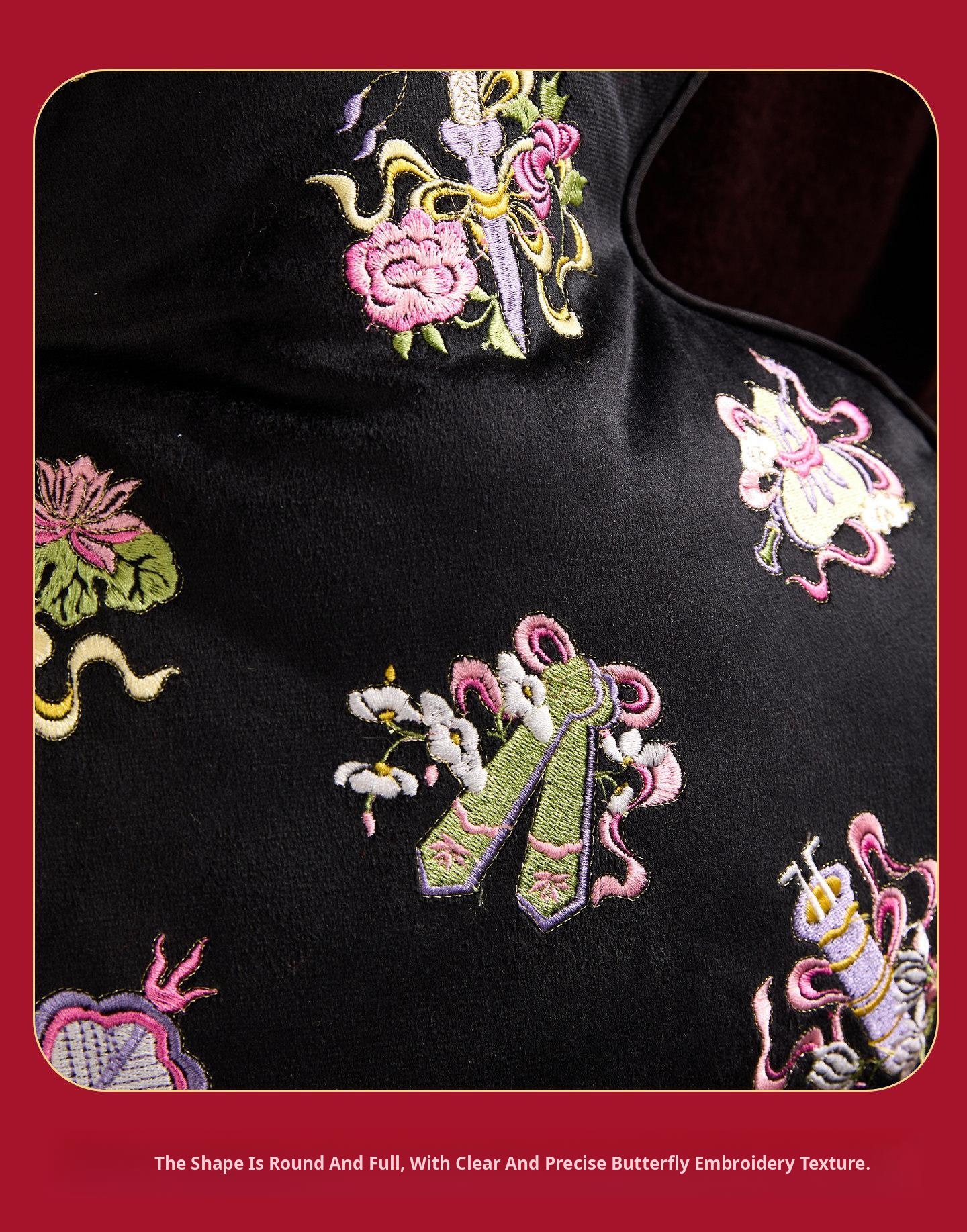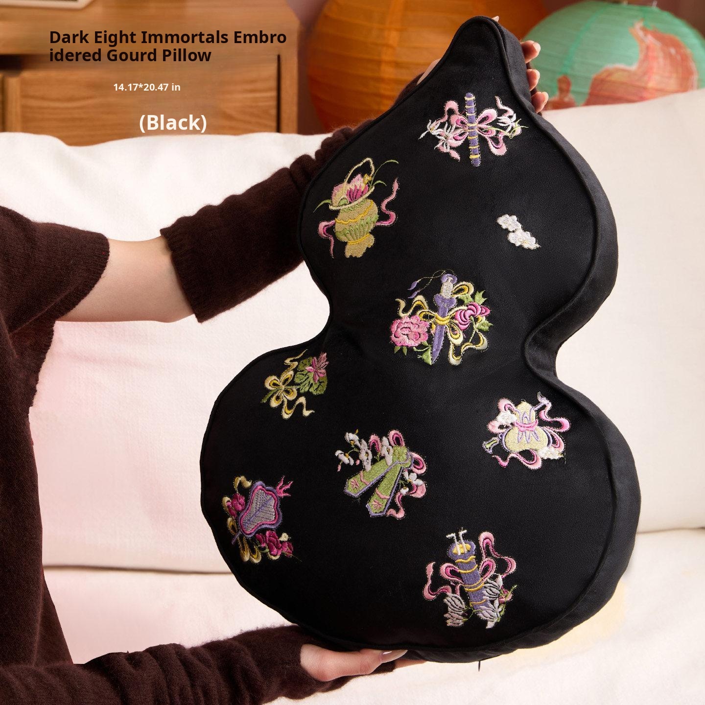 Dark Eight Iinortals Embroidered Gourd Pillow-Black