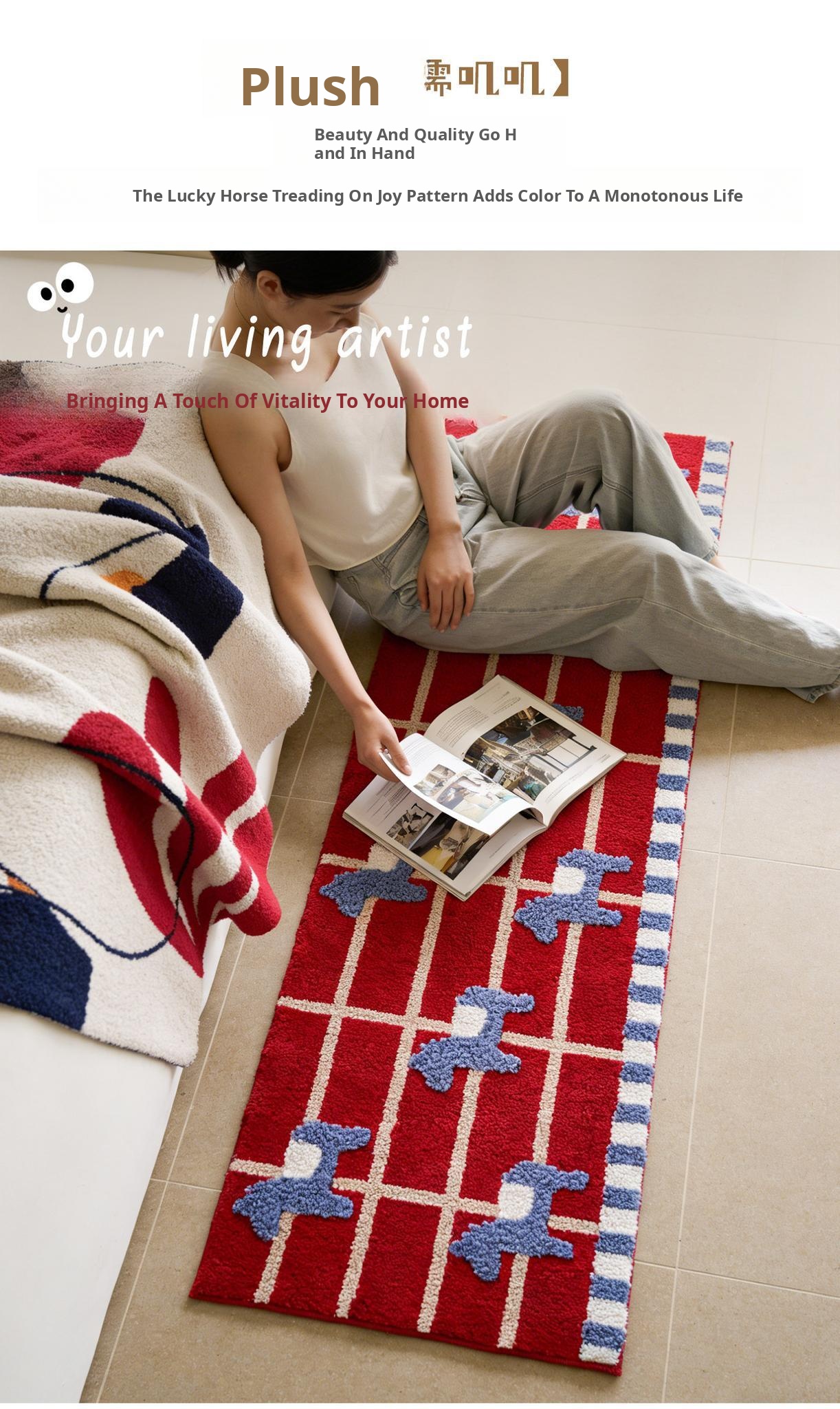 Caviosen Original Year of the Horse Pony Bedroom Bedside Rug - Festive Luxury Long Runner Carpet for Living Room