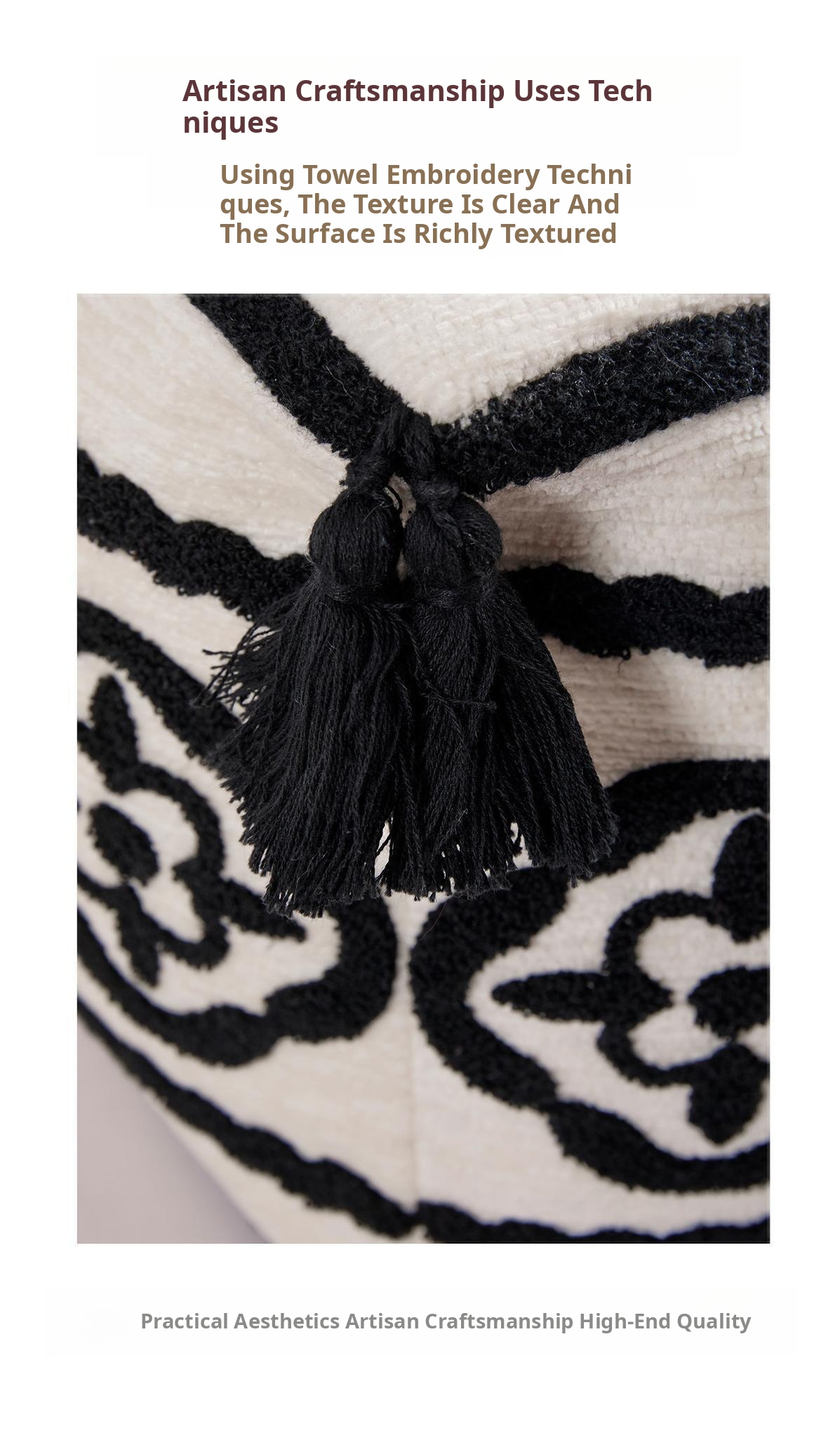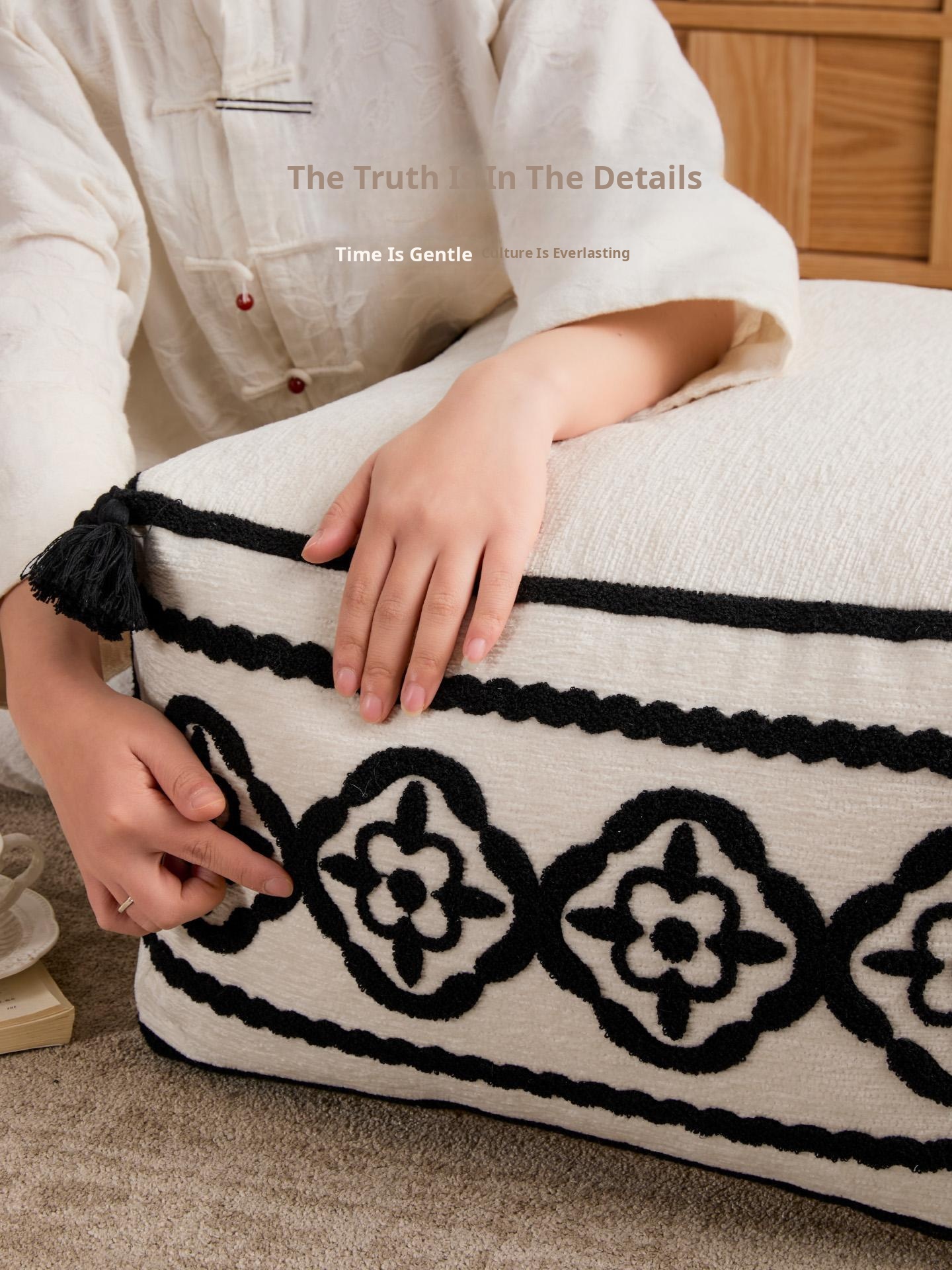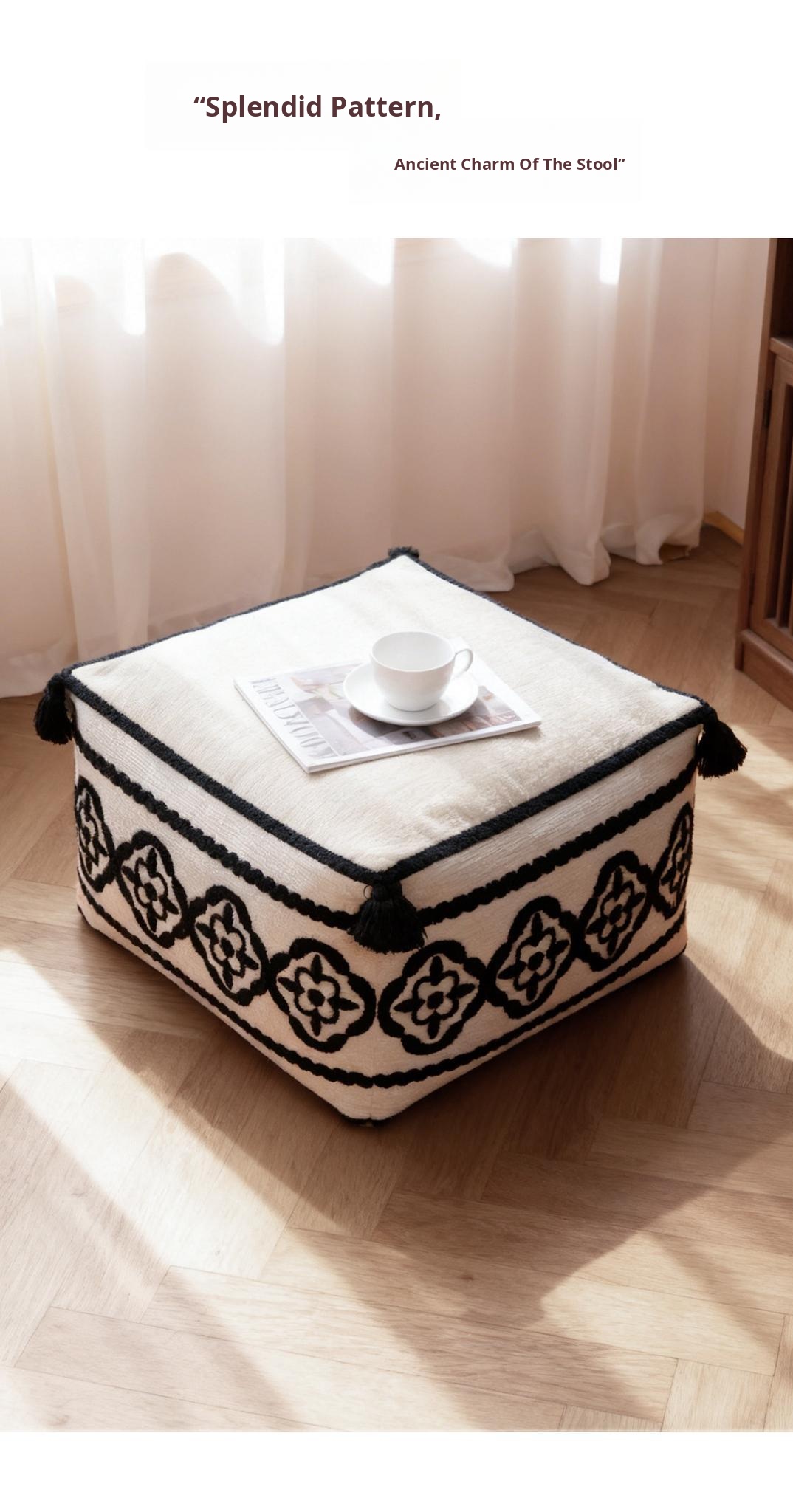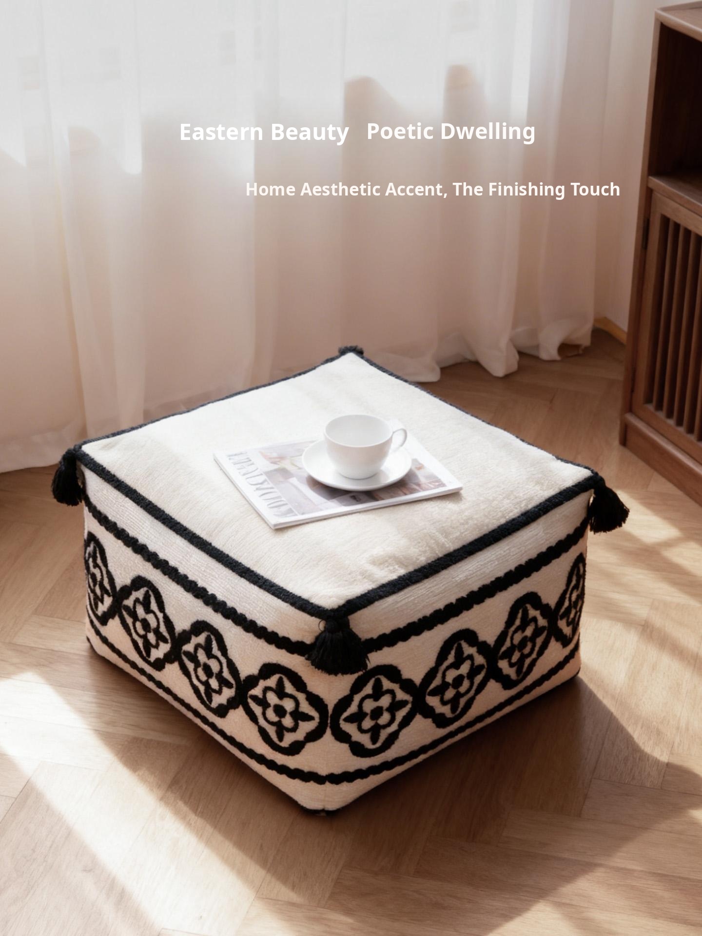 Four-Directional Auspicious Pattern Embroidered Pouf - Black