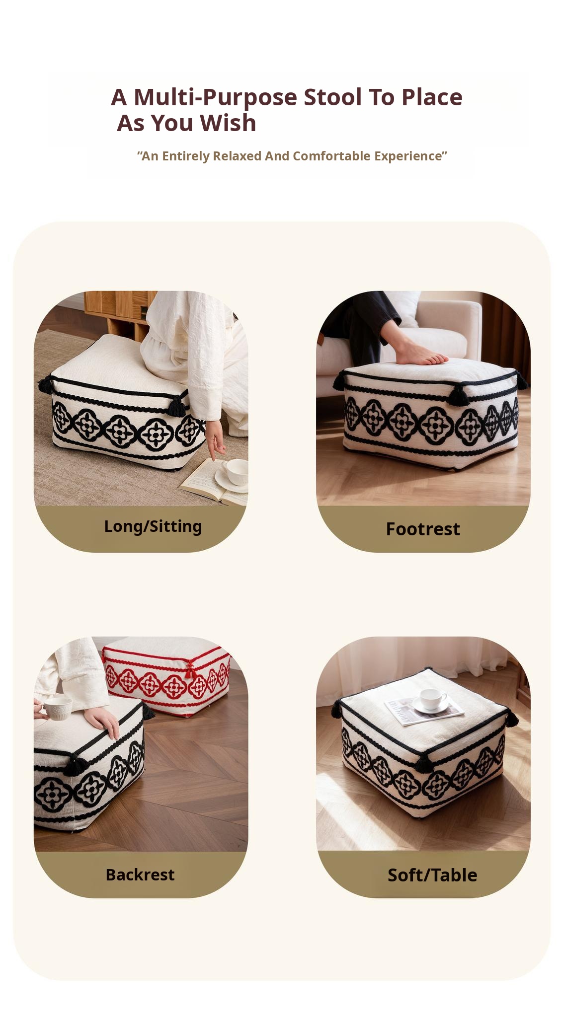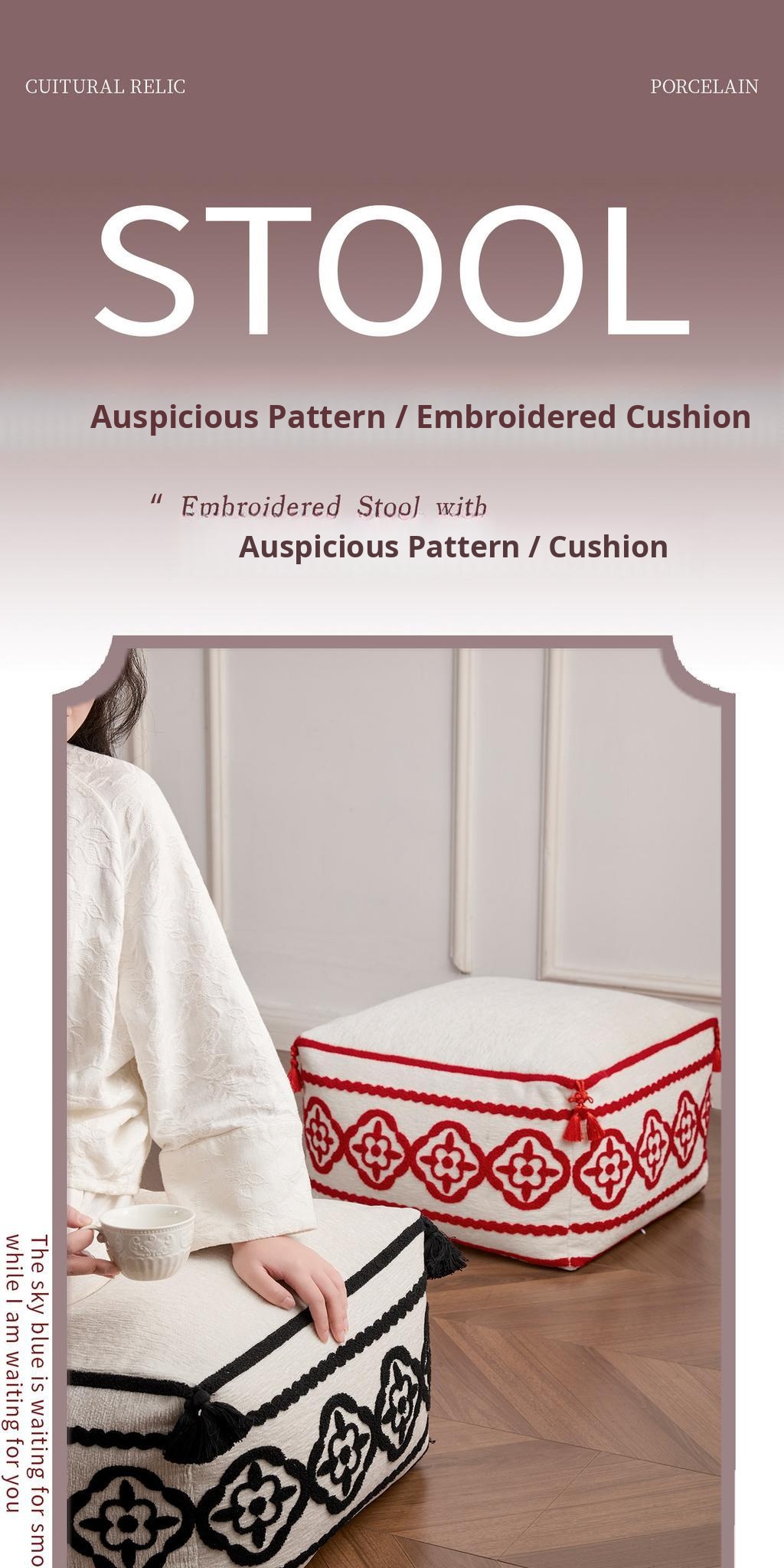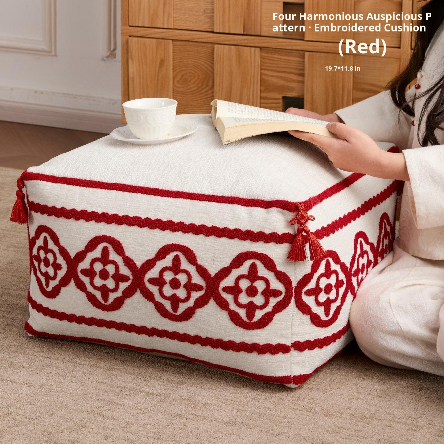 Four-In-One Auspicious Pattern Embroidered Pouf - Red