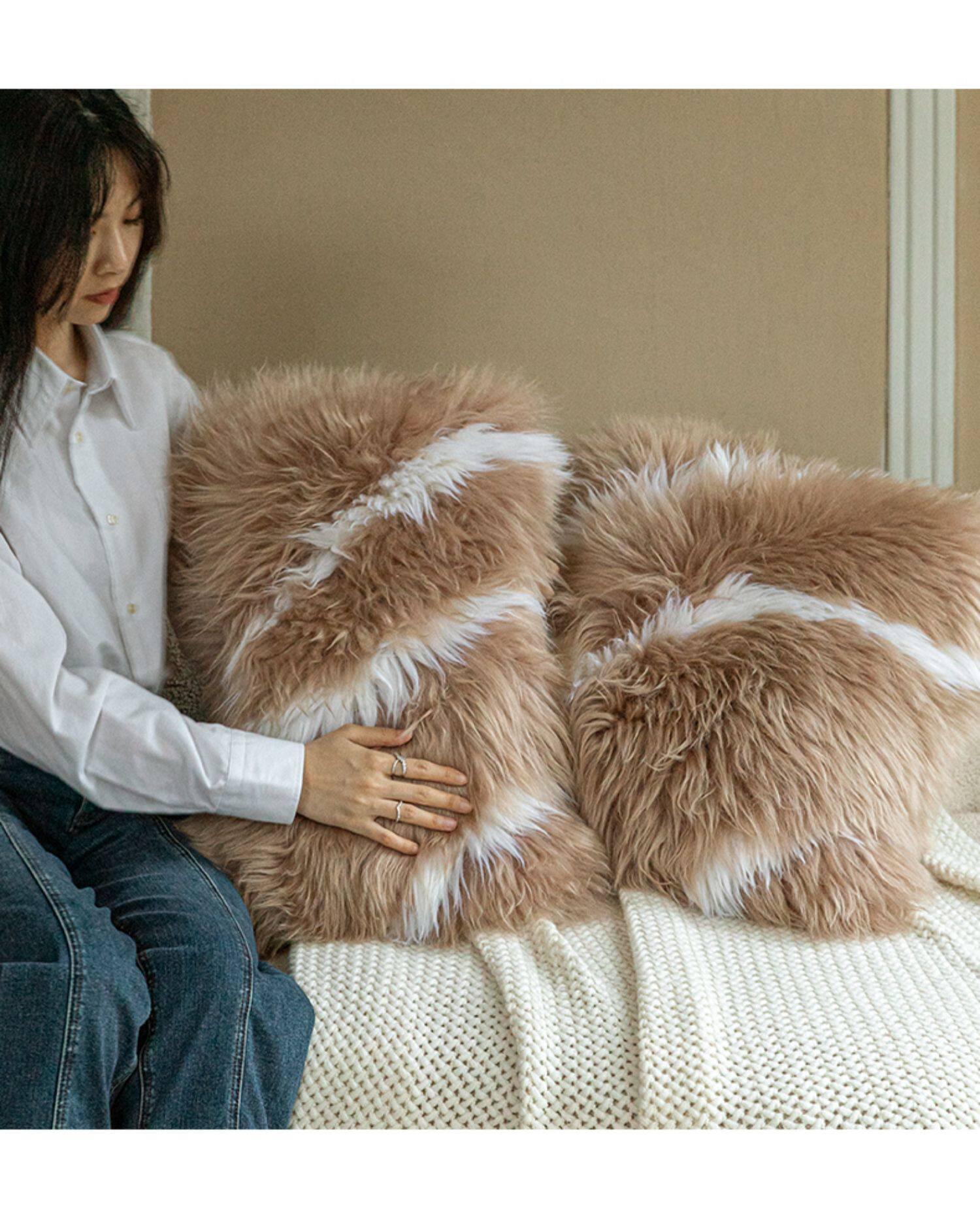 Caviosen Premium Leather & Fur Decorative Pillow – Luxurious Accent Cushion for Living Room Sofas, Bedroom Headboards, and Bay Windows – Elevate Your Home Décor with Style and Comfort