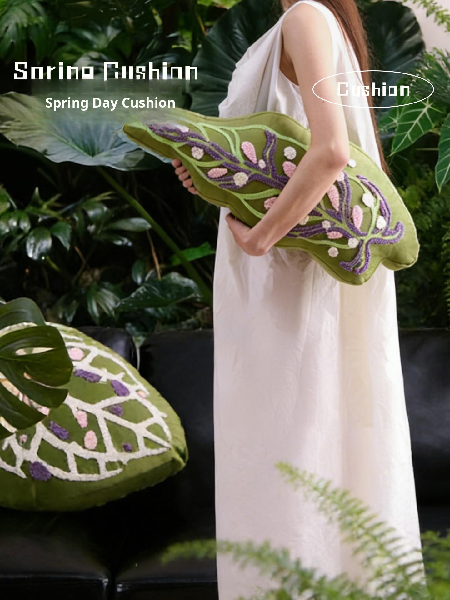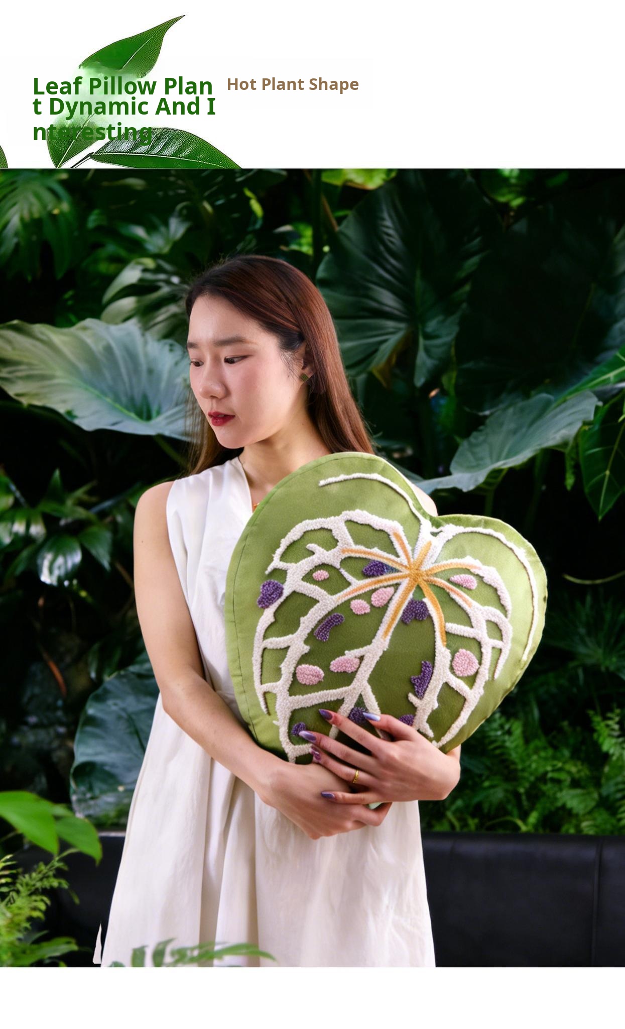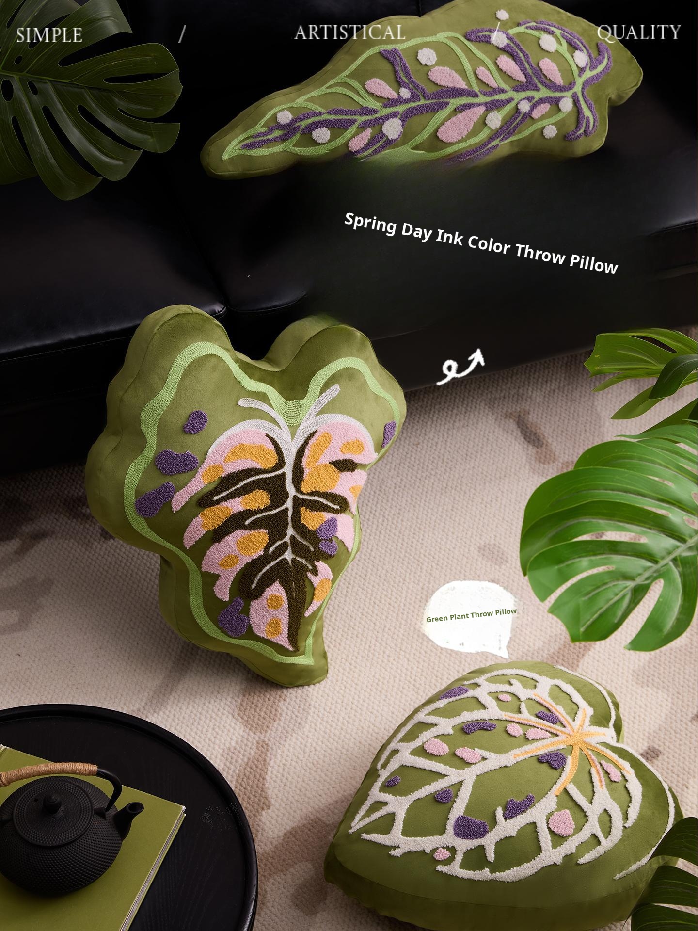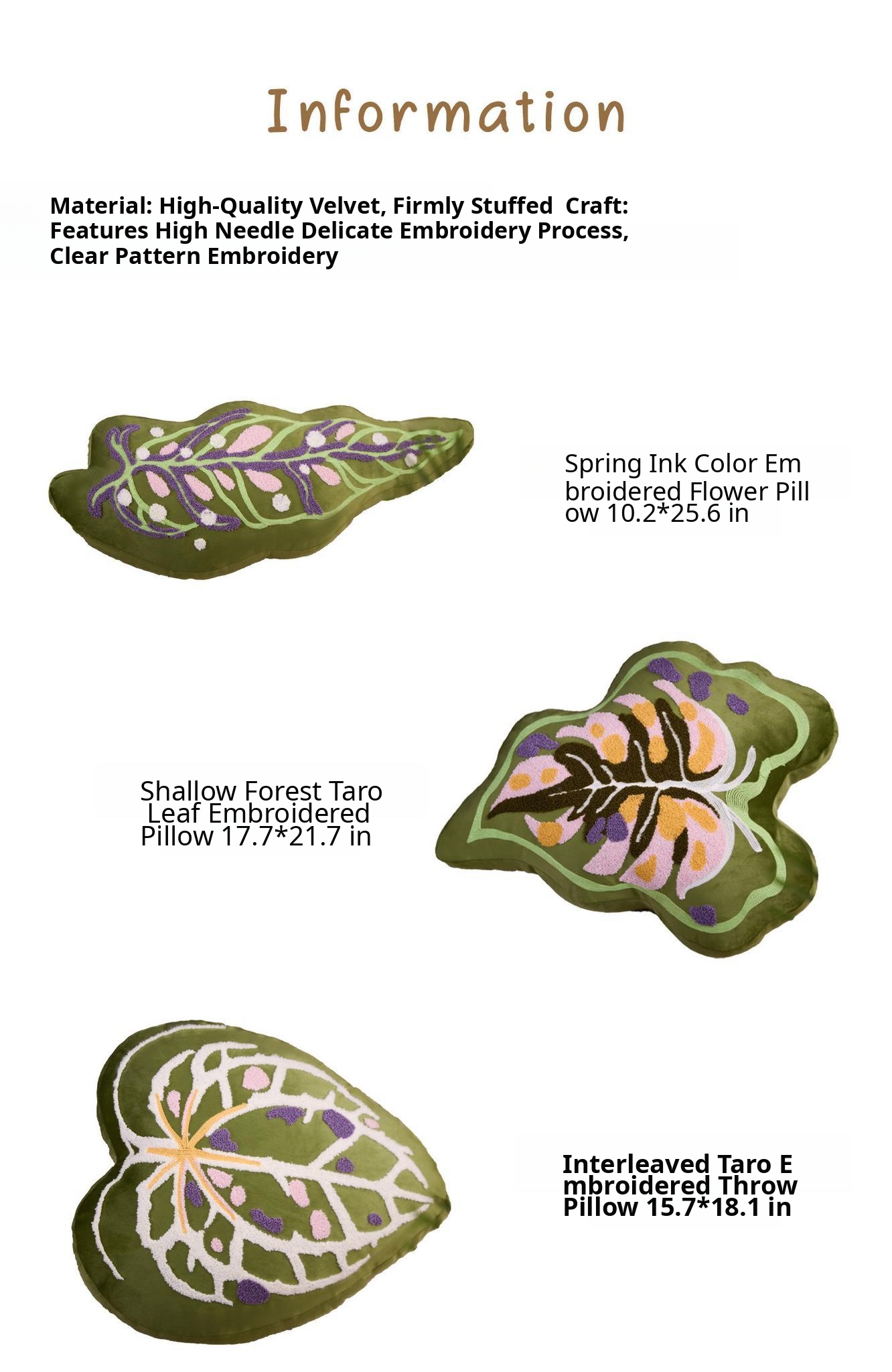 Embroidered Pillow with Green Taro Leaves(15.75in*18.11in with Core)