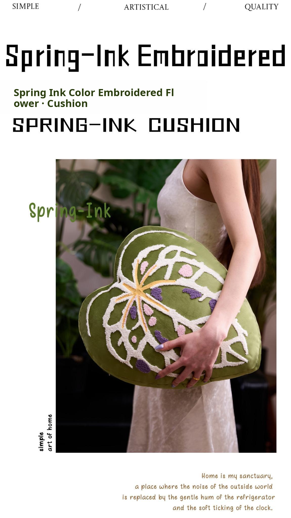 Spring ink embroidered pillow(10.24in*25.59in with Core)