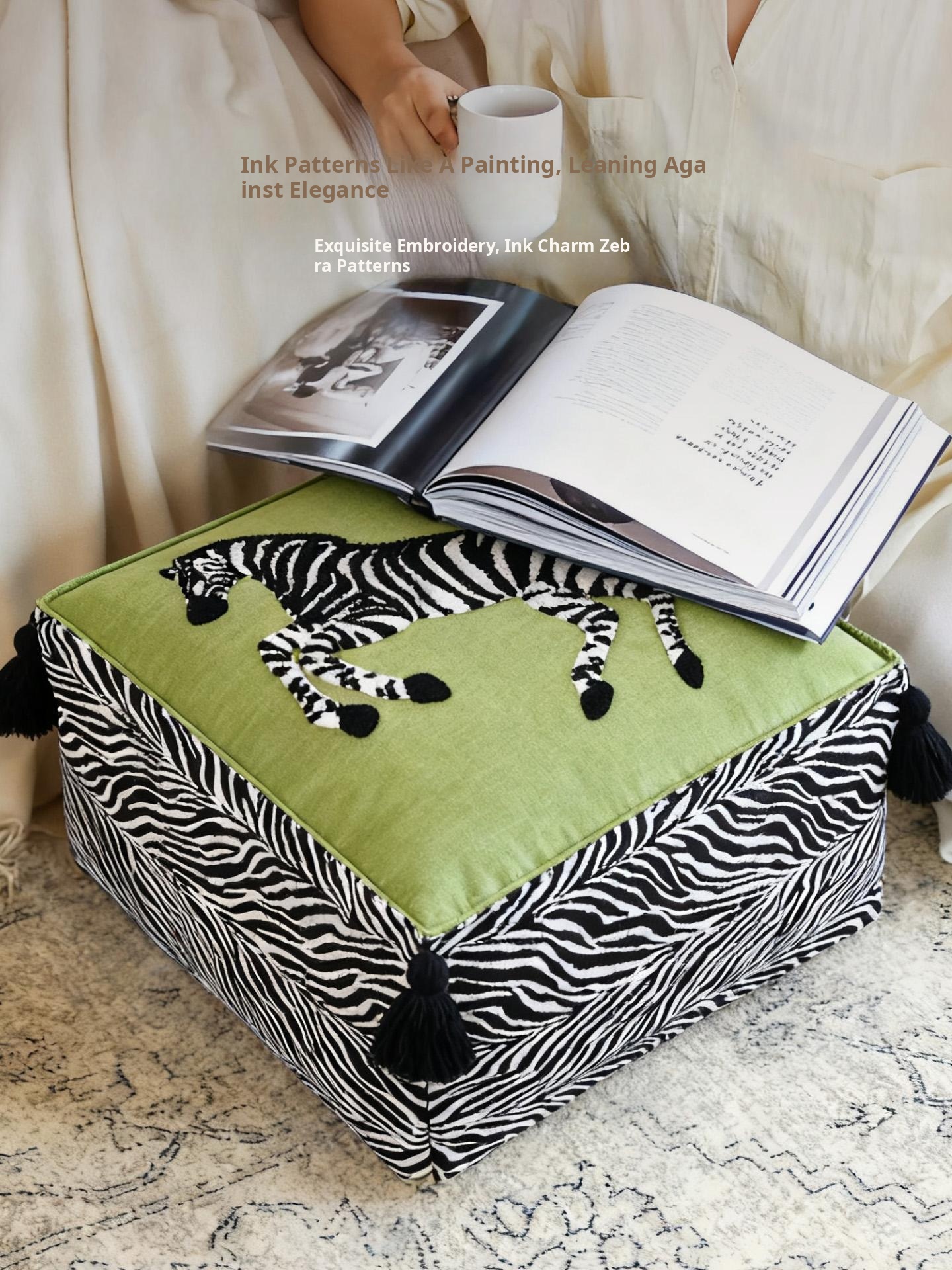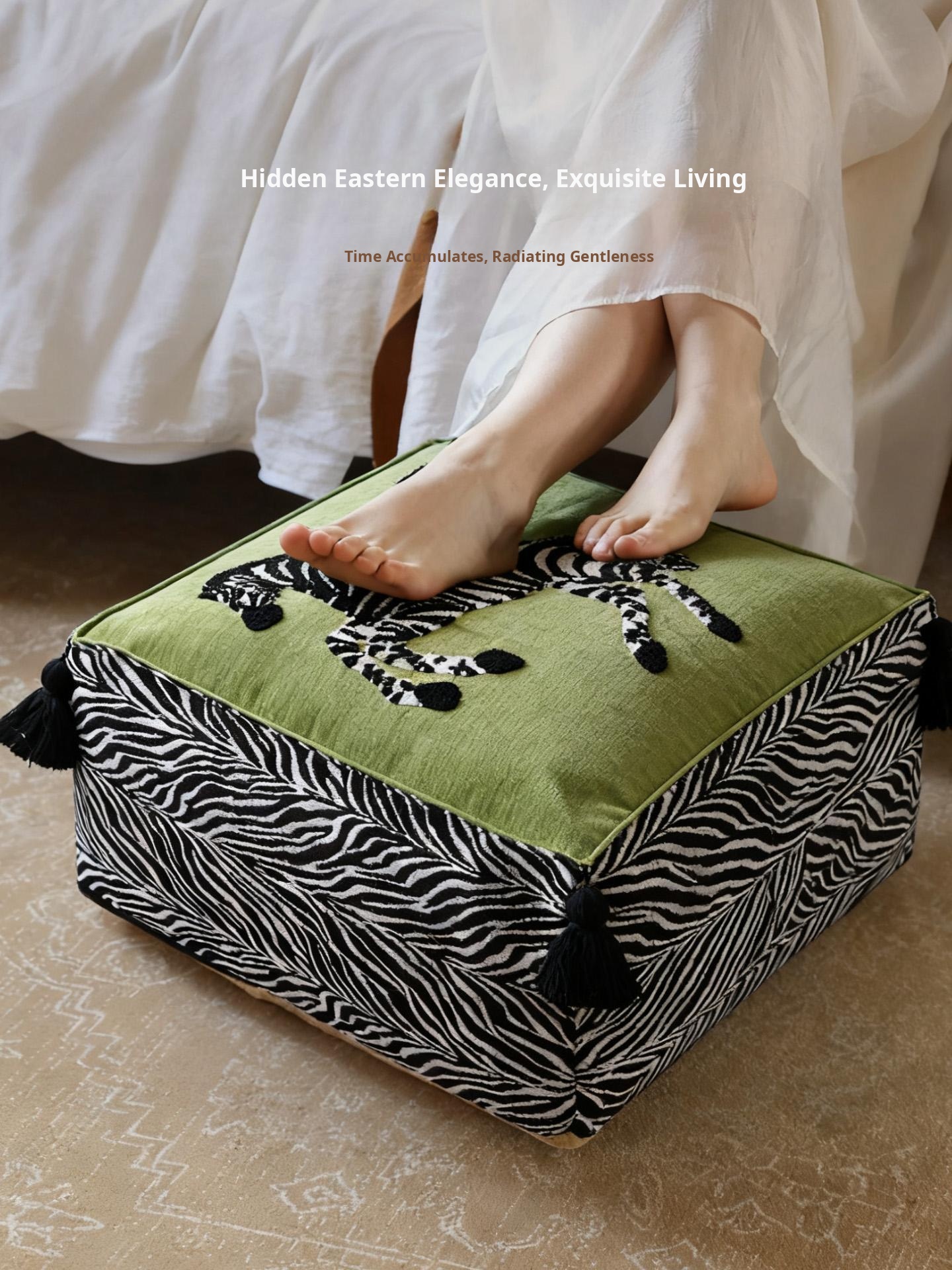 Caviosen Year of the Horse Tassel Stool - Stylish Sofa Side Table, Cozy Floor Cushion, Perfect for Living Room or Bay Window Decor
