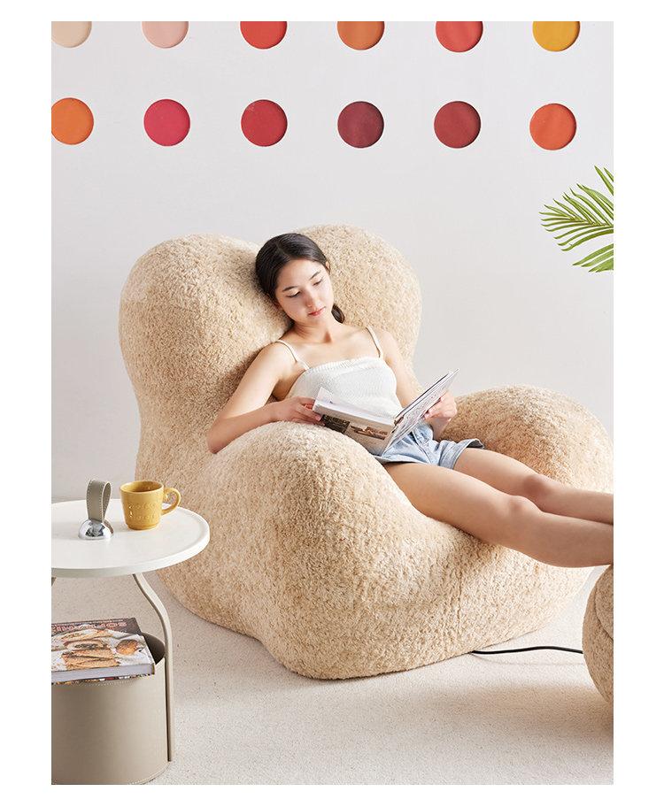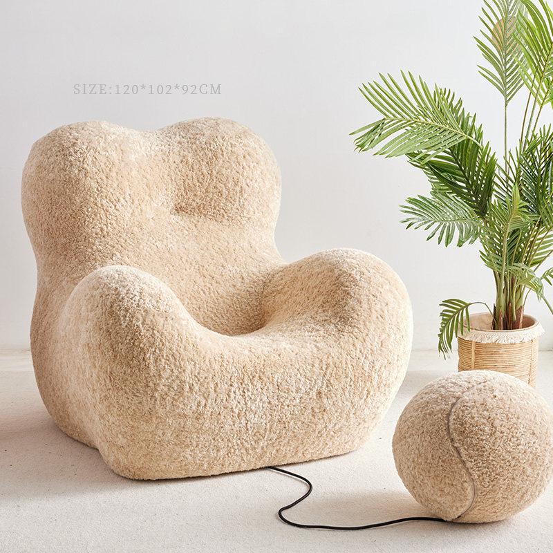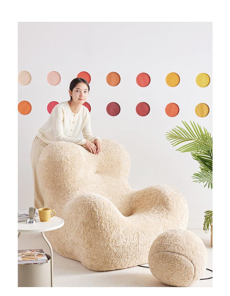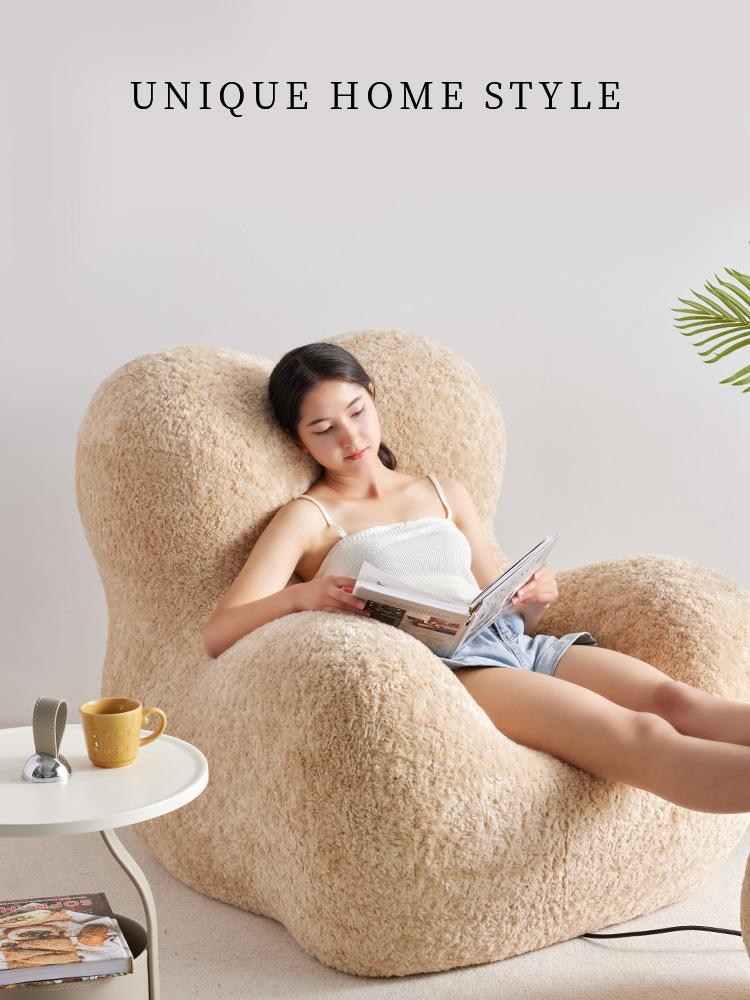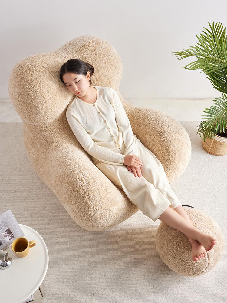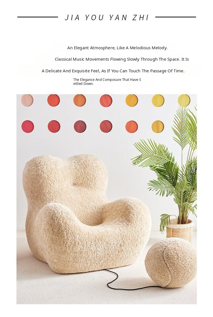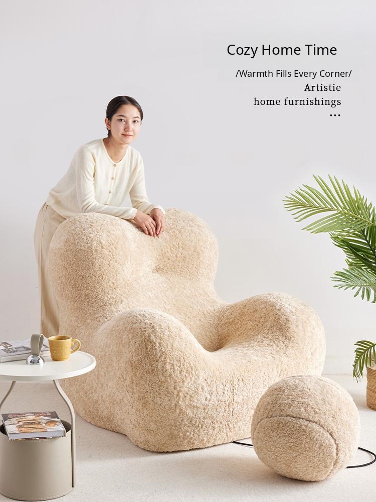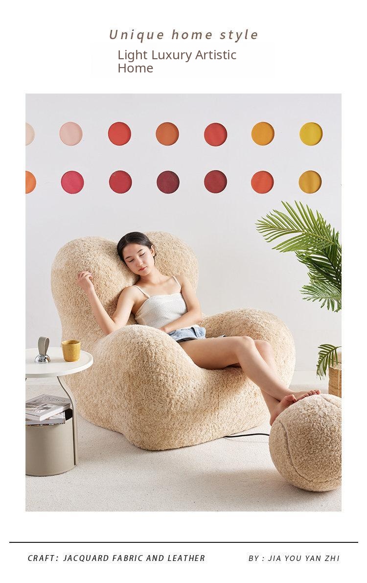 "Cozy Embrace Designer Lazy Sofa - Trendy Creamy Lounge Chair for Living Room, Perfect for Relaxing and Unwinding"