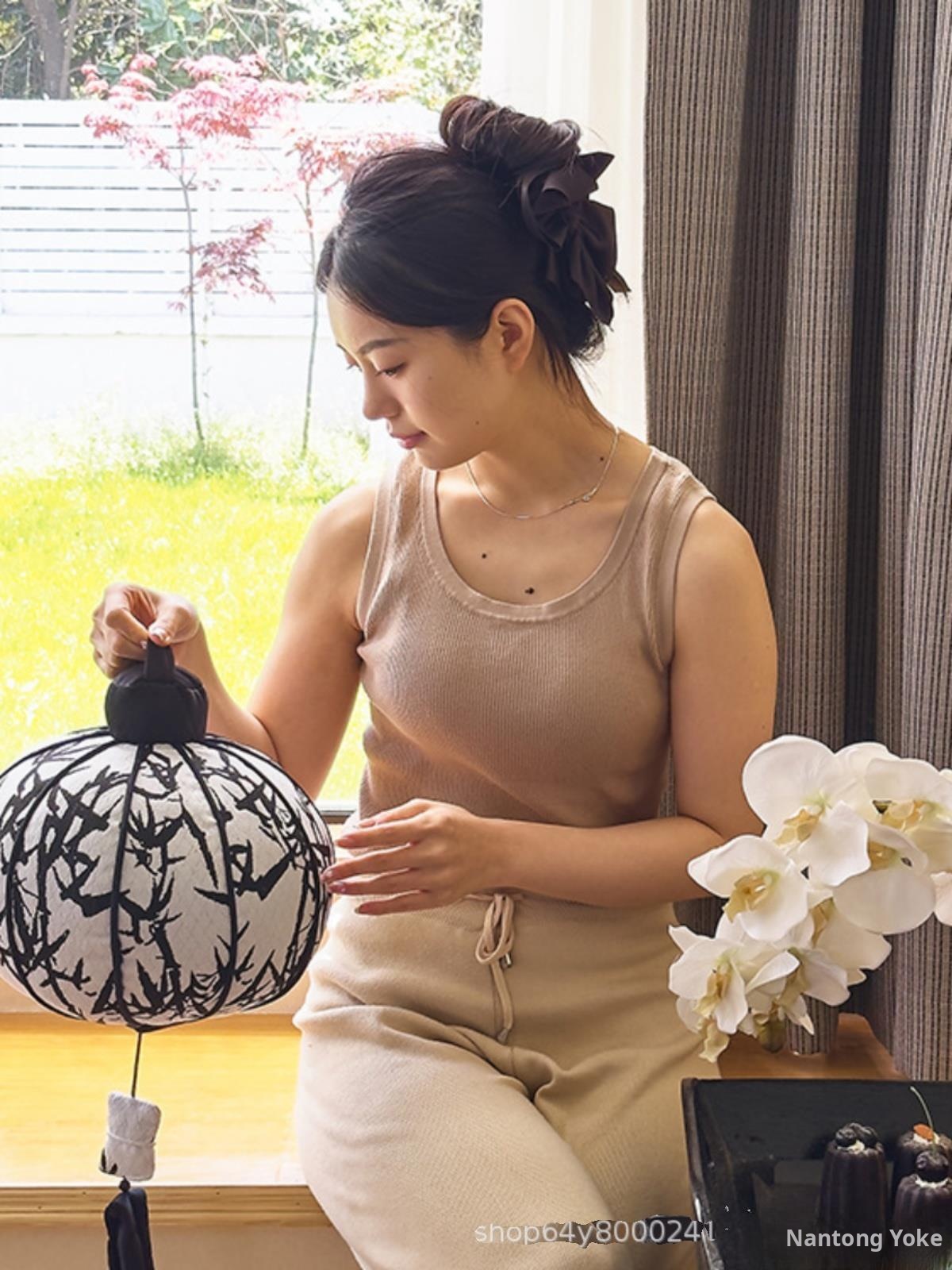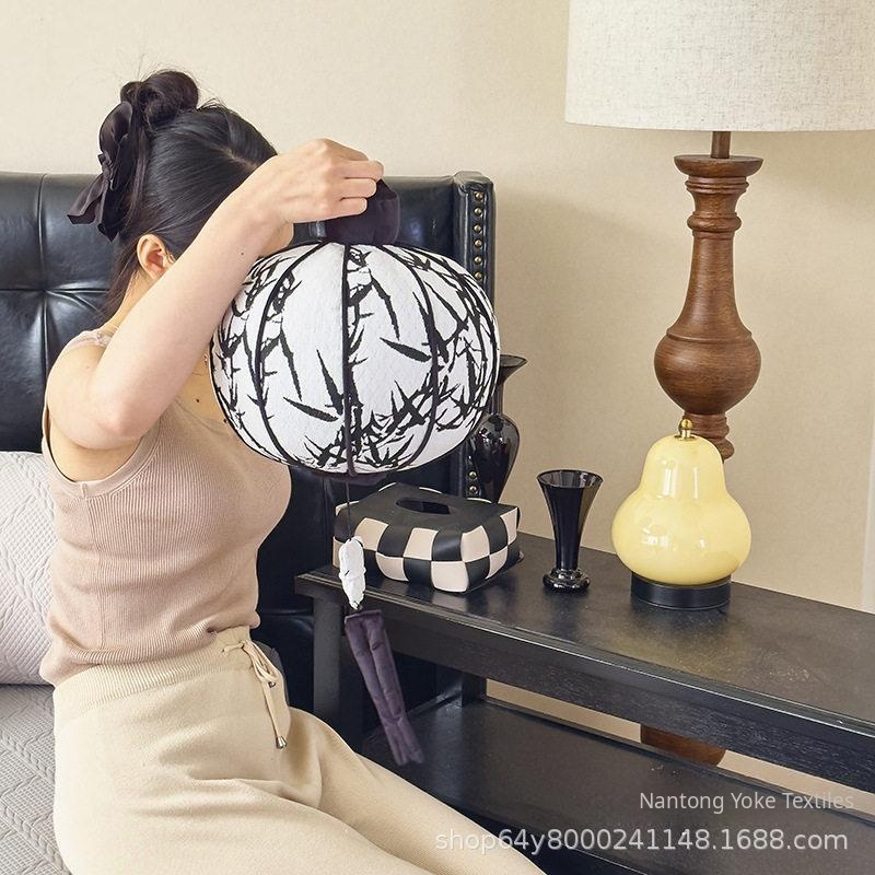 Creative Atmosphere Lantern High-End Throw Pillow - Unique Chinese Style Decorative Hanging Ornament for Living Room, Cylindrical Hand Pillow and Support Cushion