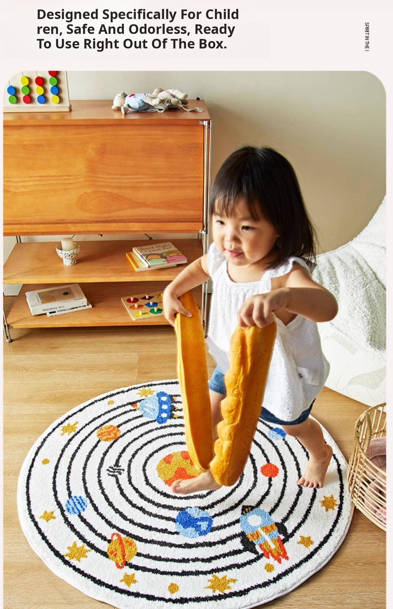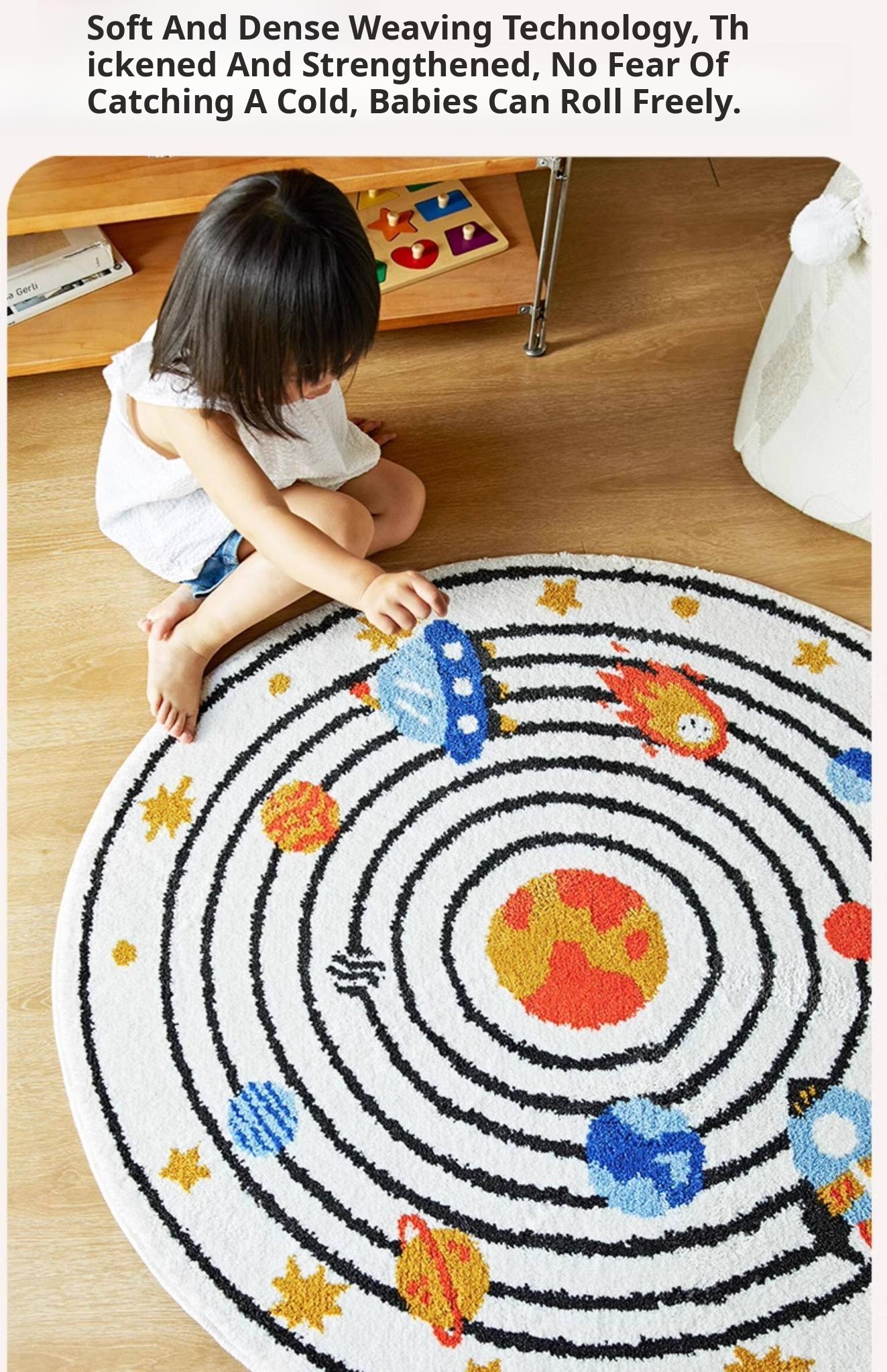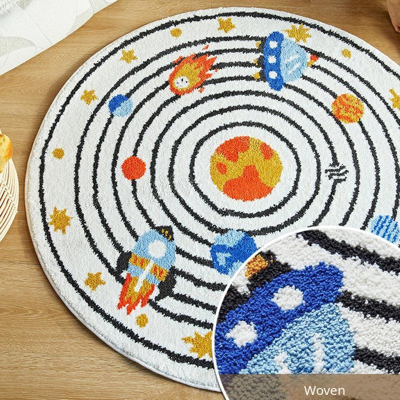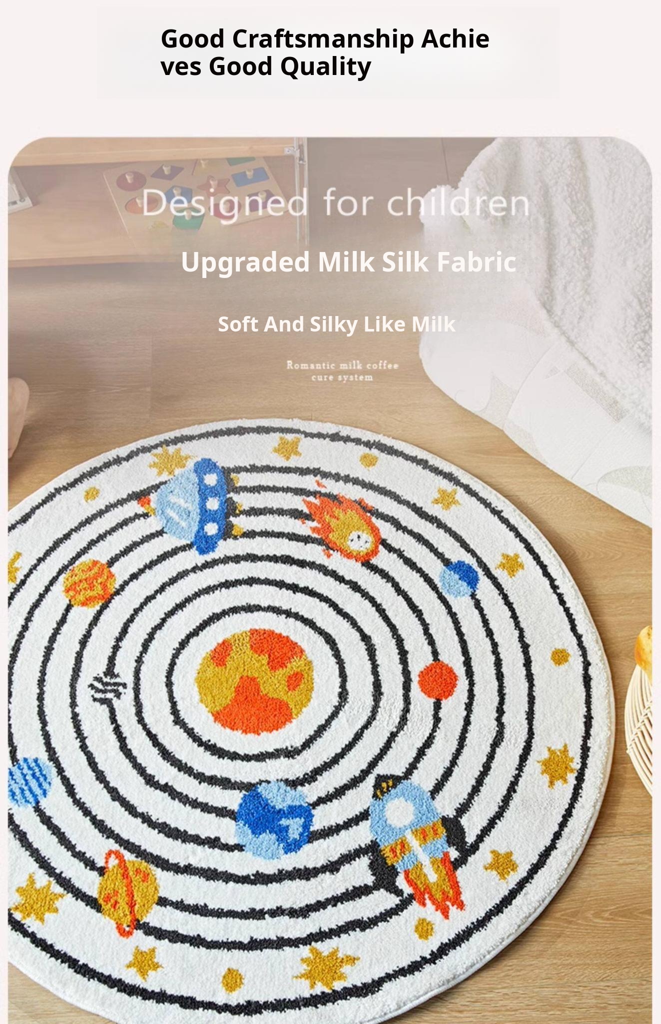 Cute Cartoon Round Rug - Thickened Milk Silk Children's Room Bedroom Reading Area Mat - Cozy Home Bedside Carpet