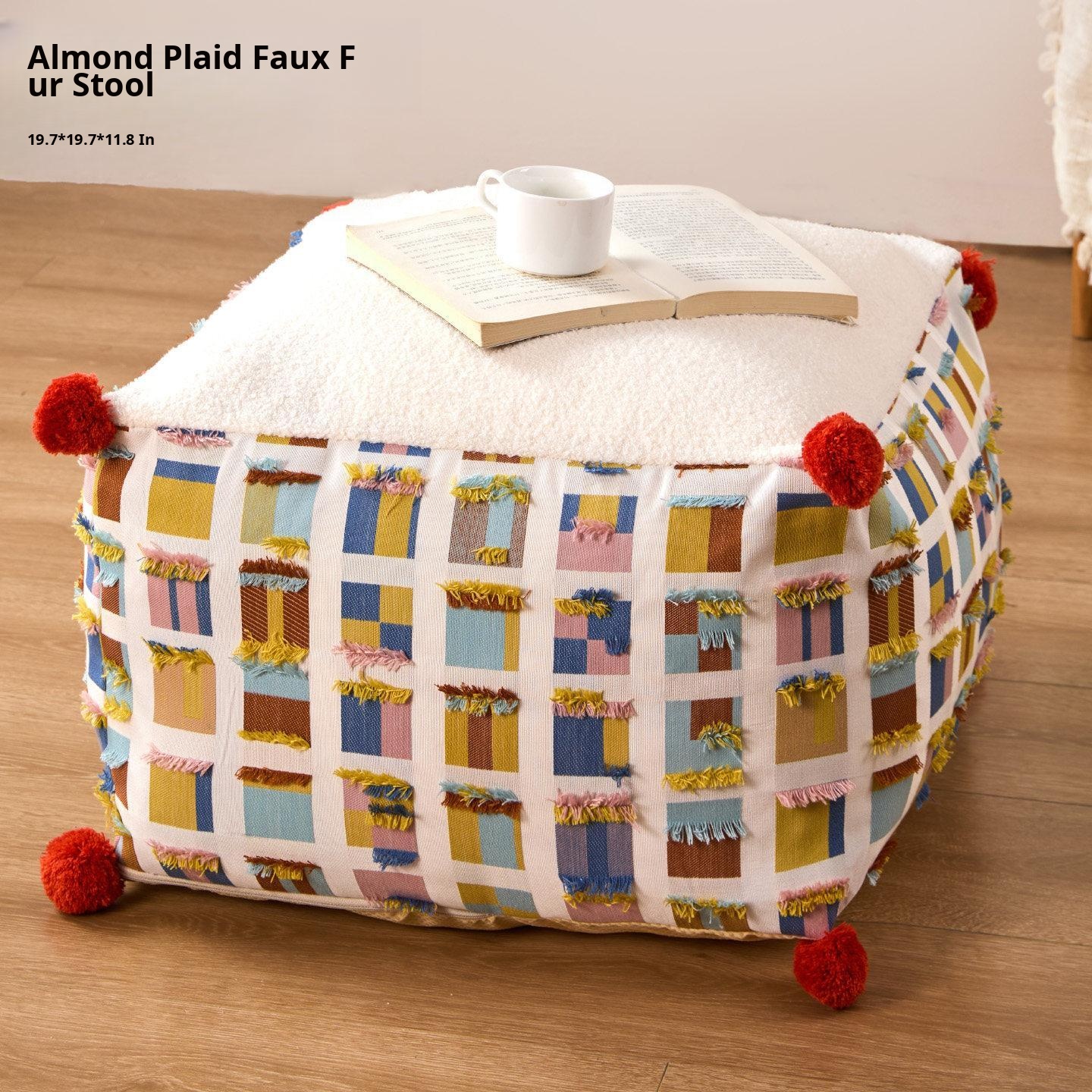 Almond plaid fur ball pouf