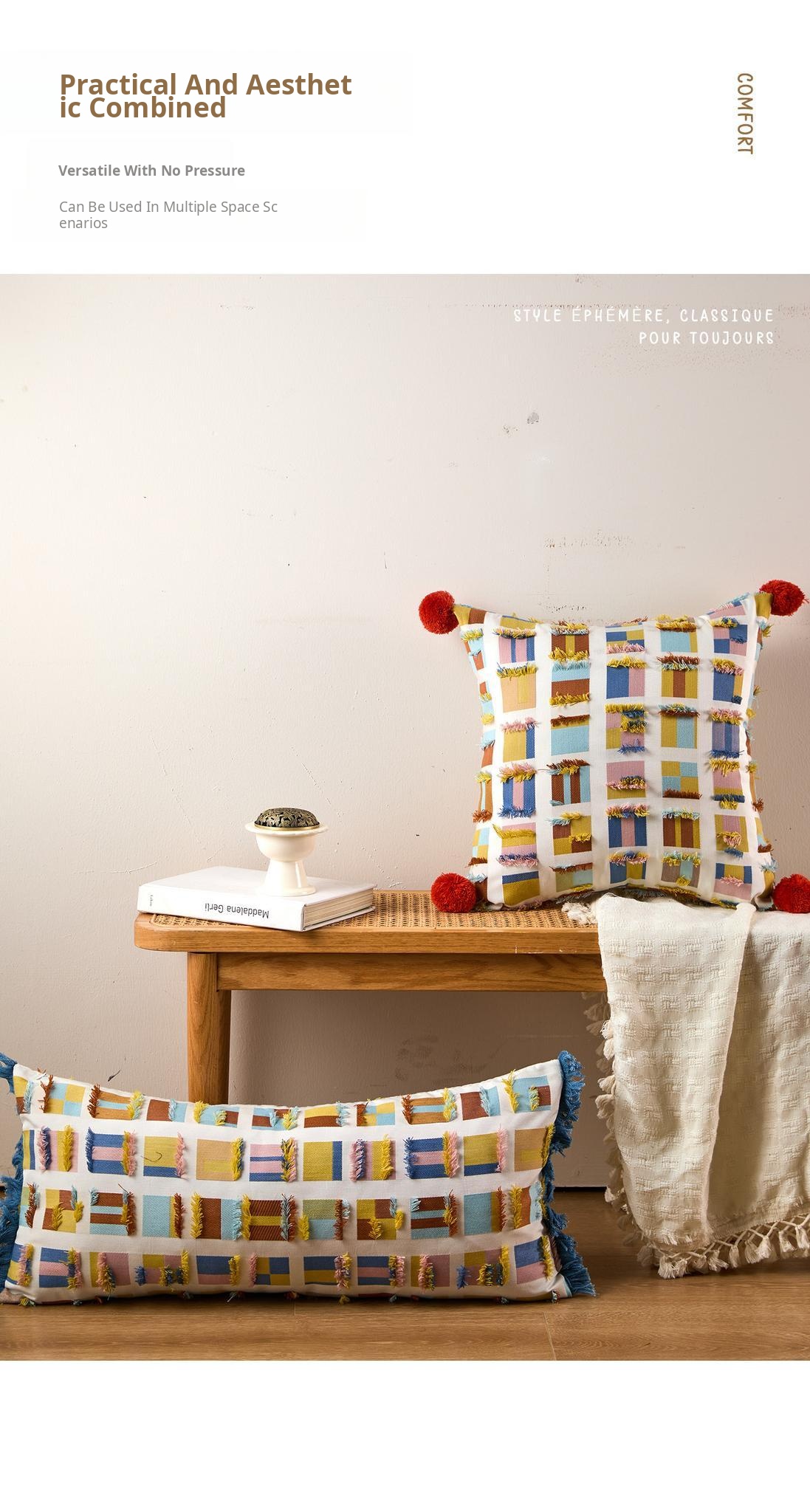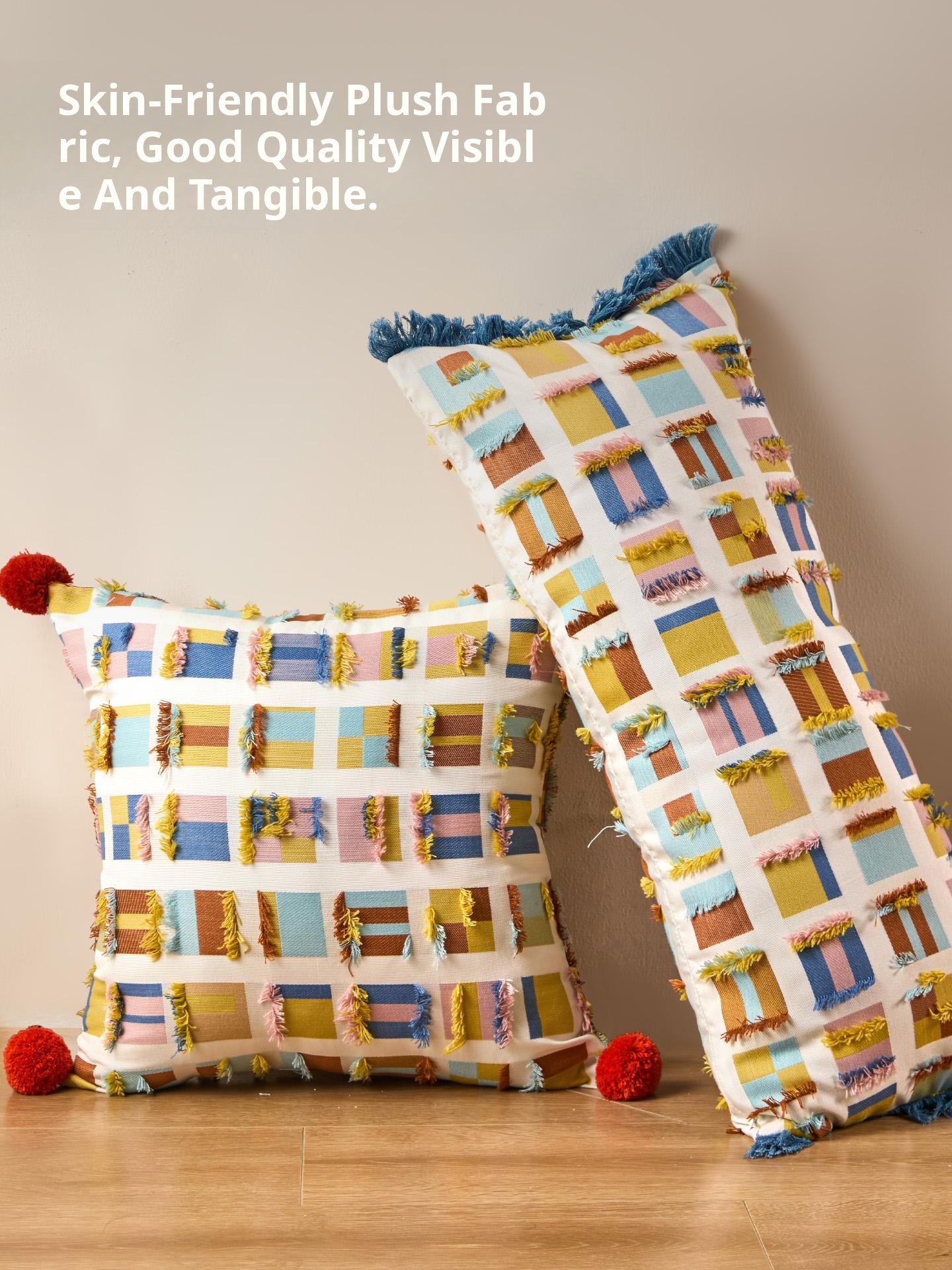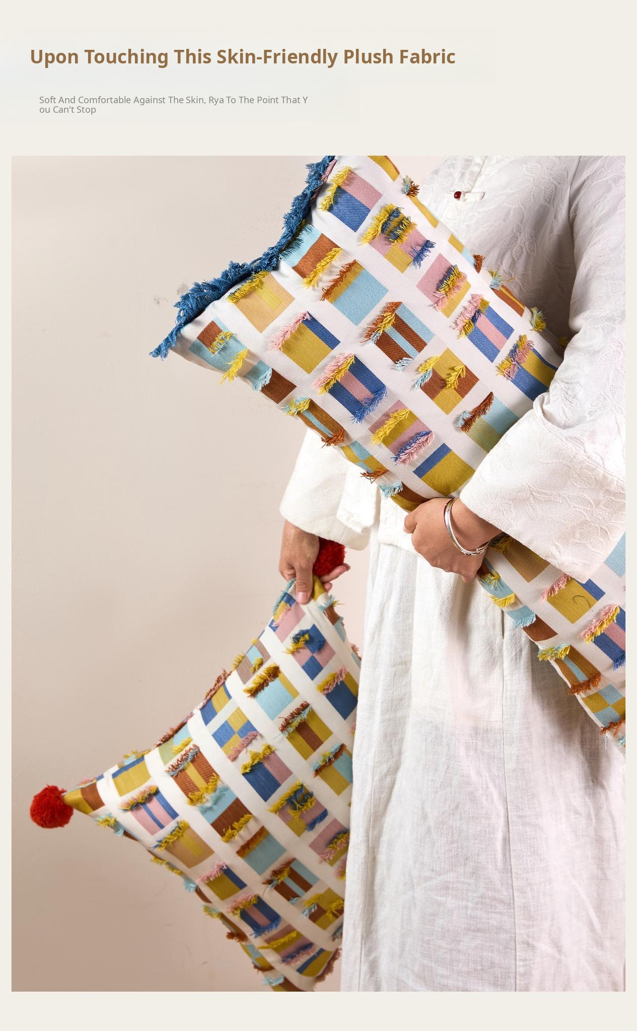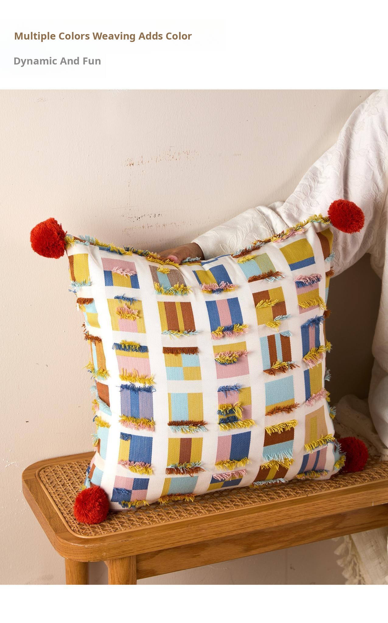 Almond plaid fur ball pillow