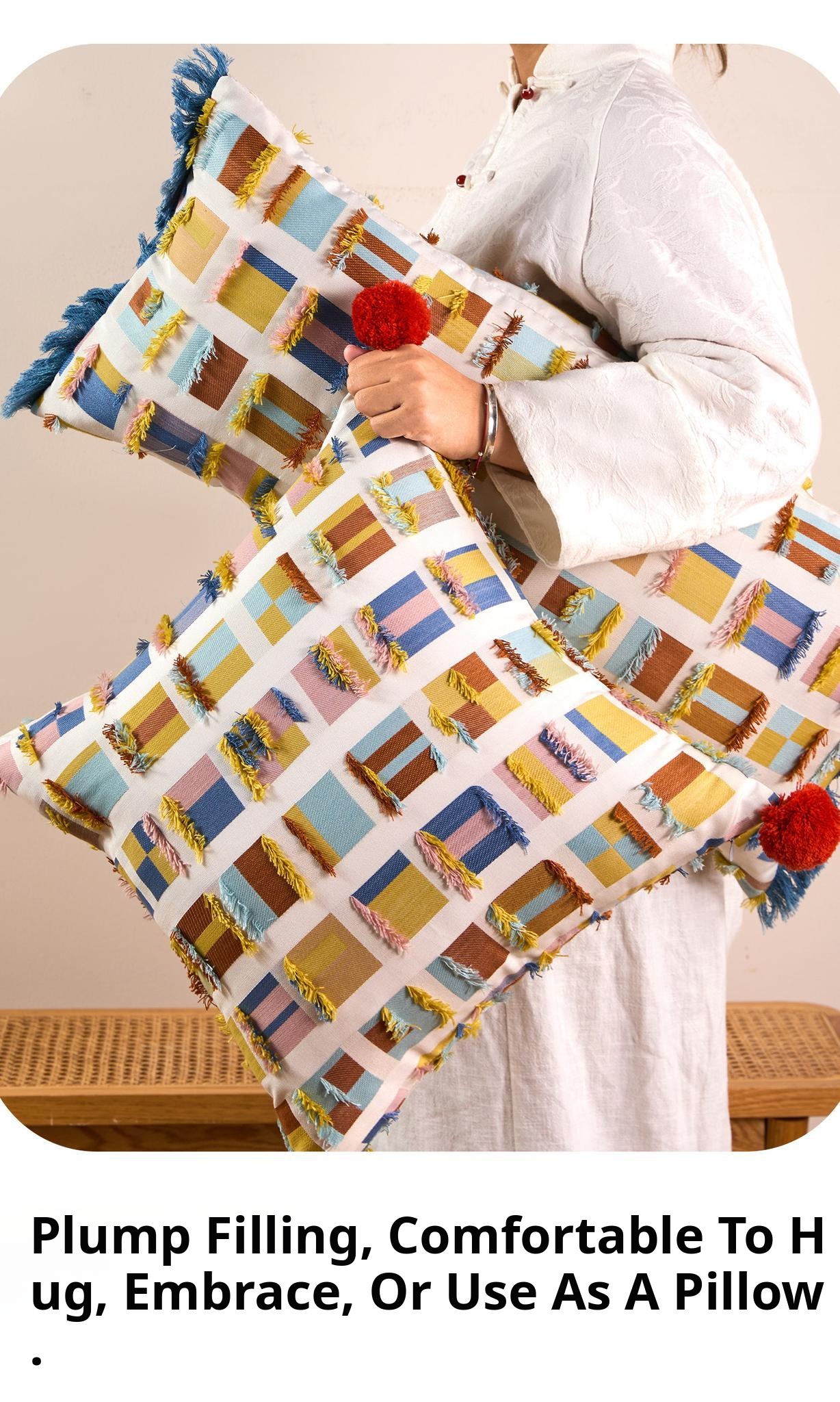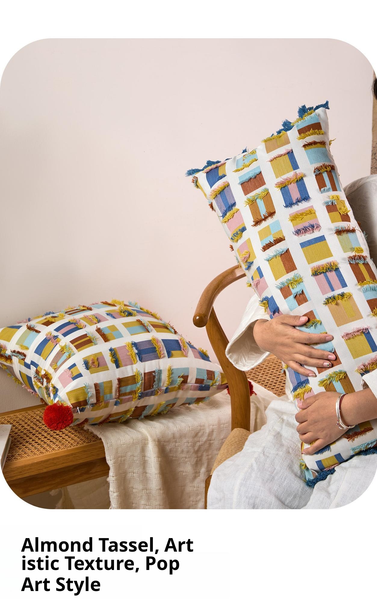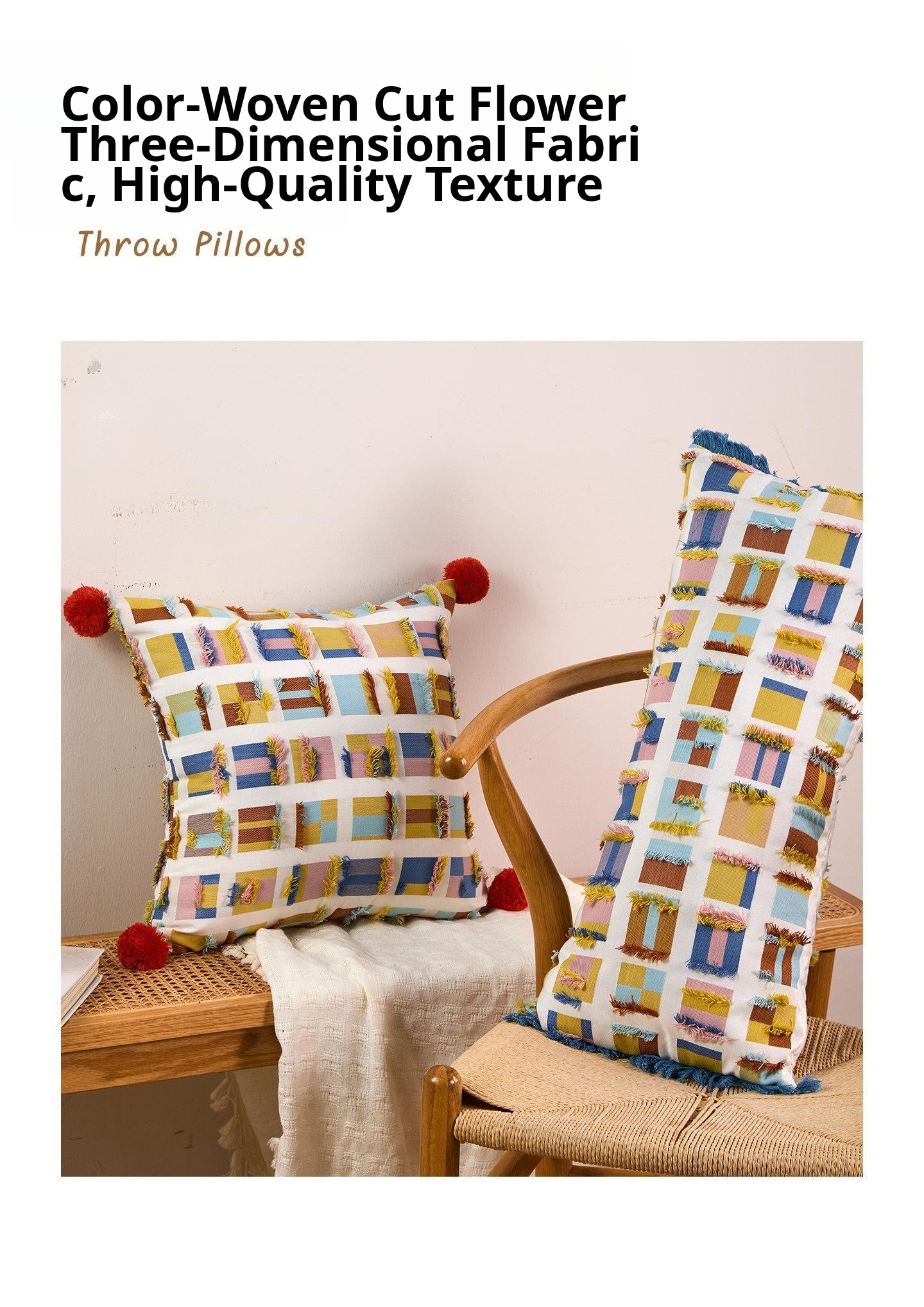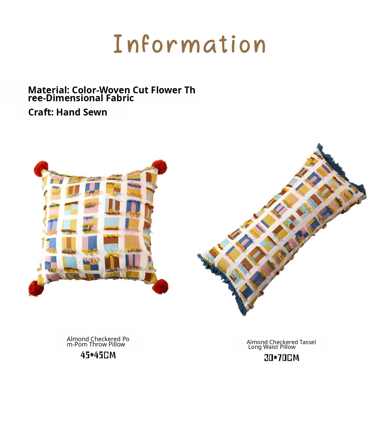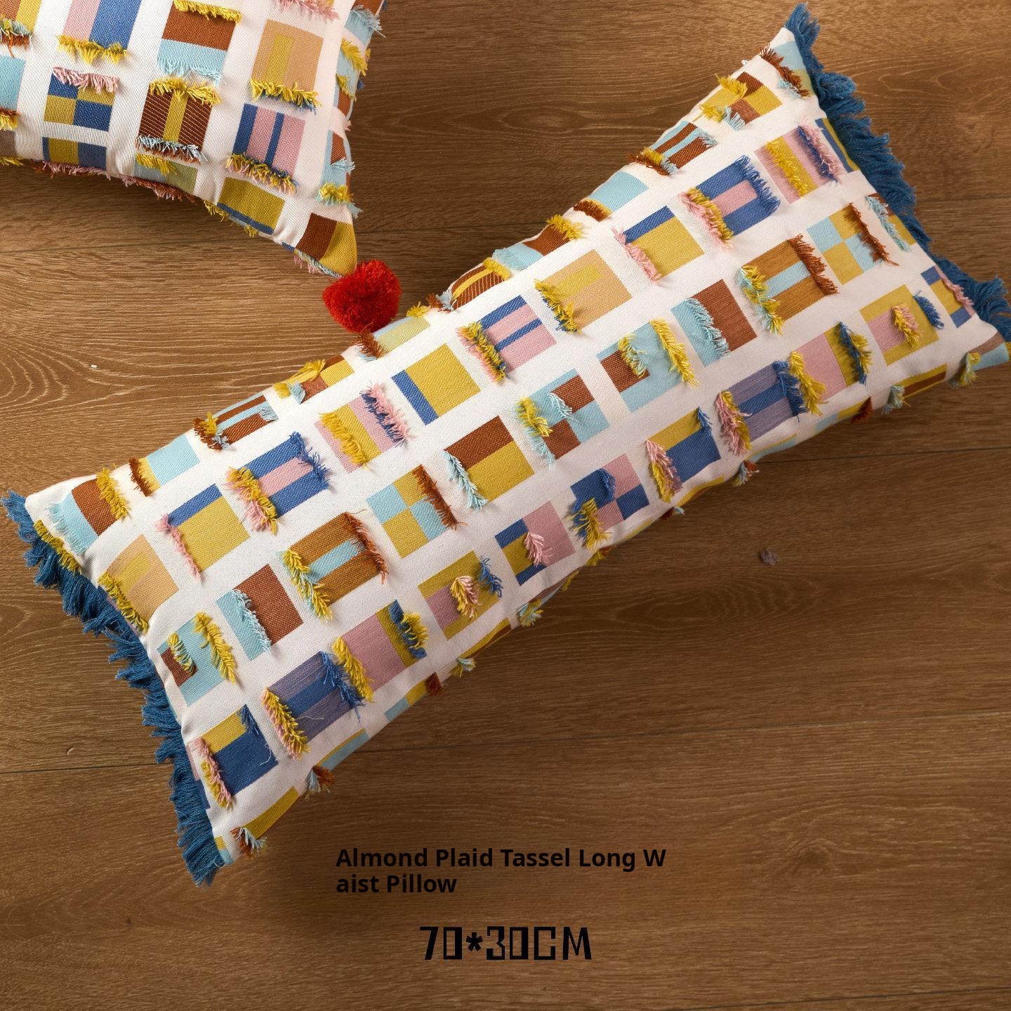 Almond plaid tassel long waist pillow