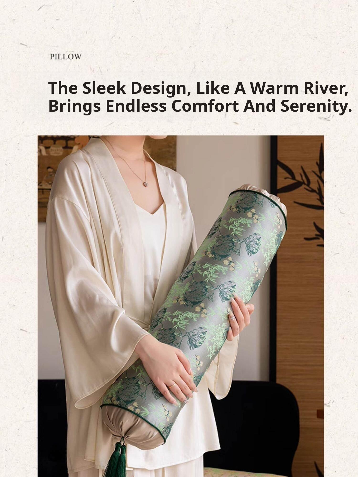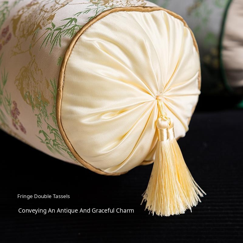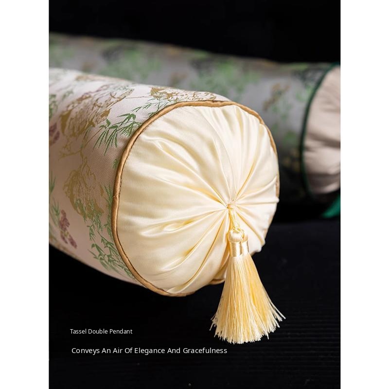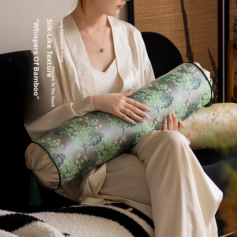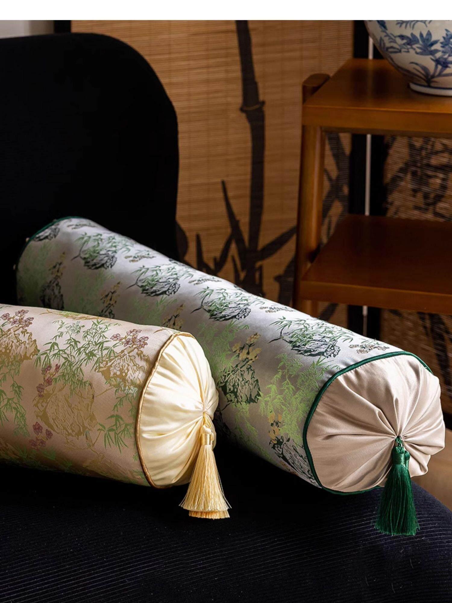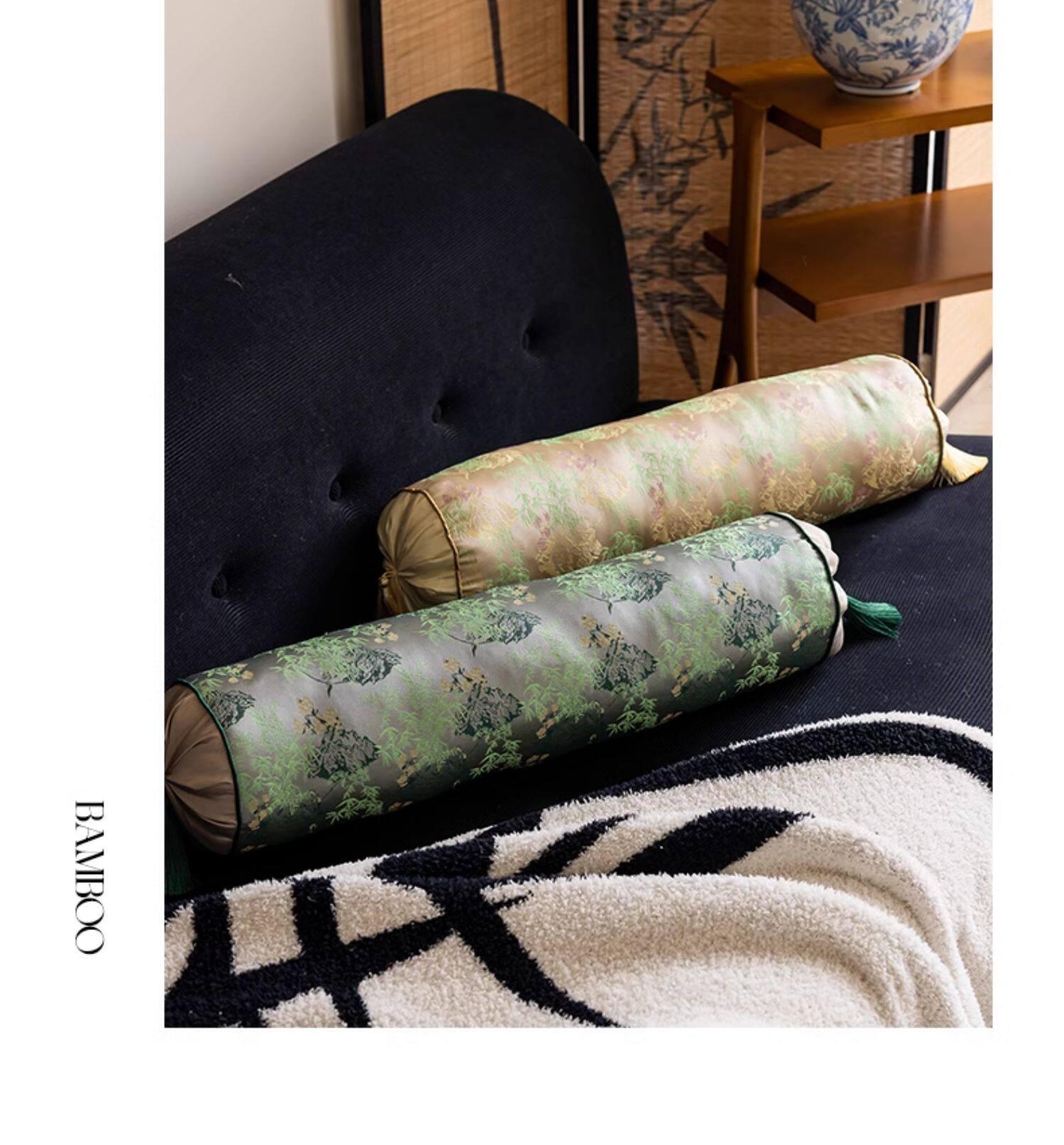 Elegant Chinese Style Round Pillows for Living Room - Luxury Long Cushion for Bedroom Headboard, Blending Modern Aesthetics with Traditional Charm, Perfect for a Chic Decor Upgrade.