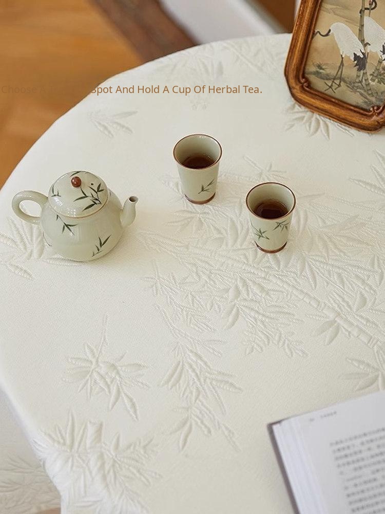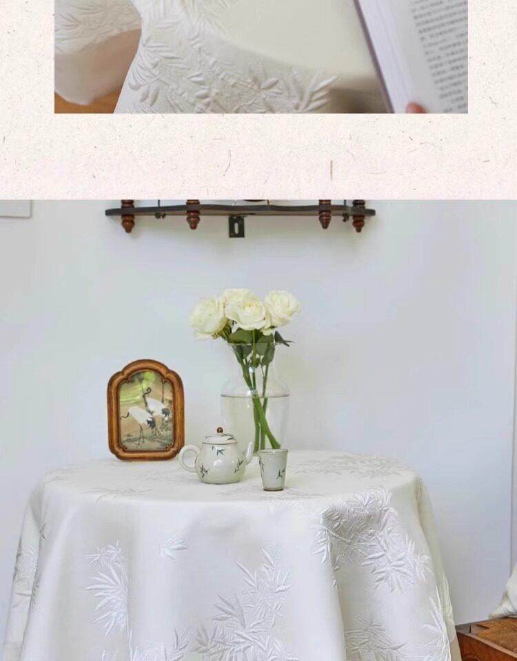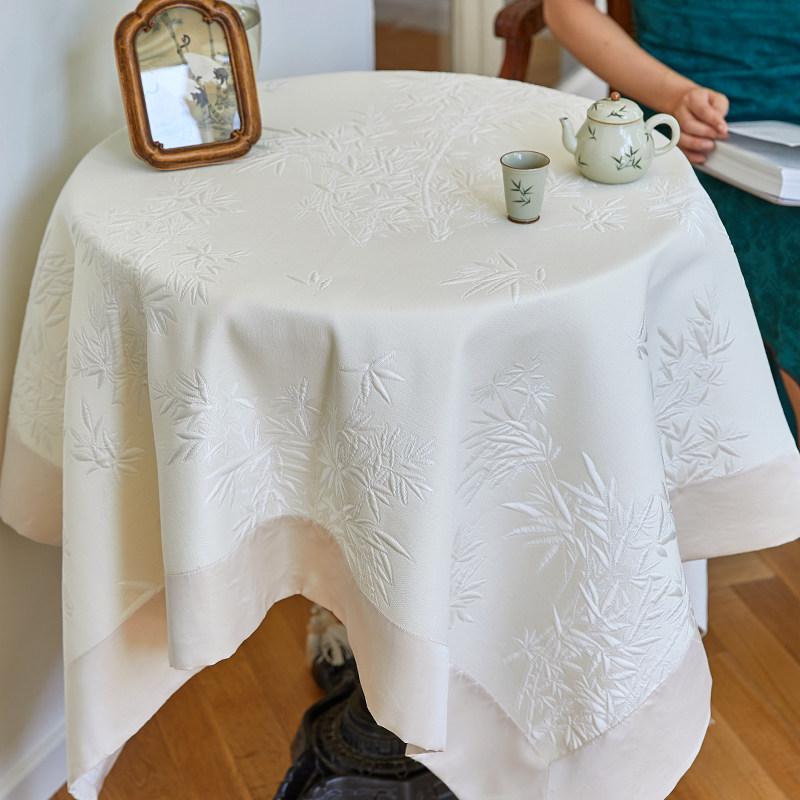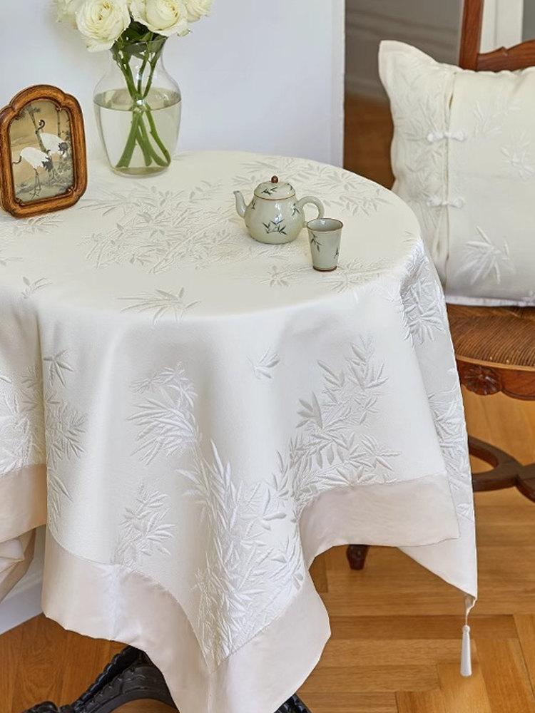 Elegant Chinese Style Solid Color Bamboo Tablecloth - Luxurious High-End Rectangular Fabric Cover for Dining Table and Coffee Table