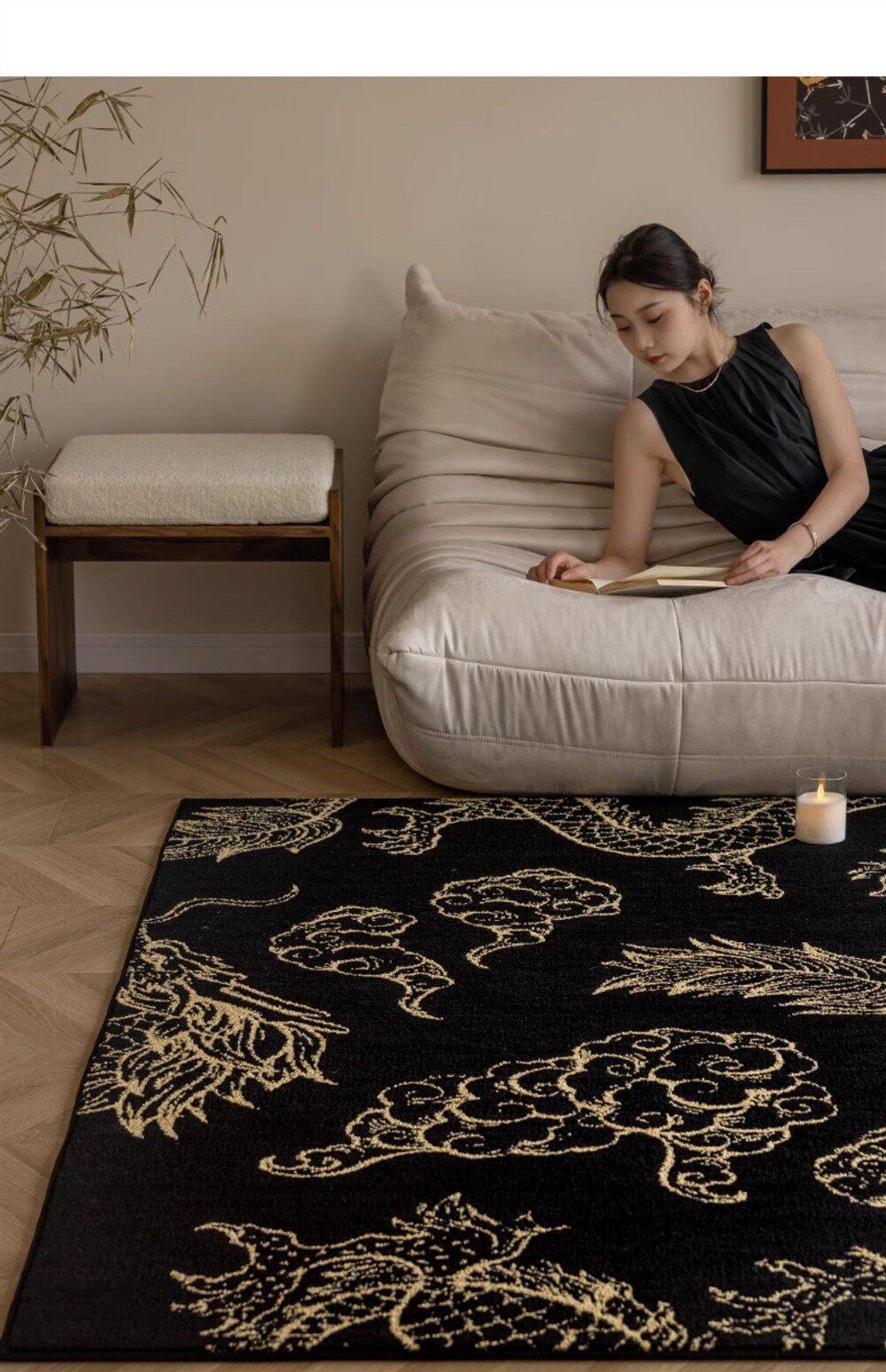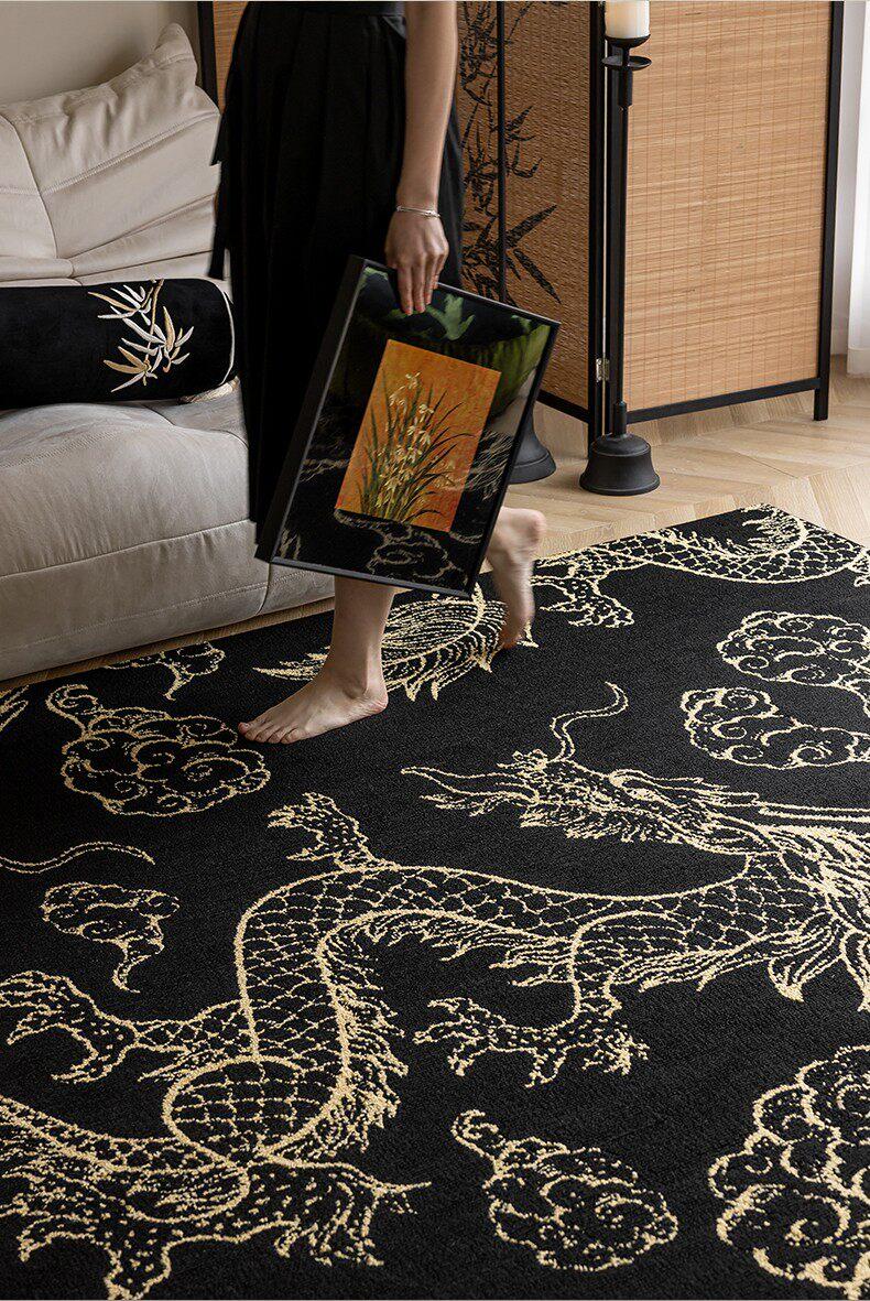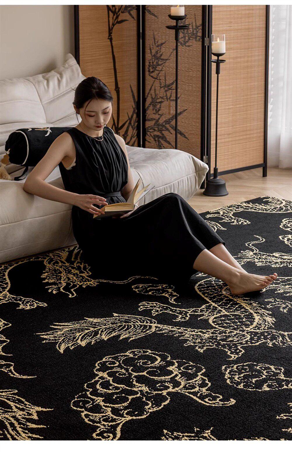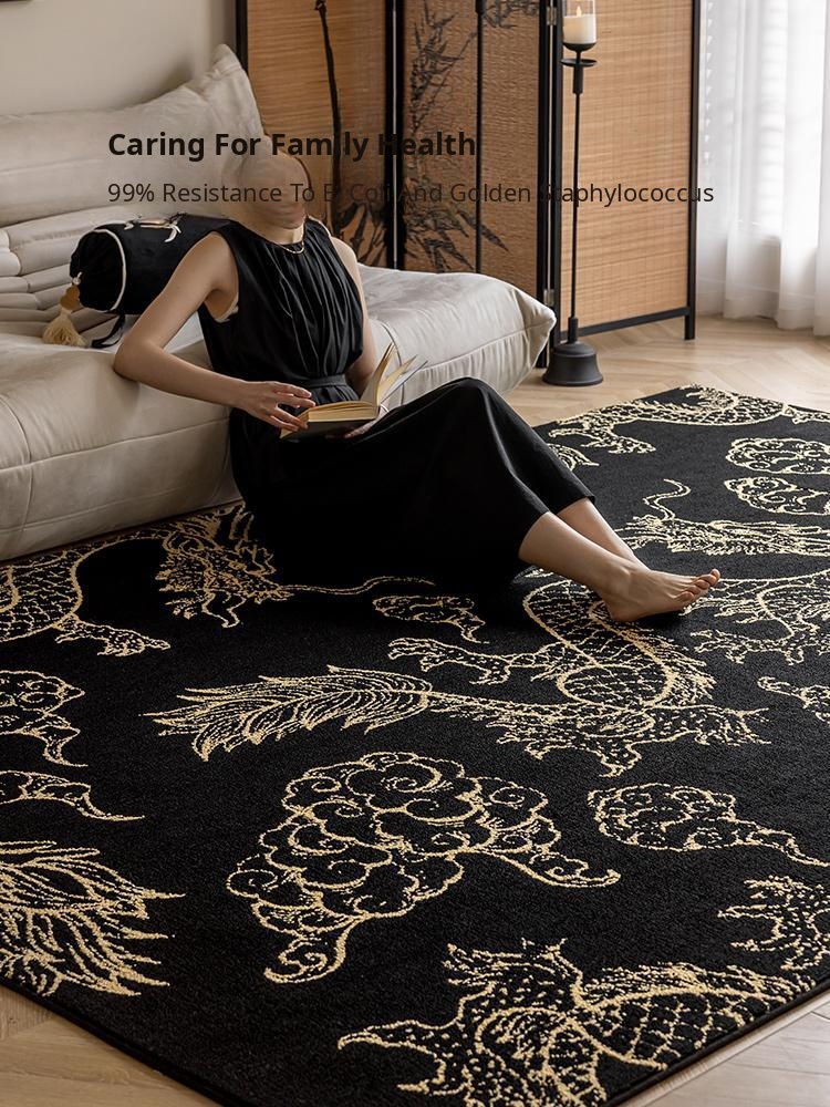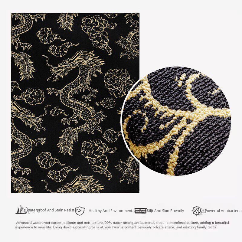 Elegant Chinese-Style Black and Gold Area Rug for Living Room - Luxurious Waterproof and Stain-Resistant Blanket for Bedroom, Study, and Sofa - No Maintenance Needed!