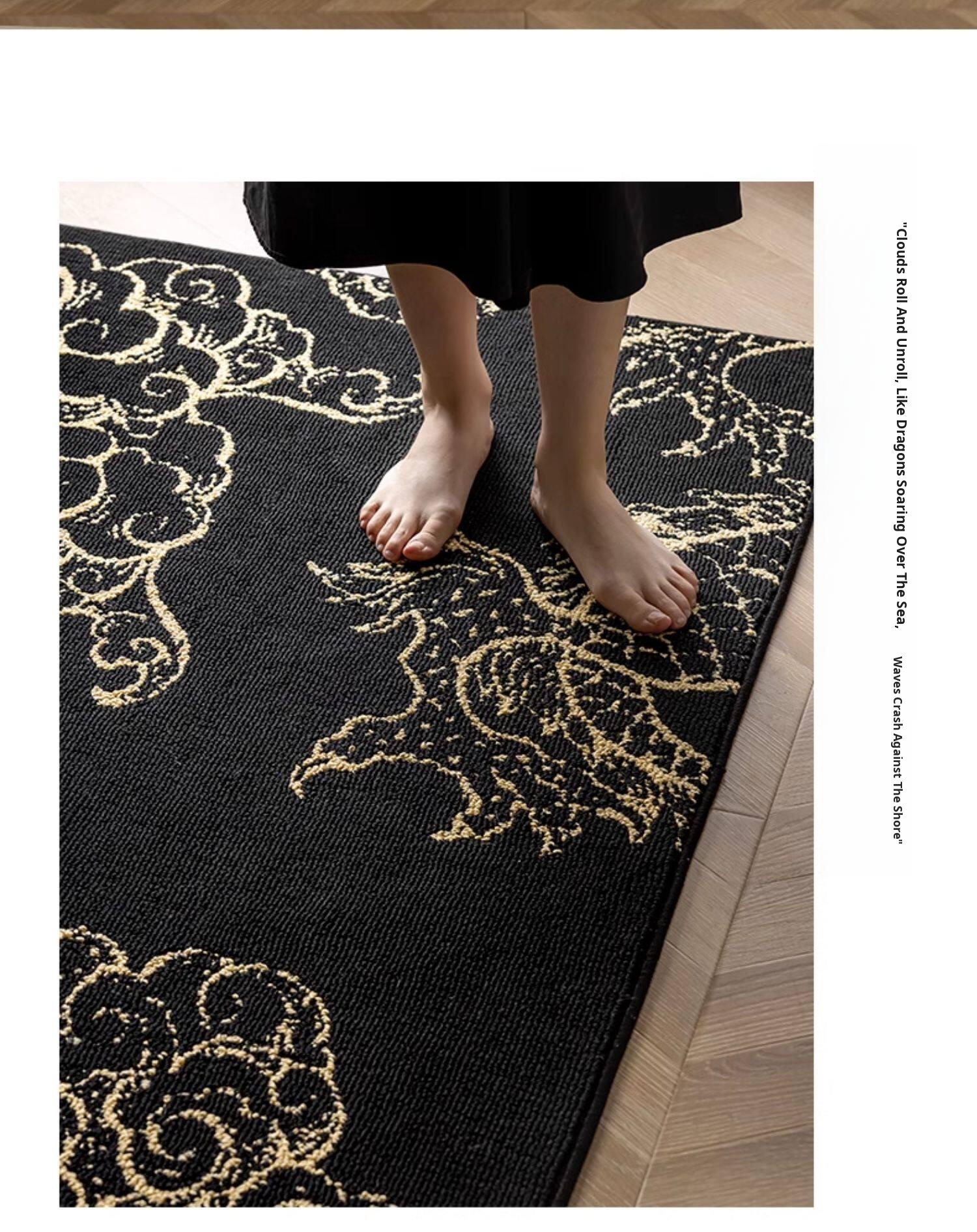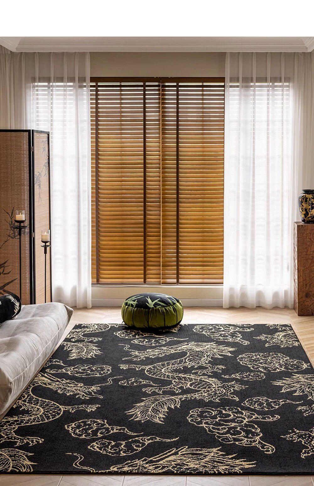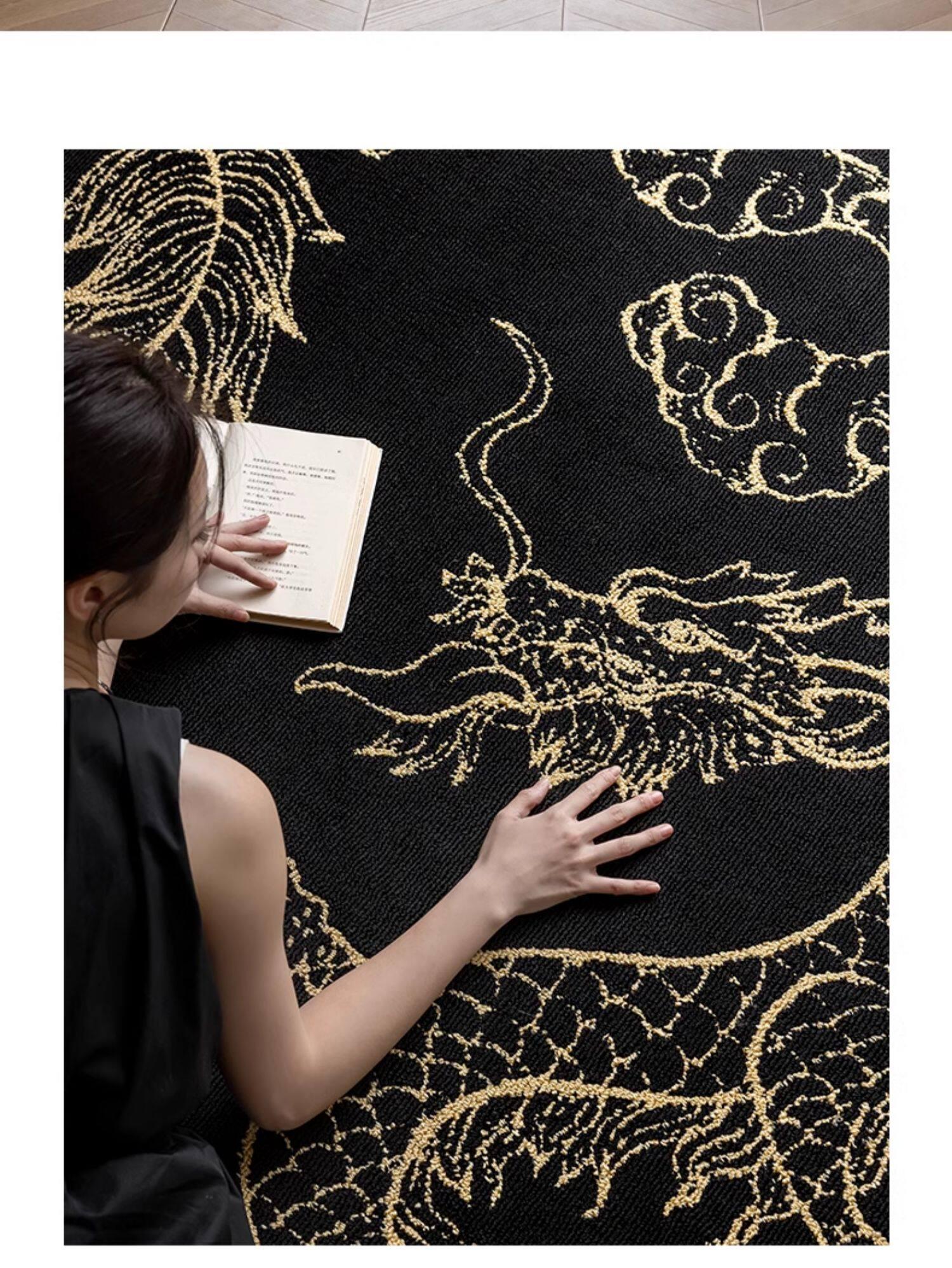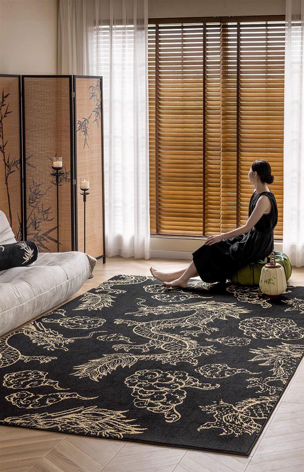 Elegant Chinese-Style Black and Gold Area Rug for Living Room - Luxurious Waterproof and Stain-Resistant Blanket for Bedroom, Study, and Sofa - No Maintenance Needed!