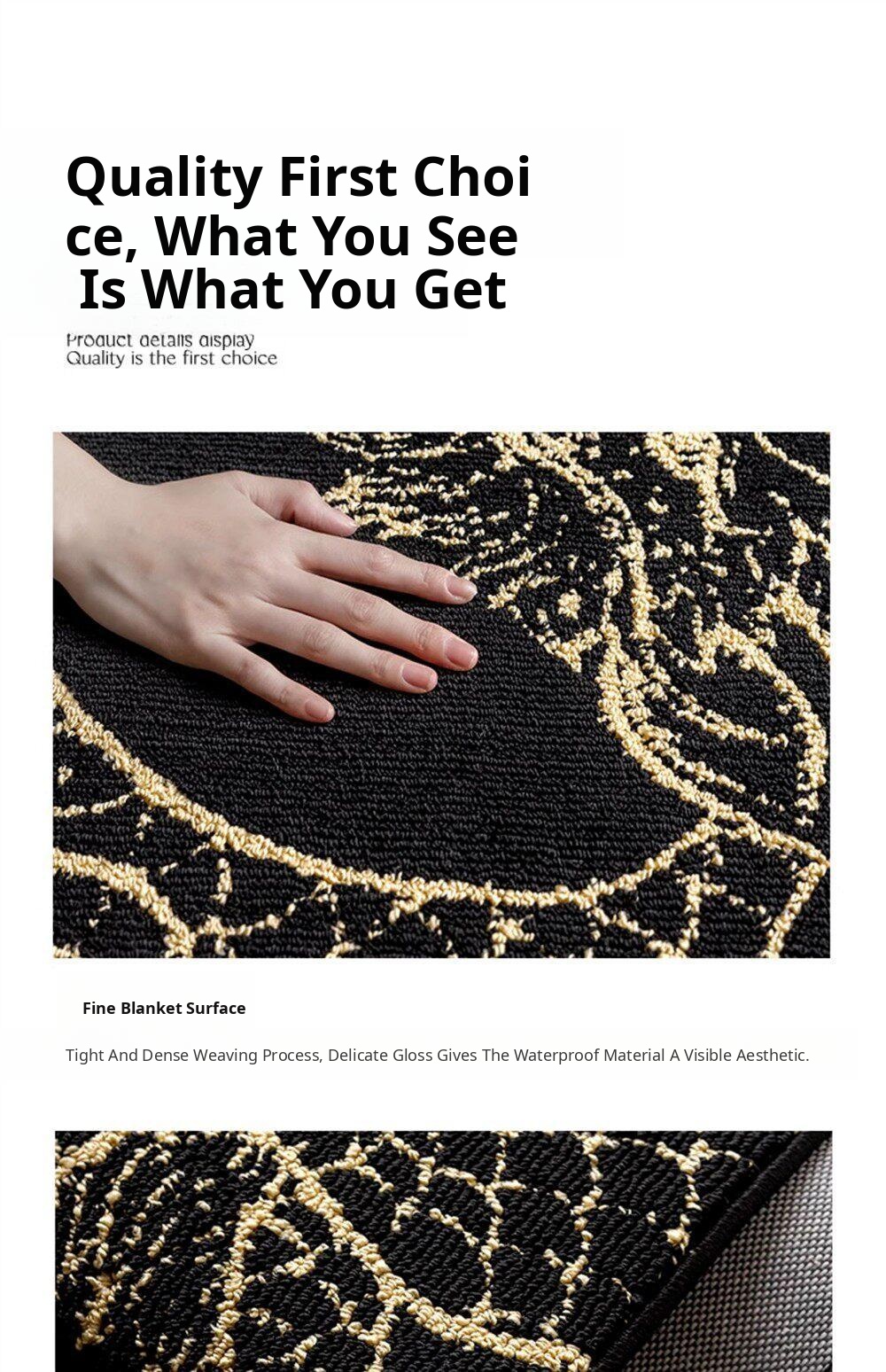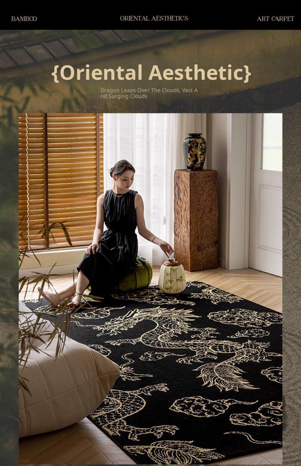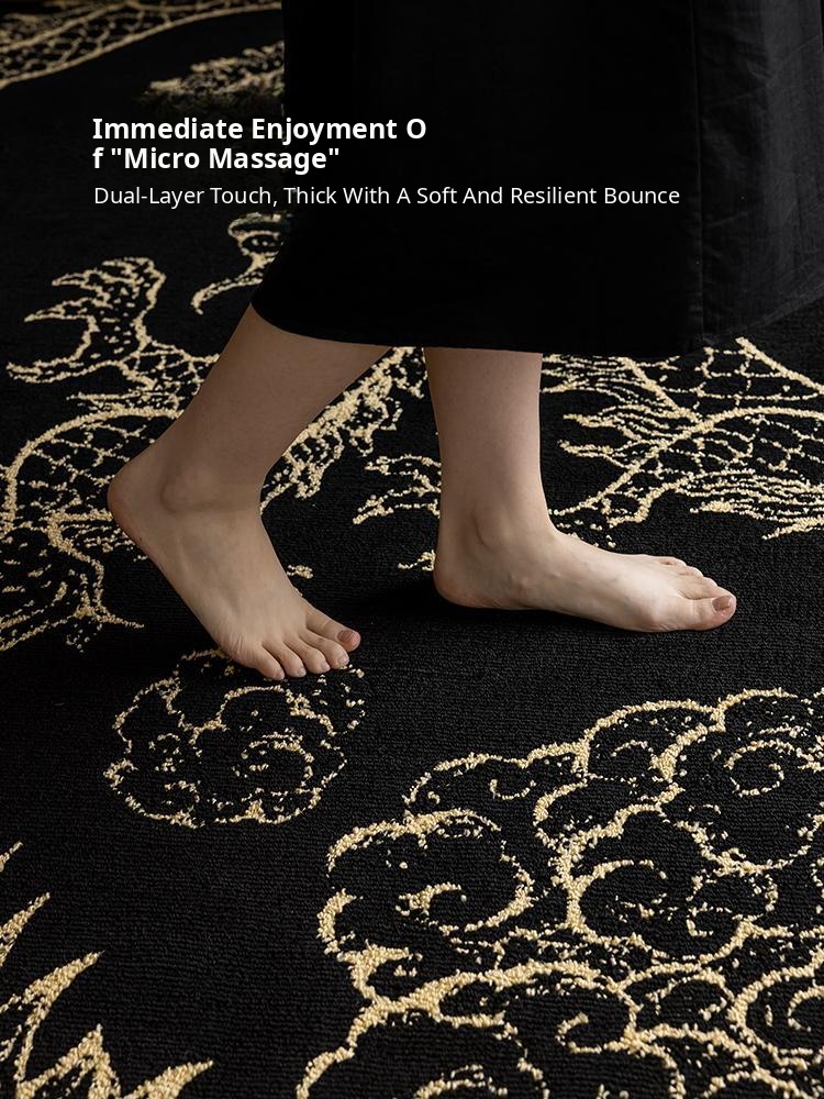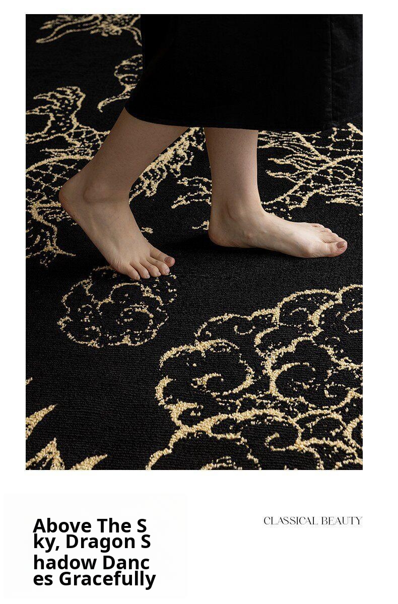 Elegant Chinese-Style Black and Gold Area Rug for Living Room - Luxurious Waterproof and Stain-Resistant Blanket for Bedroom, Study, and Sofa - No Maintenance Needed!