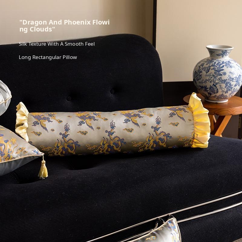 Elegant Chinese-Style Long Lumbar Pillow for Bedroom Headboard – Premium Quality Sofa Backrest Cushion for Living Room, Perfect for a Luxurious Touch to Your Space.