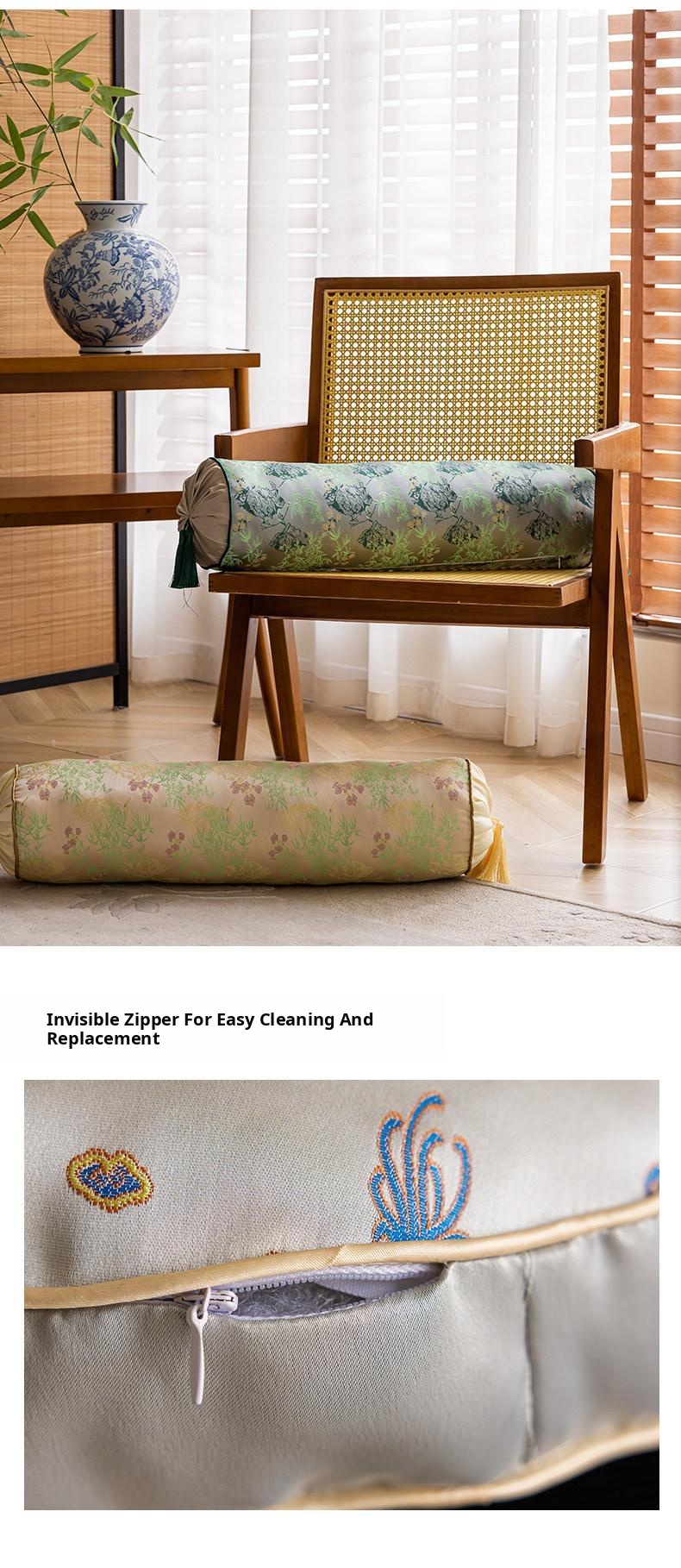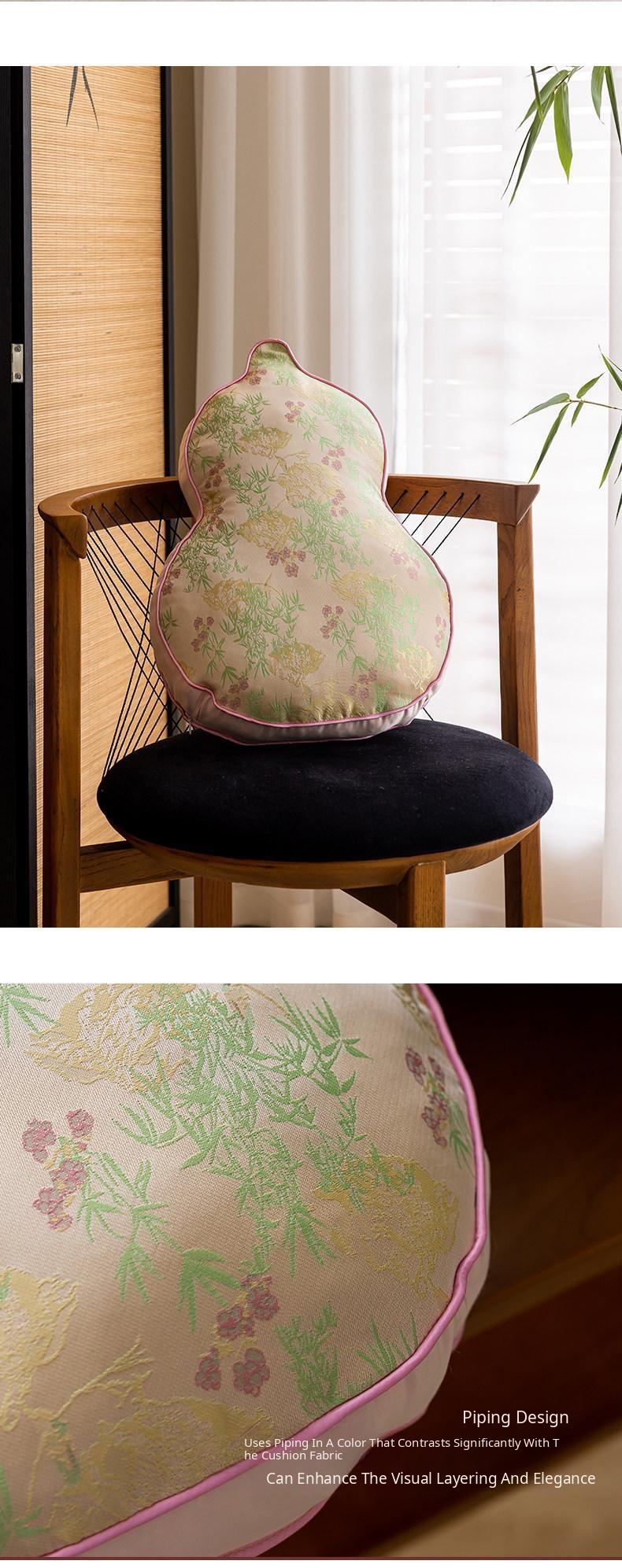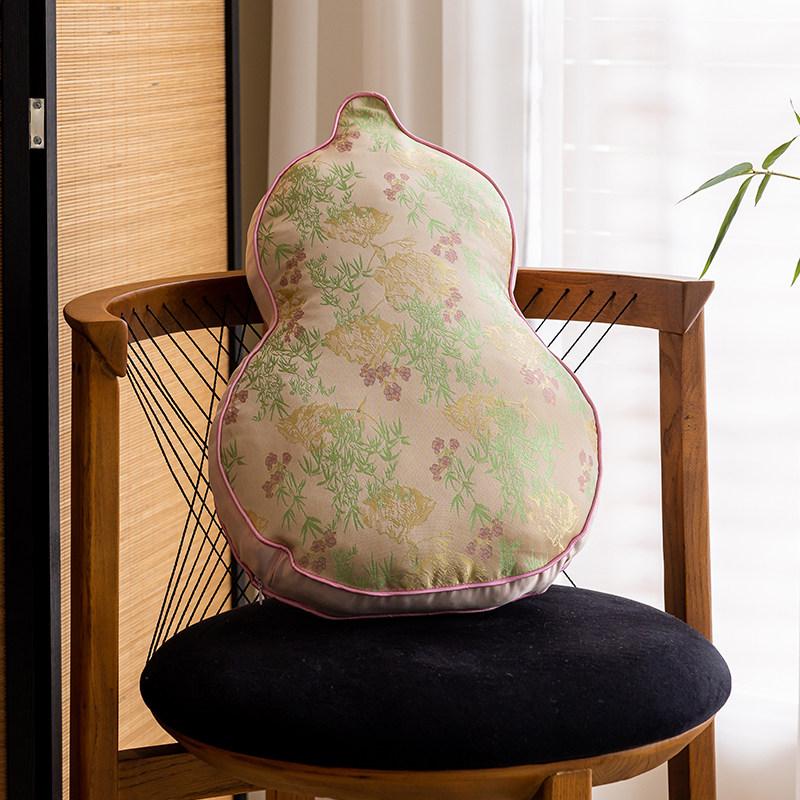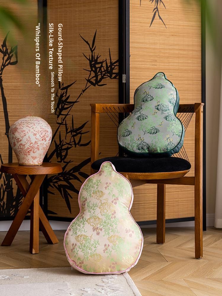 Elegant Chinese-Style Throw Pillow for Living Room - Unique Gourd-Shaped Cylindrical Cushion, Luxurious Supportive Lumbar Pillow for Sofa Decor