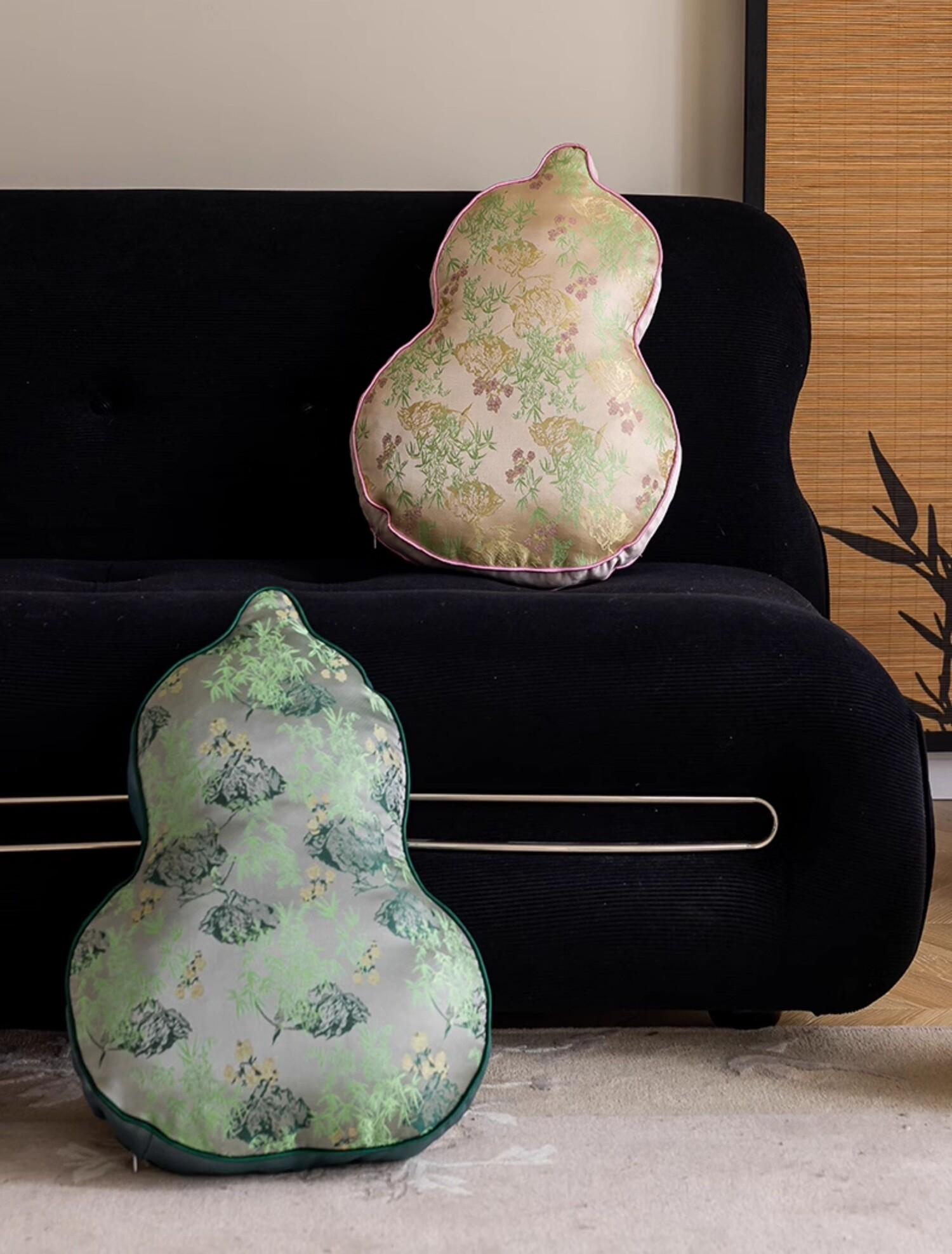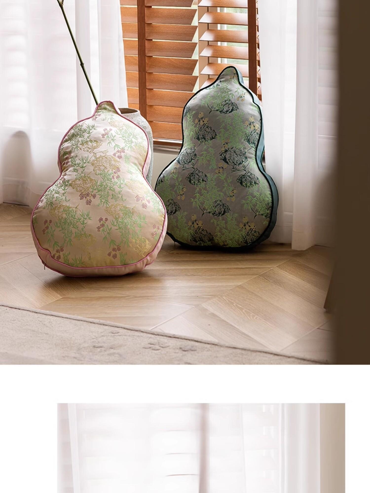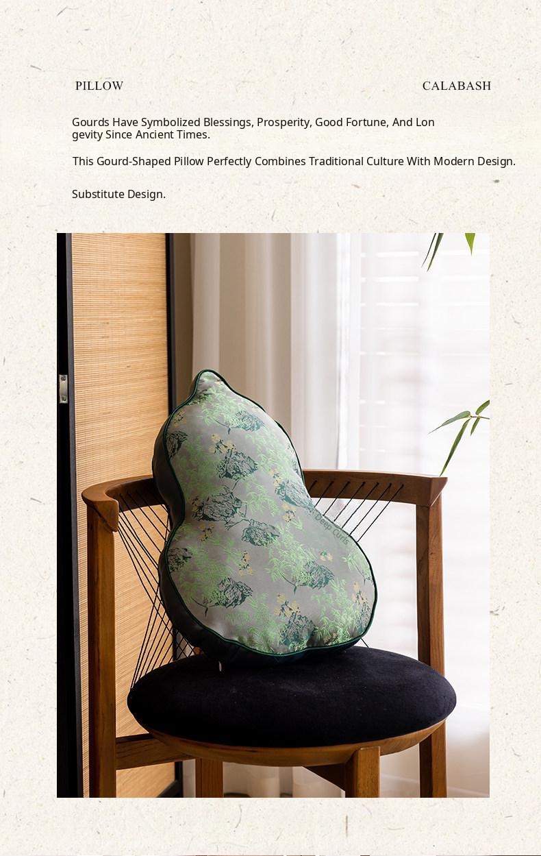 Elegant Chinese-Style Throw Pillow for Living Room - Unique Gourd-Shaped Cylindrical Cushion, Luxurious Supportive Lumbar Pillow for Sofa Decor