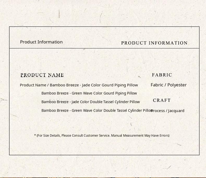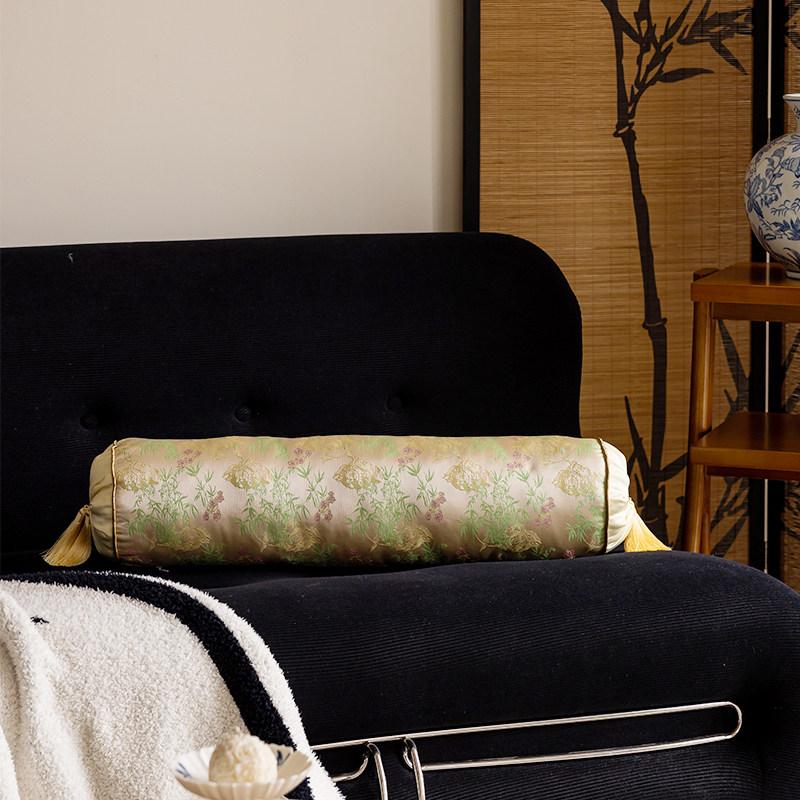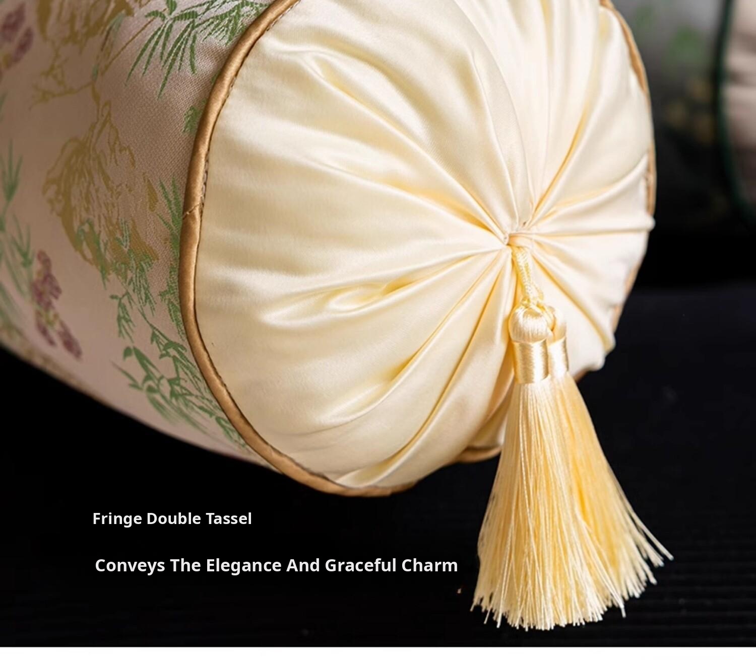 Bamboo and Wind Jade Color Double Hanging Tassel Cylindrical Pillow