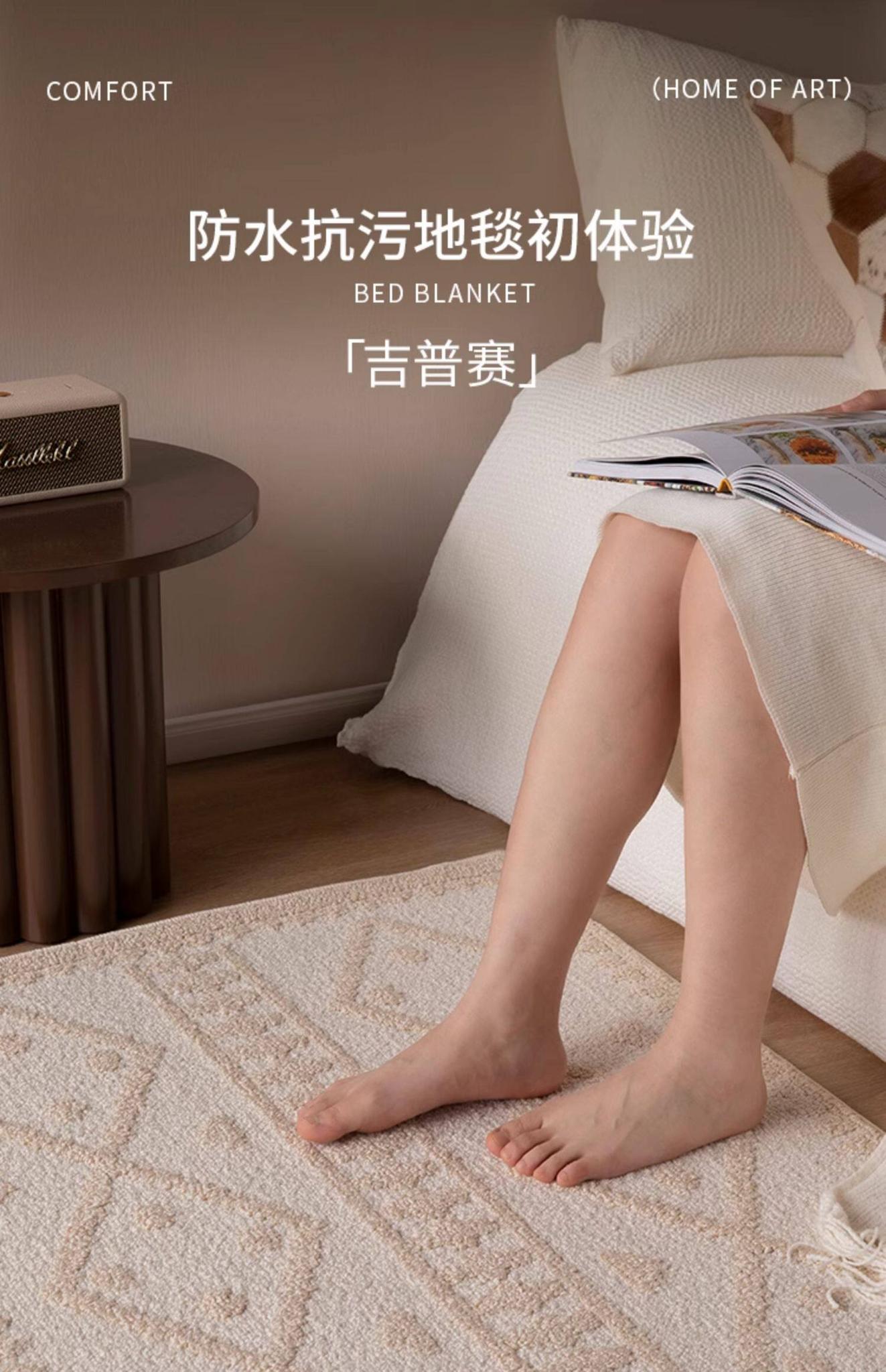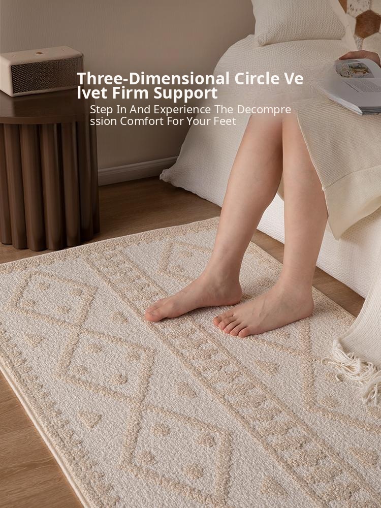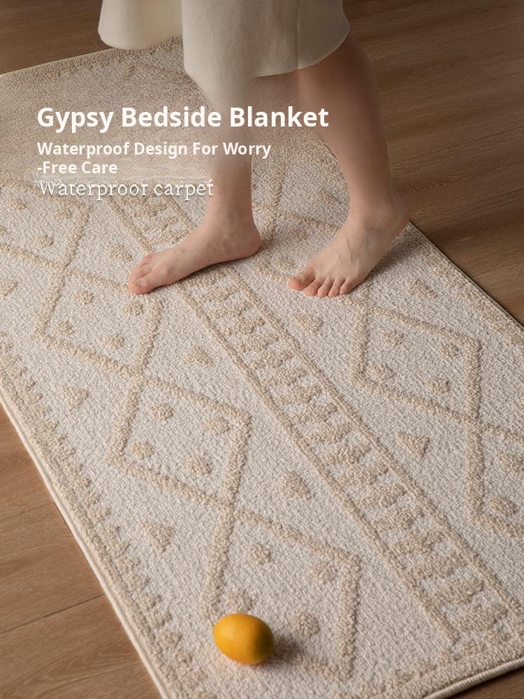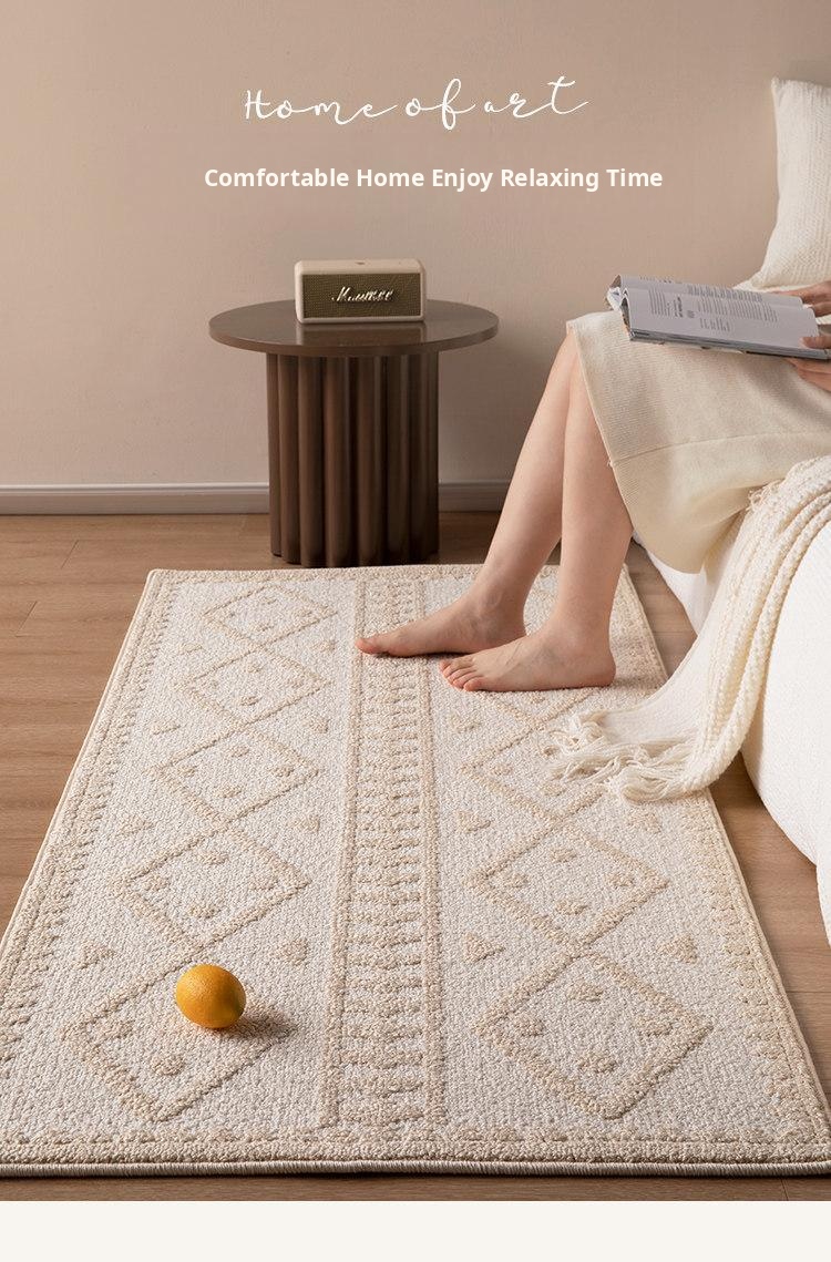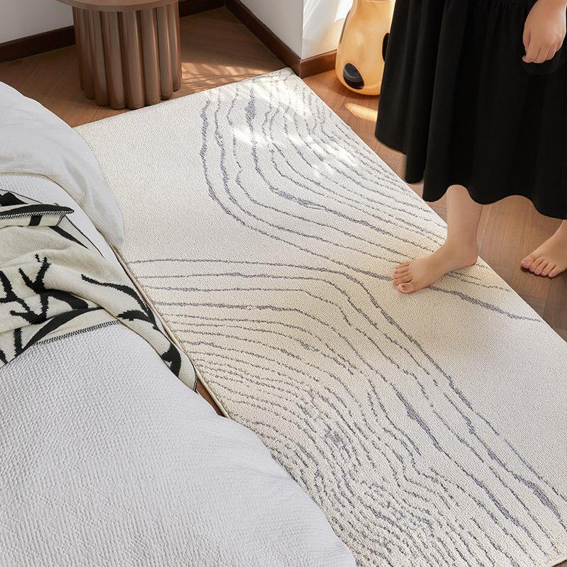 Elegant French-Inspired Area Rug - Minimalist Cream Sofa Throw Blanket, Waterproof and Stain-Resistant, Antibacterial Bedroom Mat for Bedside Use