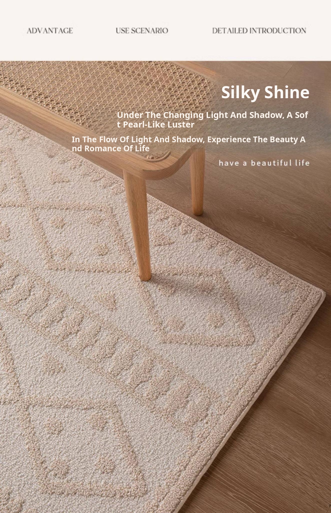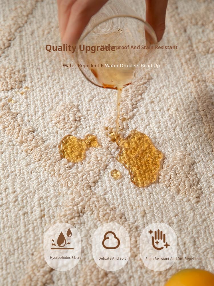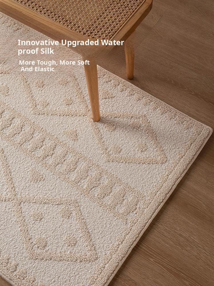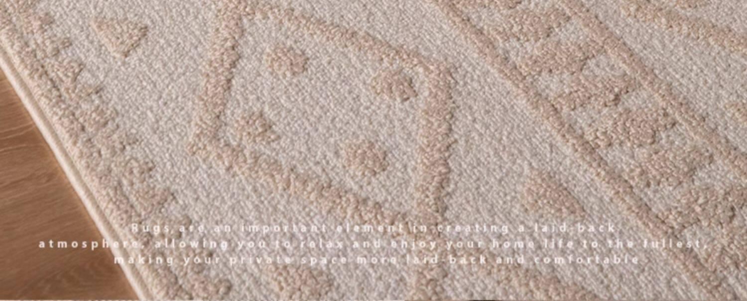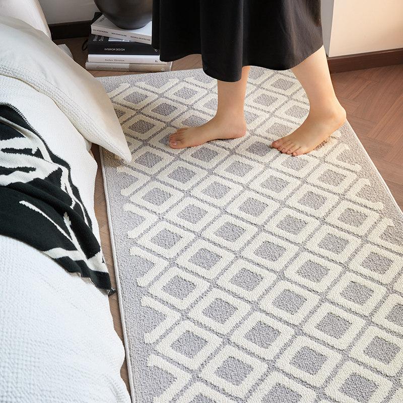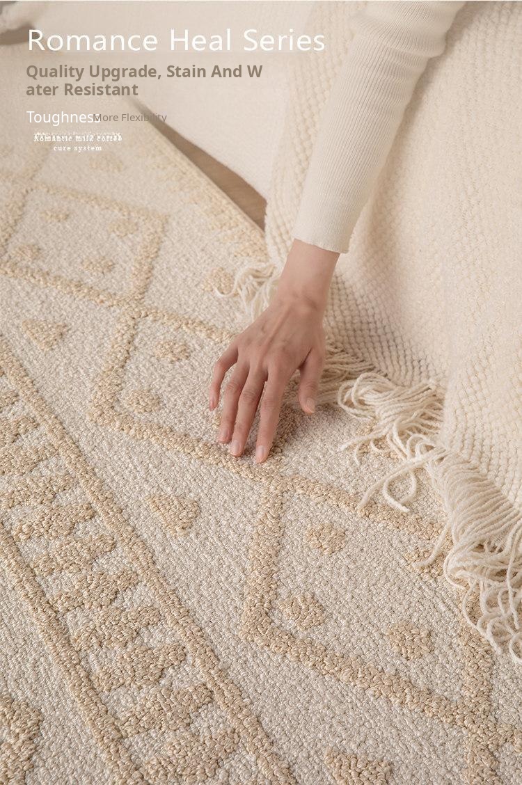 Elegant French-Inspired Area Rug - Minimalist Cream Sofa Throw Blanket, Waterproof and Stain-Resistant, Antibacterial Bedroom Mat for Bedside Use