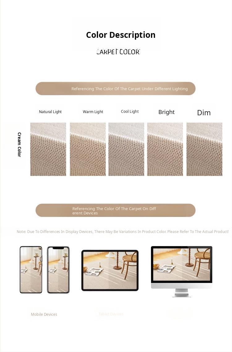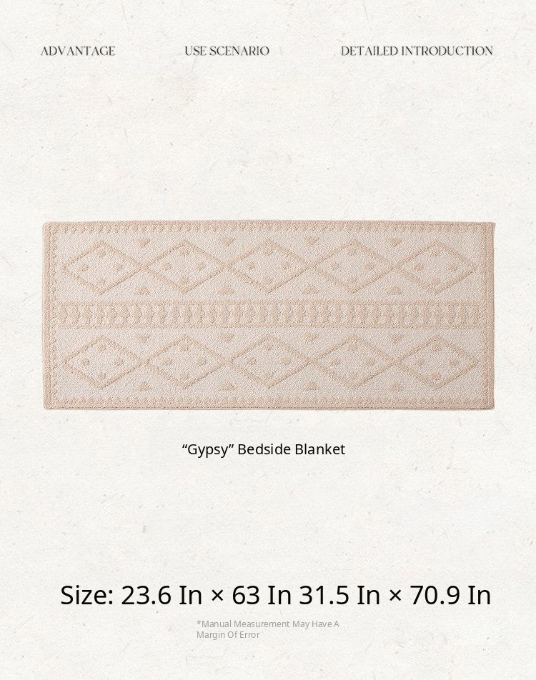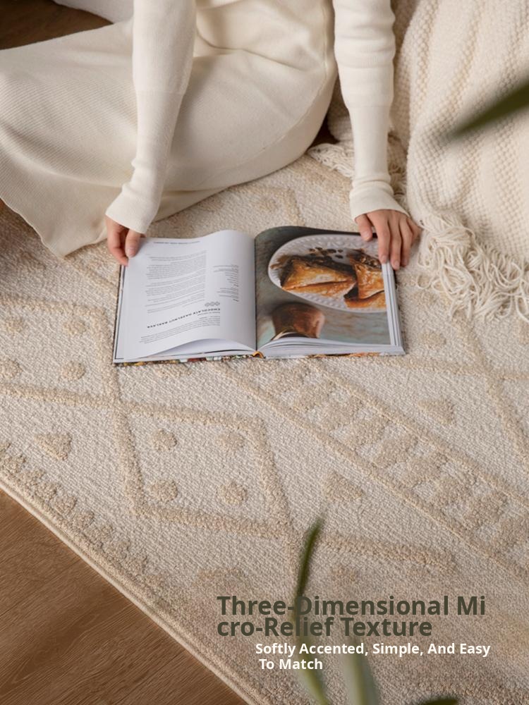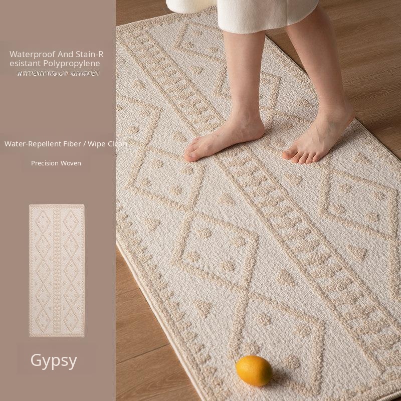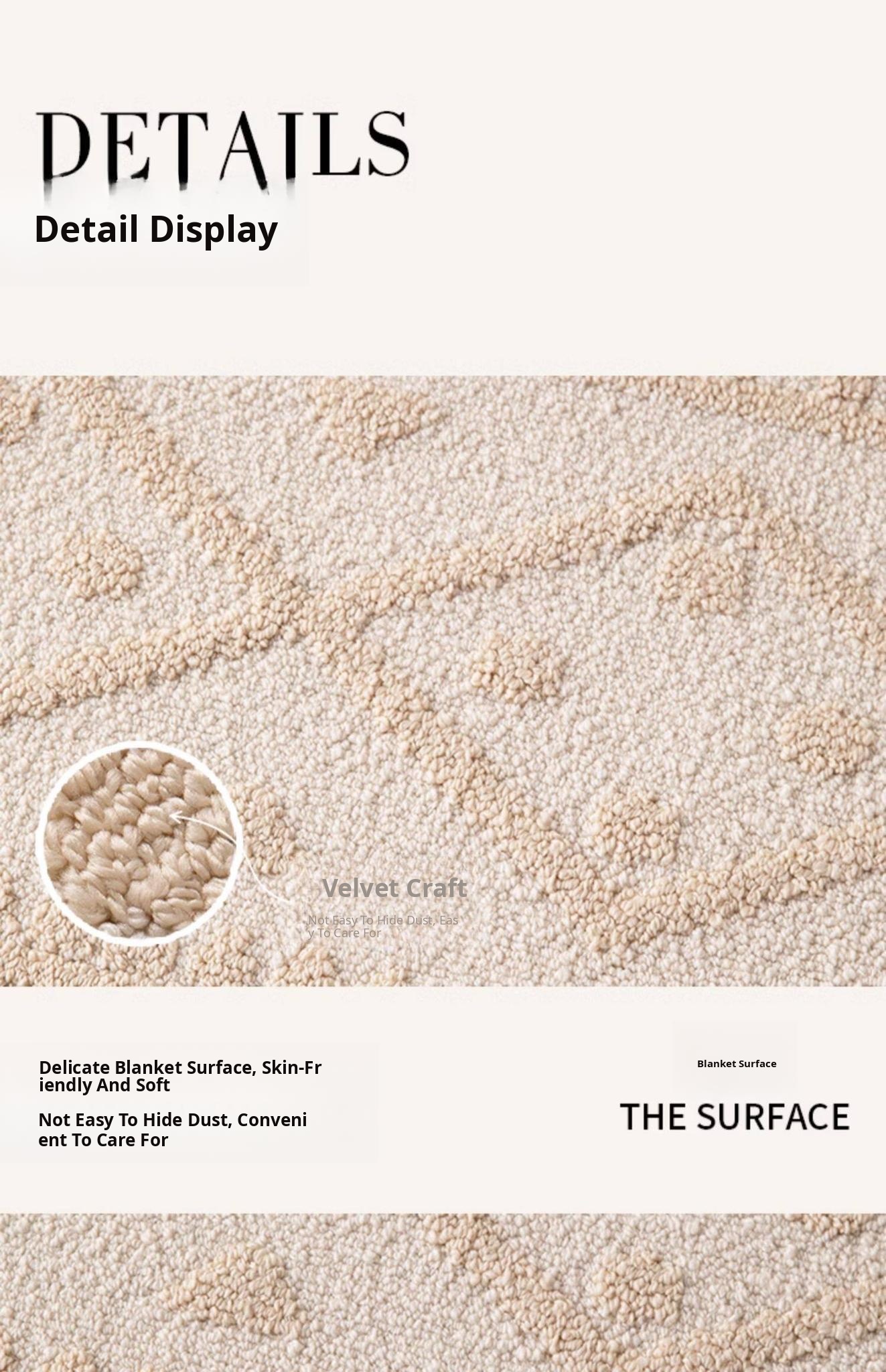 Elegant French-Inspired Area Rug - Minimalist Cream Sofa Throw Blanket, Waterproof and Stain-Resistant, Antibacterial Bedroom Mat for Bedside Use